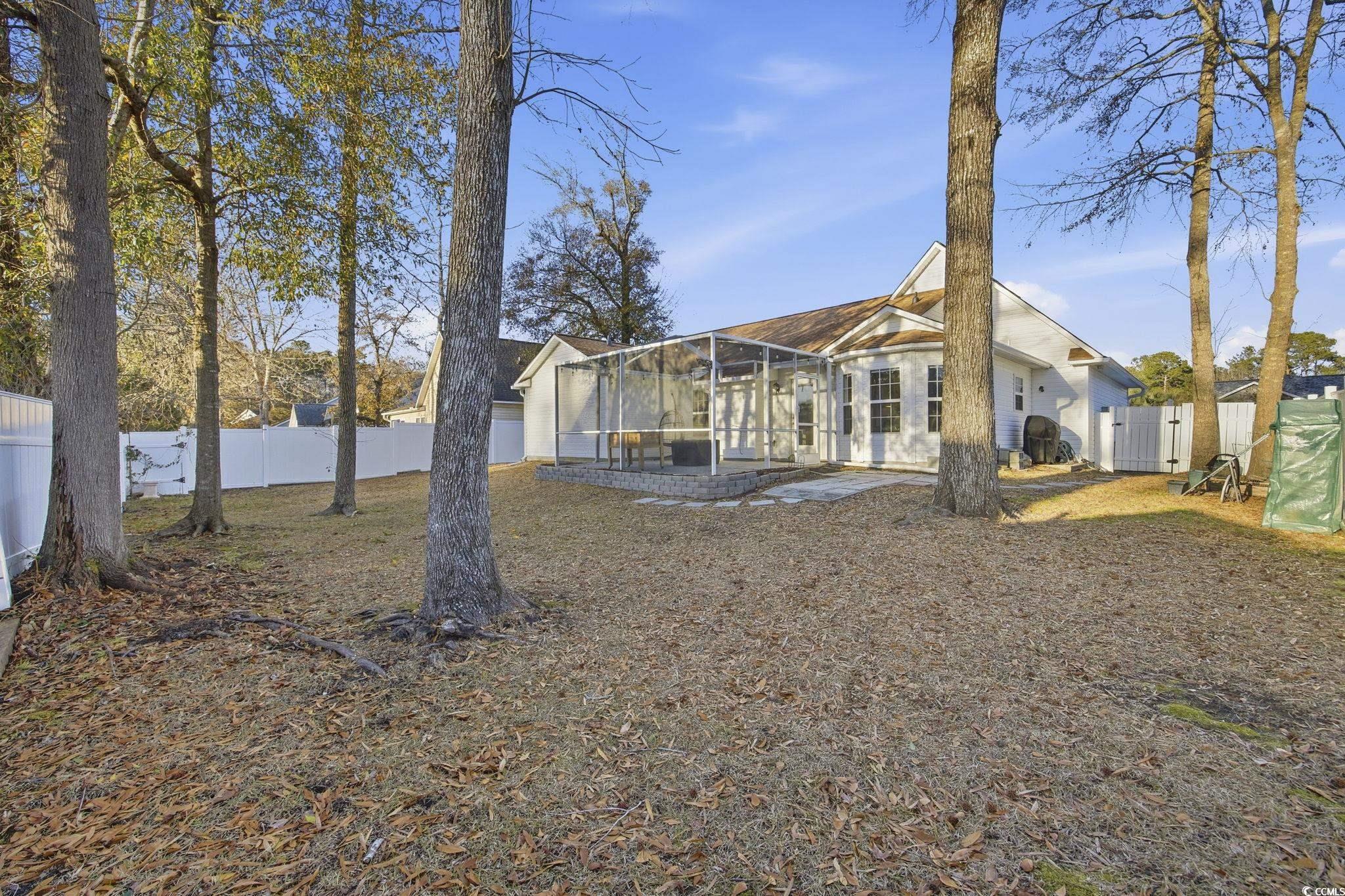 Welcome home to this warm and inviting 4-bedroom, 2-bath home tucked away in the sought-after Ashton Acres community of Little River. From the moment you step inside, vaulted ceilings and a cozy gas fireplace create a sense of comfort, perfect for quiet evenings or gathering with loved ones. The first-floor primary suite offers a peaceful escape, complete with a walk-in closet and an ensuite featuring dual vanities and a relaxing garden tub. The heart of the home is the kitchen and dining area, where tile flooring, stainless steel appliances, custom tile backsplash, and abundant cabinetry make everyday living both beautiful and functional. Luxury vinyl plank flooring flows throughout, blending style with easy coastal living. A private fourth bedroom above the garage provides the perfect flex space, ideal for guests, a home office, or a creative retreat. Step outside to your screened lanai and unwind as you overlook the fenced backyard, a space made for morning coffee, evening breezes, and weekend memories. Located in Ashton Acres, a quiet and welcoming neighborhood in Little River, this home places you just minutes from the beach, waterfront dining, golf courses, shopping, and the best of North Myrtle Beach attractions. Here, you’ll enjoy the calm of residential living with the excitement of the coast always close by. Schedule your showing today!