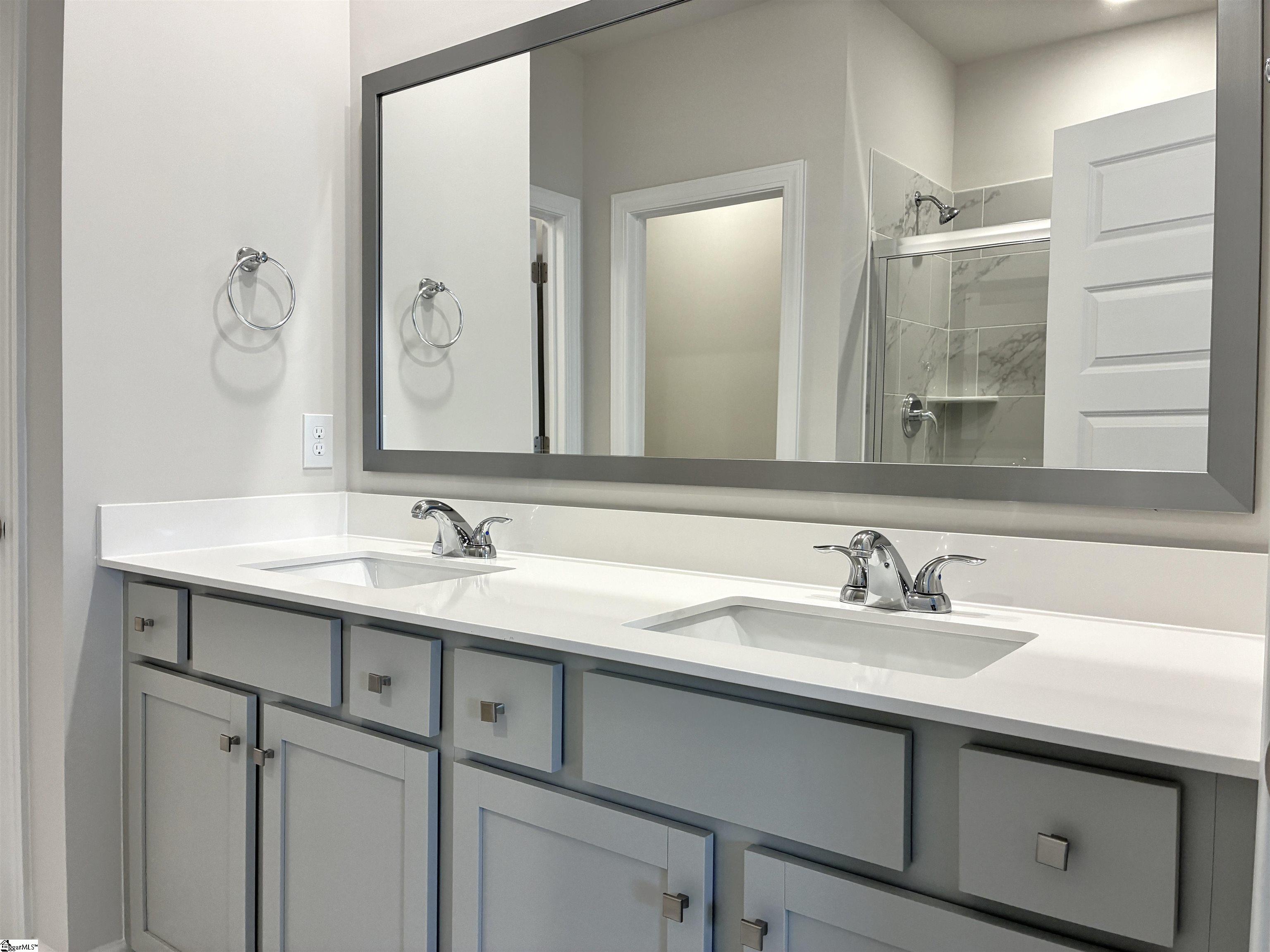 Move-In-Rady…Welcome to your Hampton Gray style curated home. This spacious Princeton plan by Cothran Homes has everything you have been looking for with its first-floor vaulted ceiling owner’s bedroom and luxury en-suite that includes Fulton Shadow grey double sink vanity, Arctic White Quartz countertops, Infinity Calacatta Tile flooring, fully tiled walk-in-shower, Silver framed mirror and large walk-in closet. A spacious living room that flows effortlessly into dining and kitchen area complete with, Minka ceiling fan, LED disc lights, Low VOC Sherwin Williams City Loft interior paint and 2” White Blinds. Fulton Shadow grey cabinets, Fashion White Quartz countertops, Satin Nickel cabinet hardware, under cabinet lighting and walk-in pantry make this a dream kitchen complete with GE Stainless appliances including gas range, microwave, dishwasher and refrigerator. This 3 bedroom, 2 ½ bath includes Shaw Midway Plaza Wheat Field carpet in bedrooms and second floor with 5” wide Polaris Lighthouse luxury vinyl plank flooring throughout 1st floor main living areas. First floor laundry room with luxury vinyl plank floors includes hook up for washer /dryer and shelving for all your laundry accessories. The second-floor loft with LED Disc lights will be the perfect space to set up that yoga room or TV den you have always wanted. Last but not least, enjoy some well-deserved down time out on your private rear covered porch and create the outdoor sanctuary you have always wanted. Welcome home!