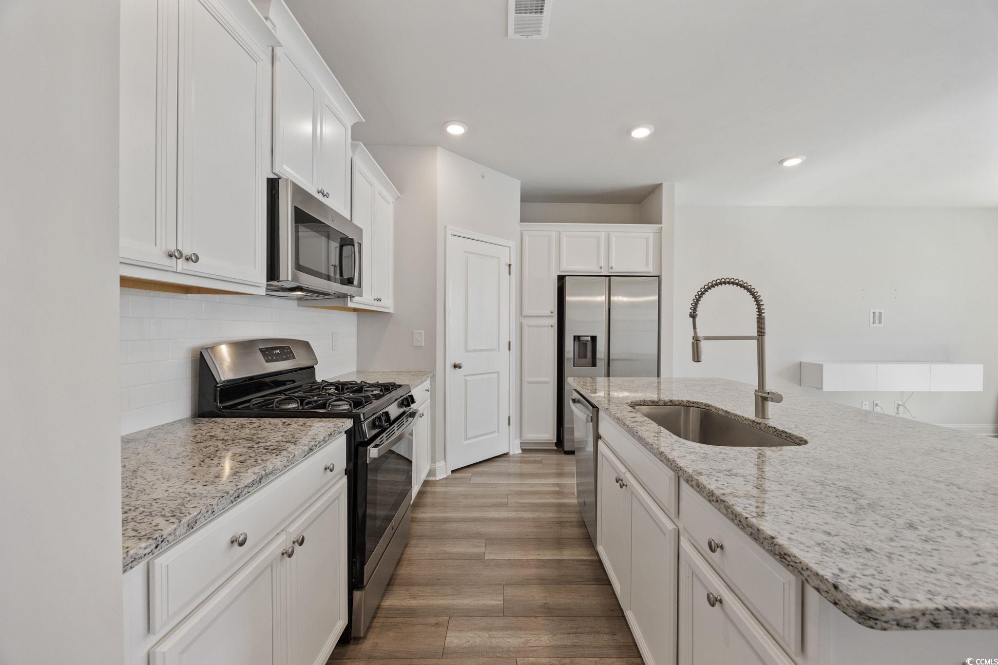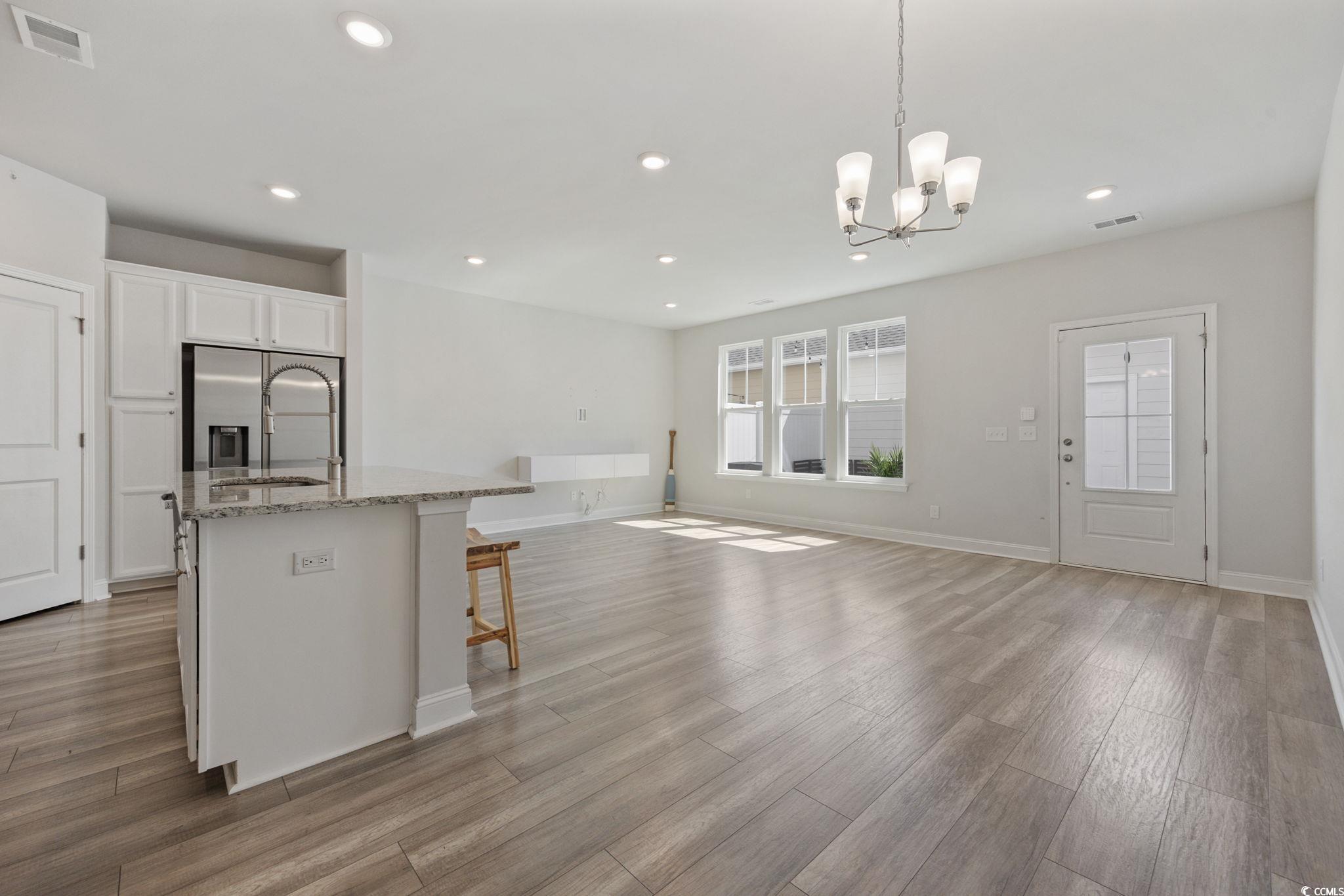 Welcome to 2475 Blue Crane Cir, Unit 103! This beautifully maintained 3-bedroom, 2.5-bathroom town-home is located in the highly sought-after Belle Harbor community in Market Common. Only 3 years old, this home features a desirable first-floor owner’s suite and spacious walk-in closets in every bedroom. Enjoy a private, fenced-in courtyard that's perfect for entertaining or relaxing, along with a 2-car garage for added convenience. The garage currently includes a custom bar setup, which can convey with the home or be removed entirely at the buyer’s request. Belle Harbor is a natural gas community, offering energy-efficient features such as a tankless gas water heater, gas range, and gas HVAC system, helping you save on utility costs. Ideally situated in the heart of Market Common, you're just a short golf cart ride away from the community pool, grocery stores, shopping, restaurants, movie theater, bowling alley, and of course—the BEACH! Don’t miss your chance to own this exceptional home—schedule your private showing today! Be sure to click the virtual tour link for additional photos and a full walk-through video!