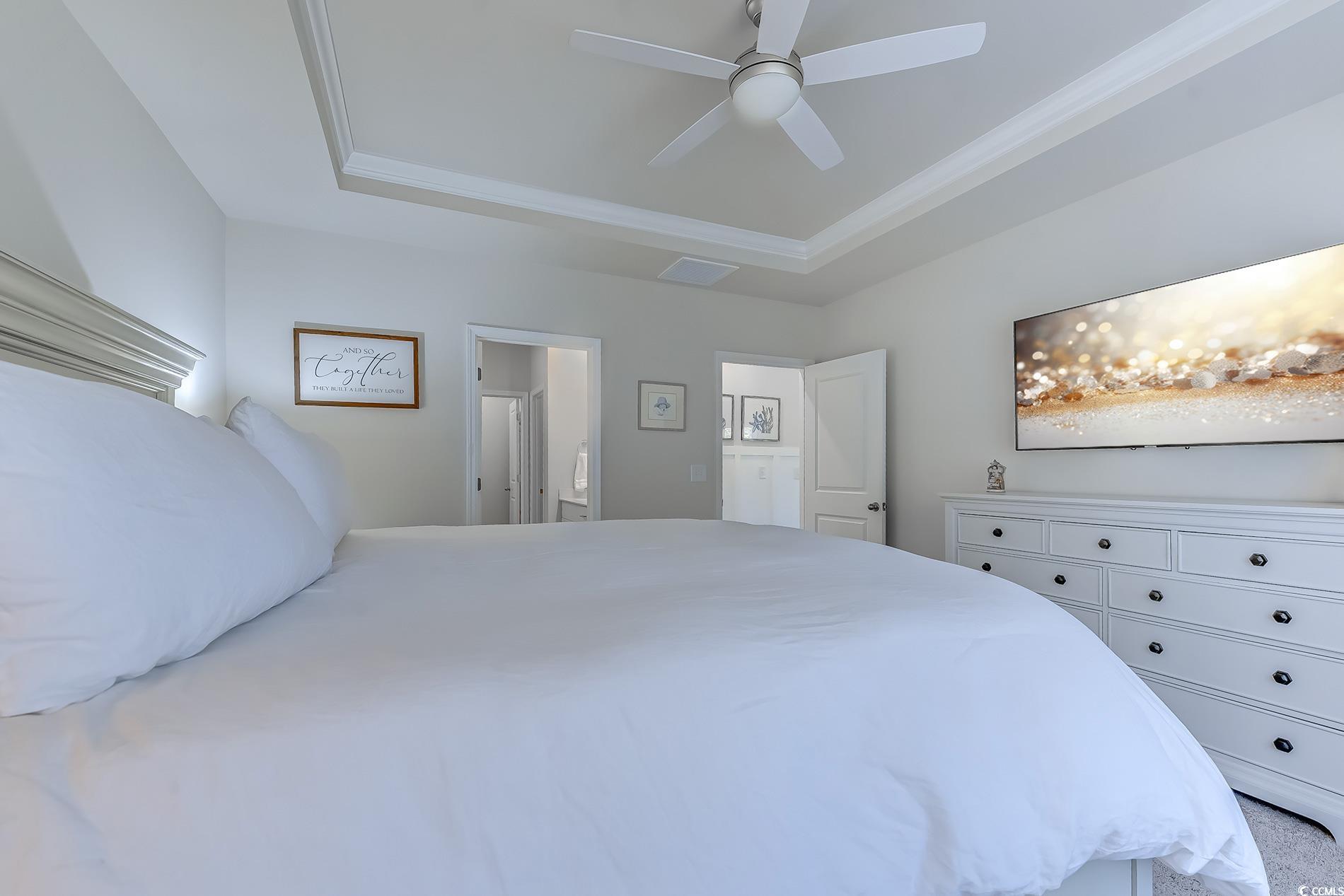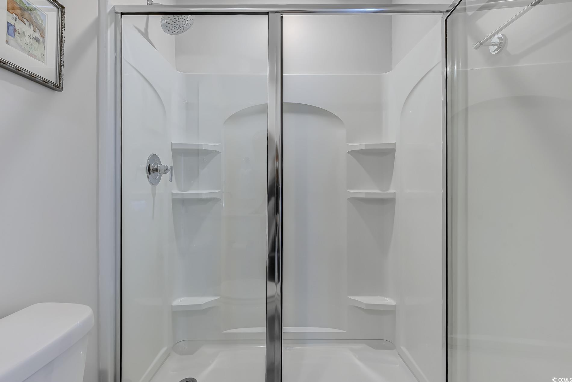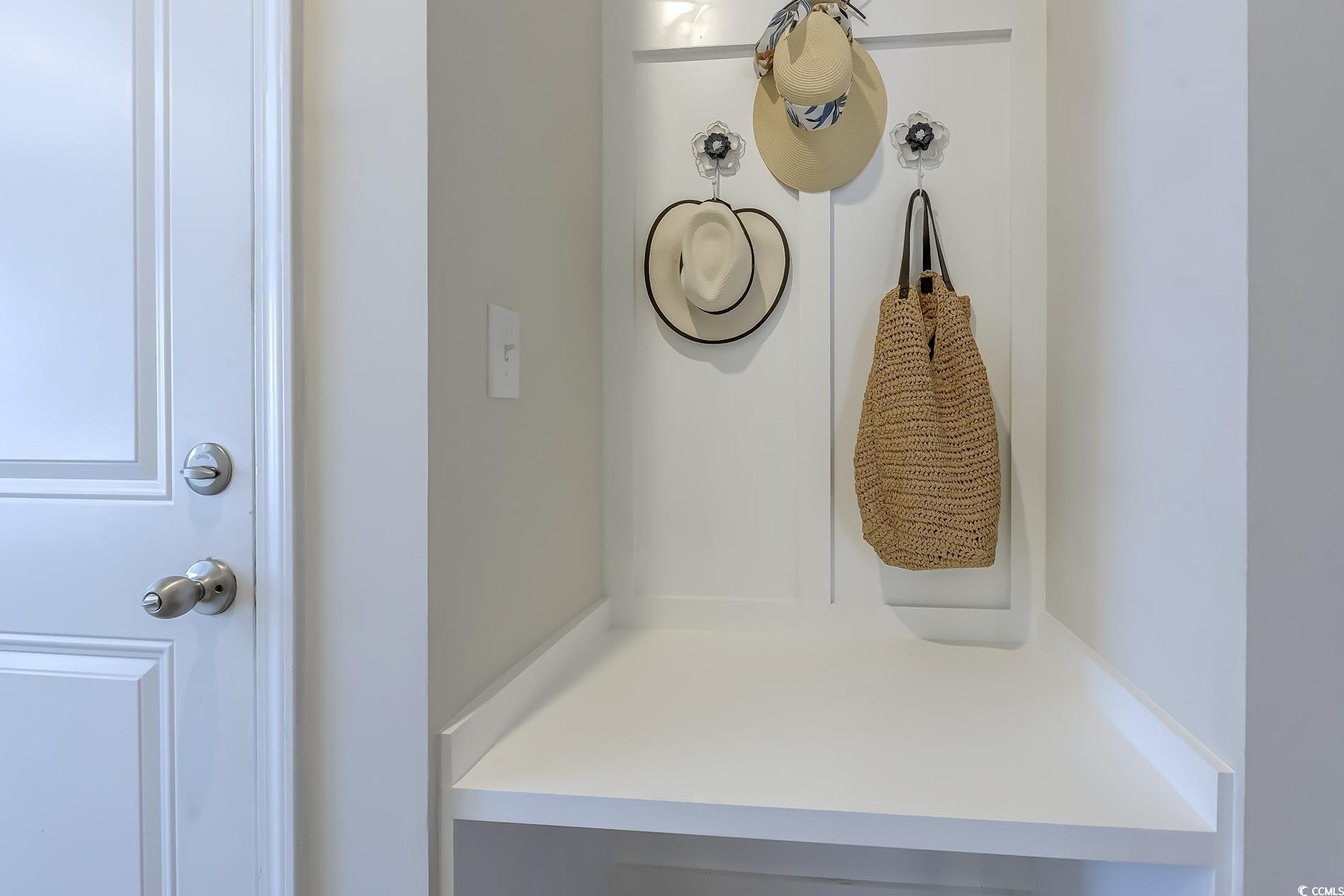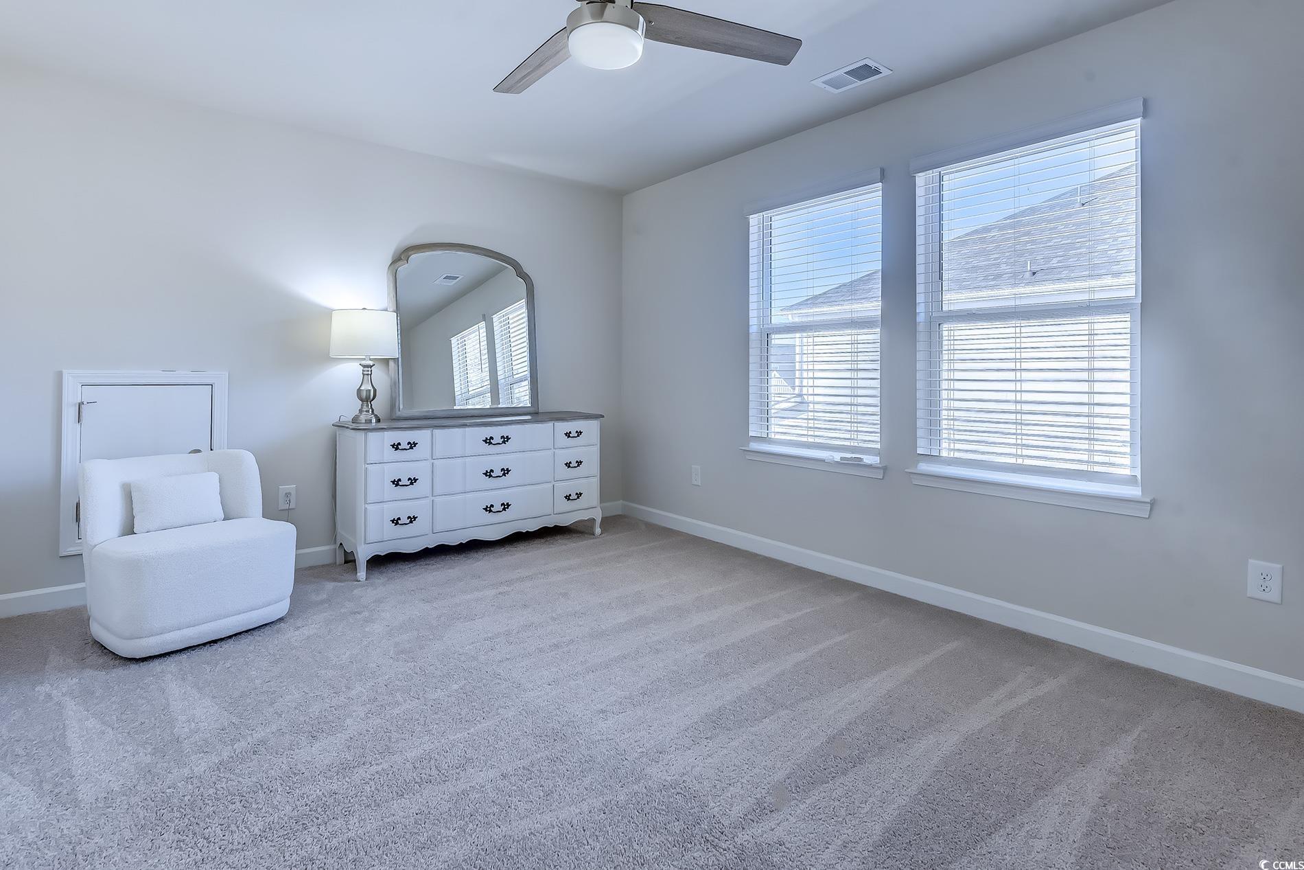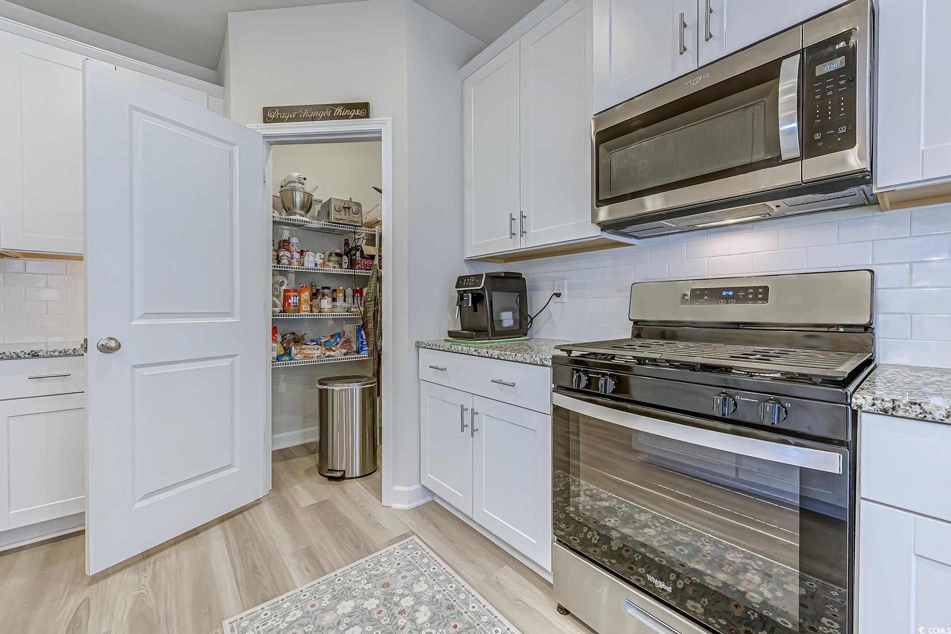 Better than new and move-in ready, this meticulously maintained home stands out with a larger, rare homesite backing to protected woods, offering a private backyard with peaceful views, frequent wildlife sightings, and lasting privacy since no homes can be built behind it. The sellers have enhanced the property with professional landscaping and an irrigation system, ensuring the grounds are always pristine and easy to maintain. Spacious and filled with natural light, the split-bedroom floorplan includes three bedrooms and a bonus or flex room on the main level, along with an additional bedroom and full bath upstairs, ideal for guests or multi-generational living. The open kitchen features granite countertops, a large island, white cabinetry, subway tile backsplash, natural gas cooking, stainless appliances, a roomy pantry, recessed lighting, and a refrigerator that is included. LVP flooring flows through the main living areas, and thoughtful additions such as a landing zone, window treatments, wainscoting, upgraded lighting, and ceiling fans give the home a polished, finished feel. The primary suite offers a tray ceiling, tiled walk-in shower, and spacious walk-in closet. Natural gas service and a tankless water heater add efficiency and comfort. Located in the Meritage Homes community of Waterside, this property carries a Longs, SC address while being within North Myrtle Beach city limits, providing free beach parking and city police and fire services. Community amenities include a pool, sports courts, walking trails, and a planned day dock on the Intracoastal Waterway. Convenient to Routes 22 and 31 and close to new shopping, this home is ideal for buyers who want coastal living without the wait of new construction.