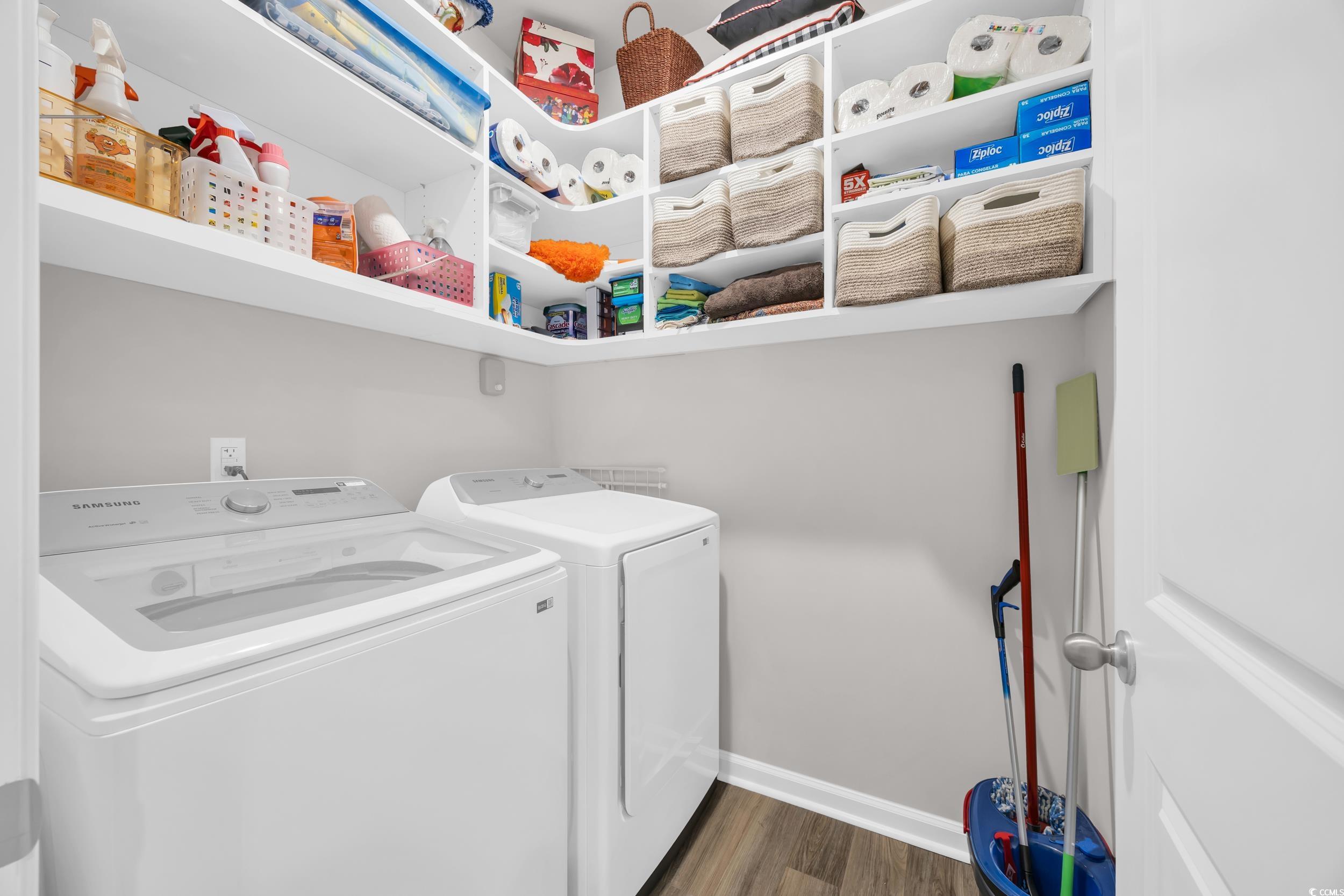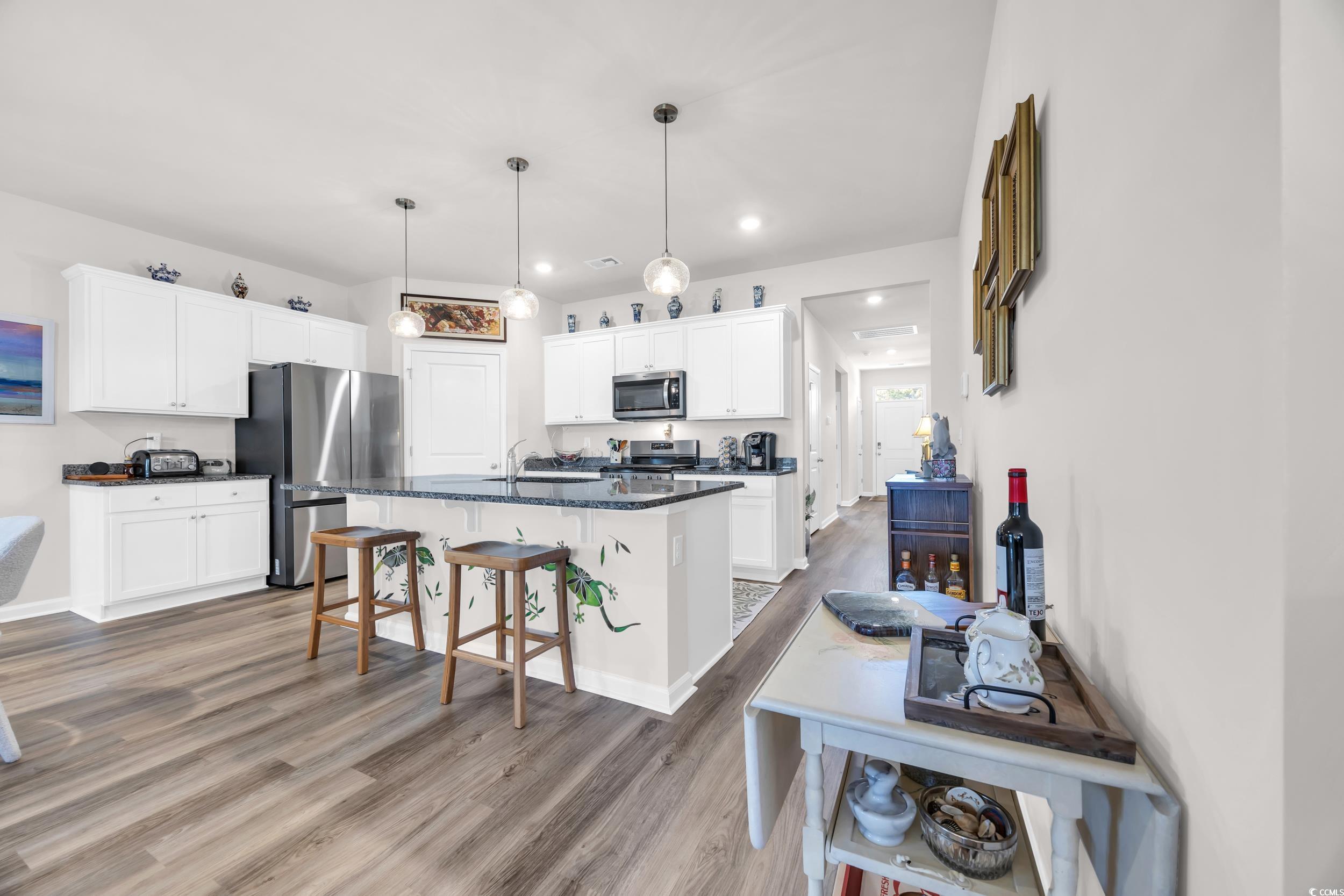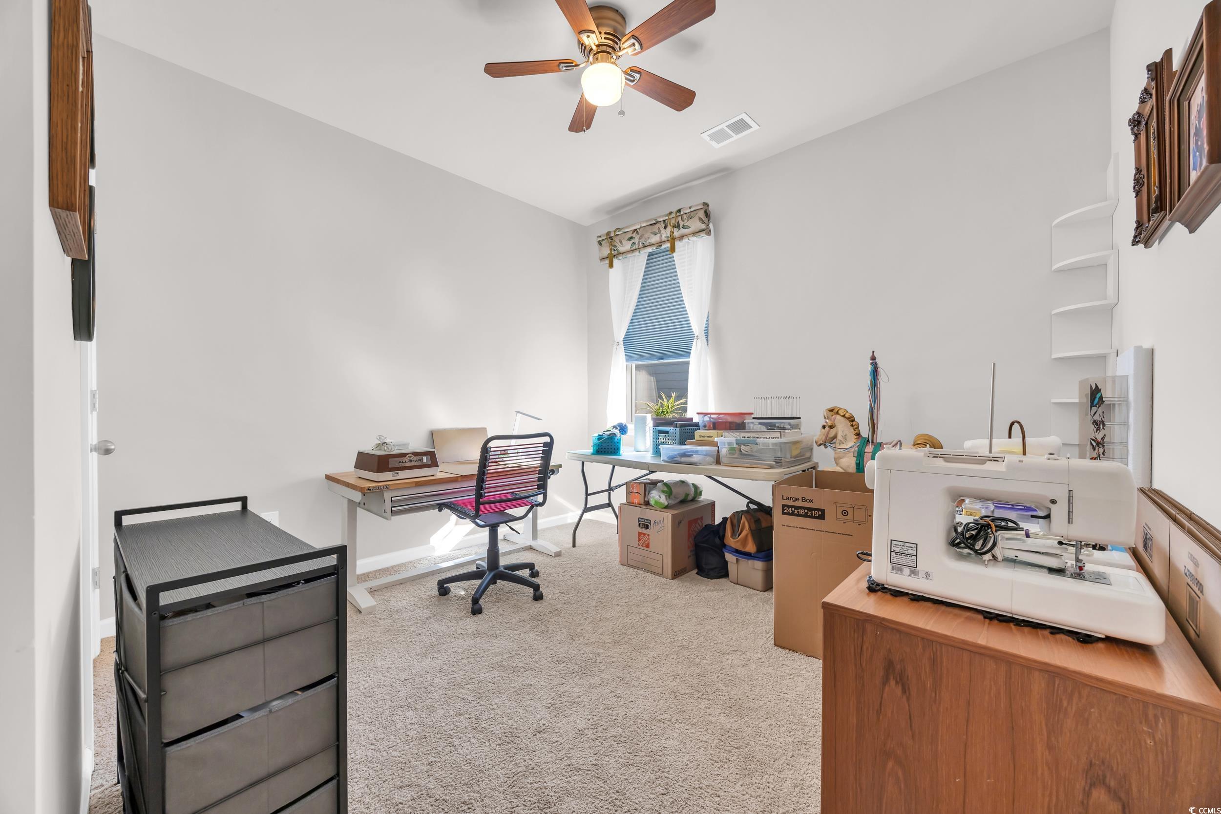 Step inside your Immaculate Four-Bedroom, Two-Bath Smart Home and experience the perfect blend of comfort, style, and convenience! If you are an organization enthusiast, this home has been thoughtfully designed with luxury storage upgrades and functionality in mind. You will find upgraded closets with custom cabinetry and built-ins, strategically placed shelving throughout, and a well appointed kitchen featuring glide-out drawers for effortless access. Every detail was planned to keep your home beautifully organized and clutter-free. Primary suite features a custom designed closet and frameless touchscreen lighted vanity mirror. Work from home in style! The Fourth Bedroom is designed as a functional home office, featuring a custom built-in desk and cabinets. The open light filled living areas flow seamlessly into your 3-season room with floor to ceiling Flex Vinyl windows offering peaceful views of your serene landscaped back yard overlooking green space. Garage includes pre-wired EV hook up as well as an electric elevator lift for your attic storage. Hurricane protection panel system for all doors and windows included. Enjoy a golf cart ride to the sought-after Market Common, close to shopping, dining, and beautiful beaches. Your Someday is Here! Schedule your private showing today!