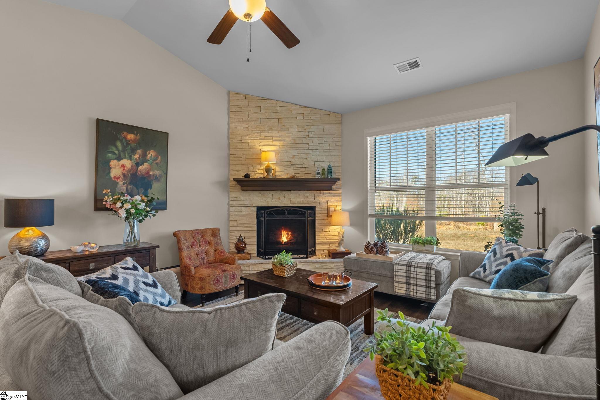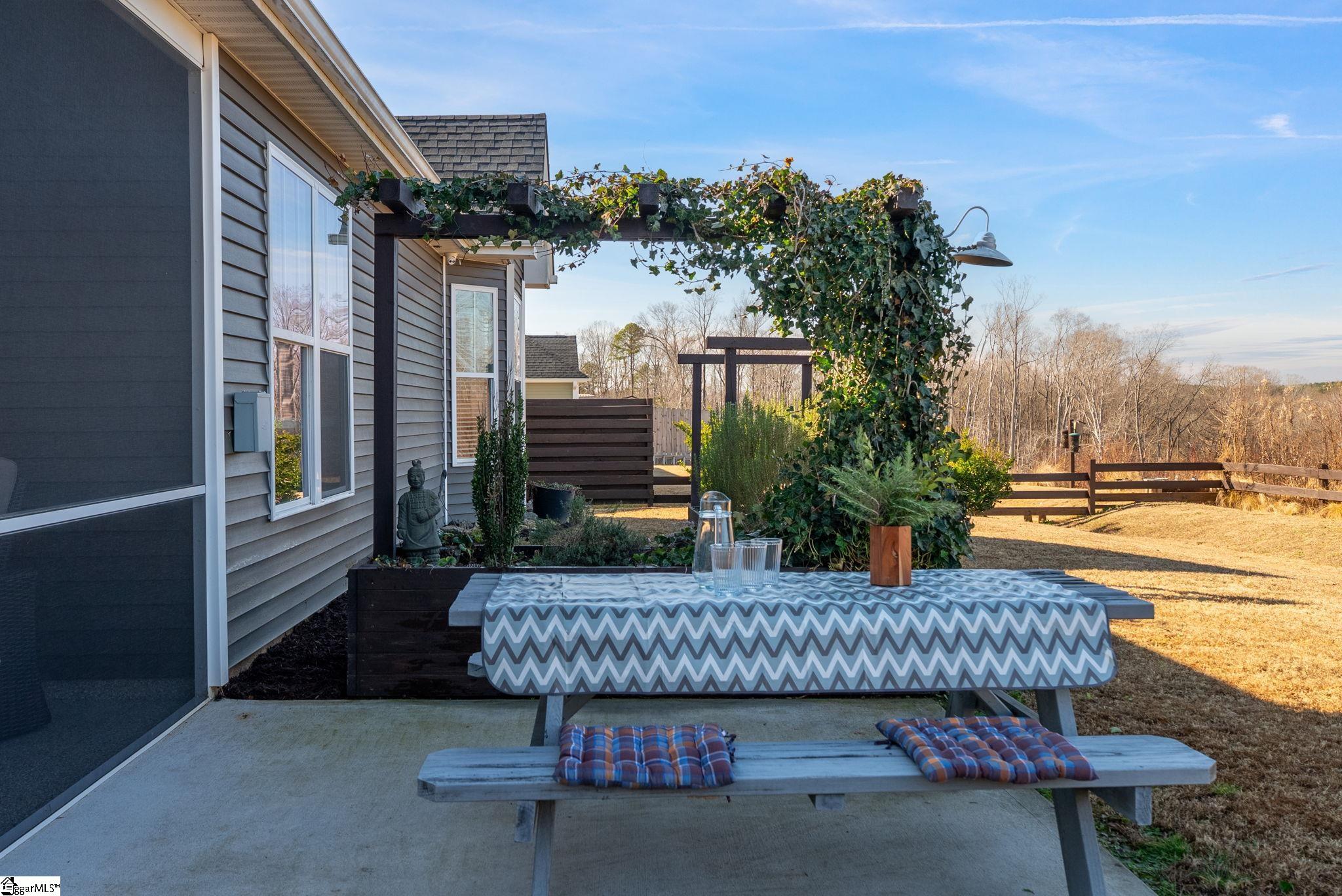 Welcome to this beautifully upgraded 4-bedroom, ~2,000 sq ft home on a quiet cul-de-sac in a rapidly growing area. Built as new construction, the home features numerous owner-selected upgrades and custom touches throughout. All furniture and decorations seen are available for purchase or as a complete move in ready option for buyer consideration. Enjoy peaceful, permanently protected backyard views of trees and open sky—no future construction—offering privacy and stunning sunsets. The open floor plan includes elevated ceilings, wide hallways, and abundant natural light from transom windows. The main living area features a gas log stone fireplace, while bay windows in the office and primary bedroom add charm and brightness. The primary suite offers a coffered ceiling and a spa-like bath with dual showerheads. New carpet was installed one year ago, and waterproof luxury vinyl plank flooring runs throughout the main living areas. The kitchen includes an outdoor-vented range hood, and all kitchen appliances convey, along with the washer and dryer featuring an ozone wash system. This home is fully smart-enabled with integrated locks, security system, HVAC, and sprinkler system. Energy-ready features include a Level 2 EV charger, 240V garage outlet, and a 240V hot tub hookup in the backyard. Outdoor living shines with a covered front porch, screened-in back patio, and epoxy flooring in the garage, entry, porch, and patio. A widened driveway adds convenience and curb appeal. A unique custom pet room under the stairs, accessible from the kitchen/pantry and vented outdoors, adds extra functionality. Located on a no-through-traffic cul-de-sac, this move-in-ready home combines smart technology, luxury finishes, protected views, and exceptional outdoor living. Special Features & Upgrades • 4-bedroom home (~2,000 sq ft) • Protected backyard view with no future construction • Quiet cul-de-sac street • Open floor plan with elevated ceilings • Gas log stone fireplace • Bay windows in office and primary bedroom •Coffered ceiling in primary suite• Dual-showerhead primary bathroom • New carpet (installed 1 year ago) • Waterproof luxury vinyl plank flooring • Central vacuum system • Outdoor-vented kitchen range hood • All kitchen appliances convey • Washer & dryer included with ozone washing system • Fully integrated smart home system • Smart security system • Smart HVAC system • Smart sprinkler system • Double-car garage • Epoxy flooring in garage, front porch, entry, and screened patio • Wider driveway • Covered front porch • Screened-in back patio • 240V hot tub hookup • Level 2 EV charger in garage • 240V garage hookup • Dedicated kitty/dog room under stairs with outdoor ventilation • All furniture available for purchase • Theater couch and lounge setup optional