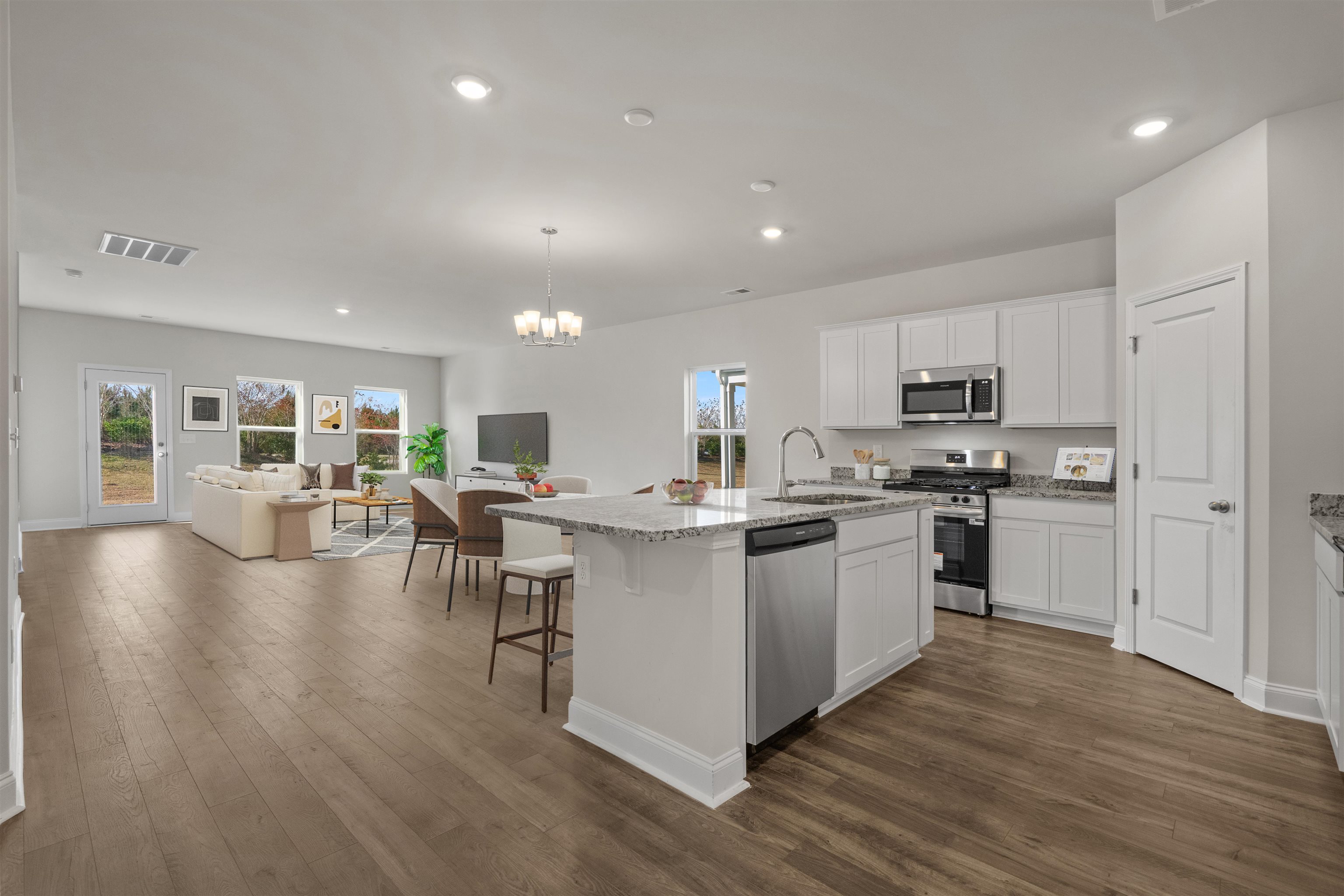 Pictures are from a representative model. Home will be complete in May. Introducing The Cascade, a stunning one-level home designed for modern living and effortless comfort. This 3-bedroom, 2-bathroomhome offers an incredibly open concept layout, perfect for easy flow and versatile living. The spacious living and dining areas seamlessly connect to the kitchen, creating a bright and inviting space ideal for entertaining or relaxing with family. The common areas are adorned with upgraded Mohawk laminate flooring, providing durability and style, while the bathrooms feature upgraded tile flooring for a touch of elegance. The home also boasts 9-foot ceilings throughout, enhancing the sense of openness and creating a welcoming atmosphere. Enjoy a tranquil lifestyle with a relaxing front porch and a serene back covered patio with pond view, both perfect for unwinding or hosting outdoor gatherings. The primary suite offers comfort and privacy, while the additional bedrooms provide flexibility for family, guests, or a home office. With convenient features like comfort-height toilets and storage access in the garage. The Cascade ensures a practical and comfortable living experience. This home is also equipped with a sprinkler system to keep your lawn lush and green year-round, adding to the ease of homeownership. Whether you're seeking a space for entertaining, quiet relaxation, or everything in between, the covered back porch with pond views is the perfect space. Spring Oaks is a beautiful new home community offering natural gas homes, blending comfort with sustainability. Ideally located near Historic Downtown Conway, residents enjoy easy access to the Riverwalk, local restaurants, shops, and the stunning coastal beaches. It’s the perfect spot for modern living with the convenience of nearby attractions.