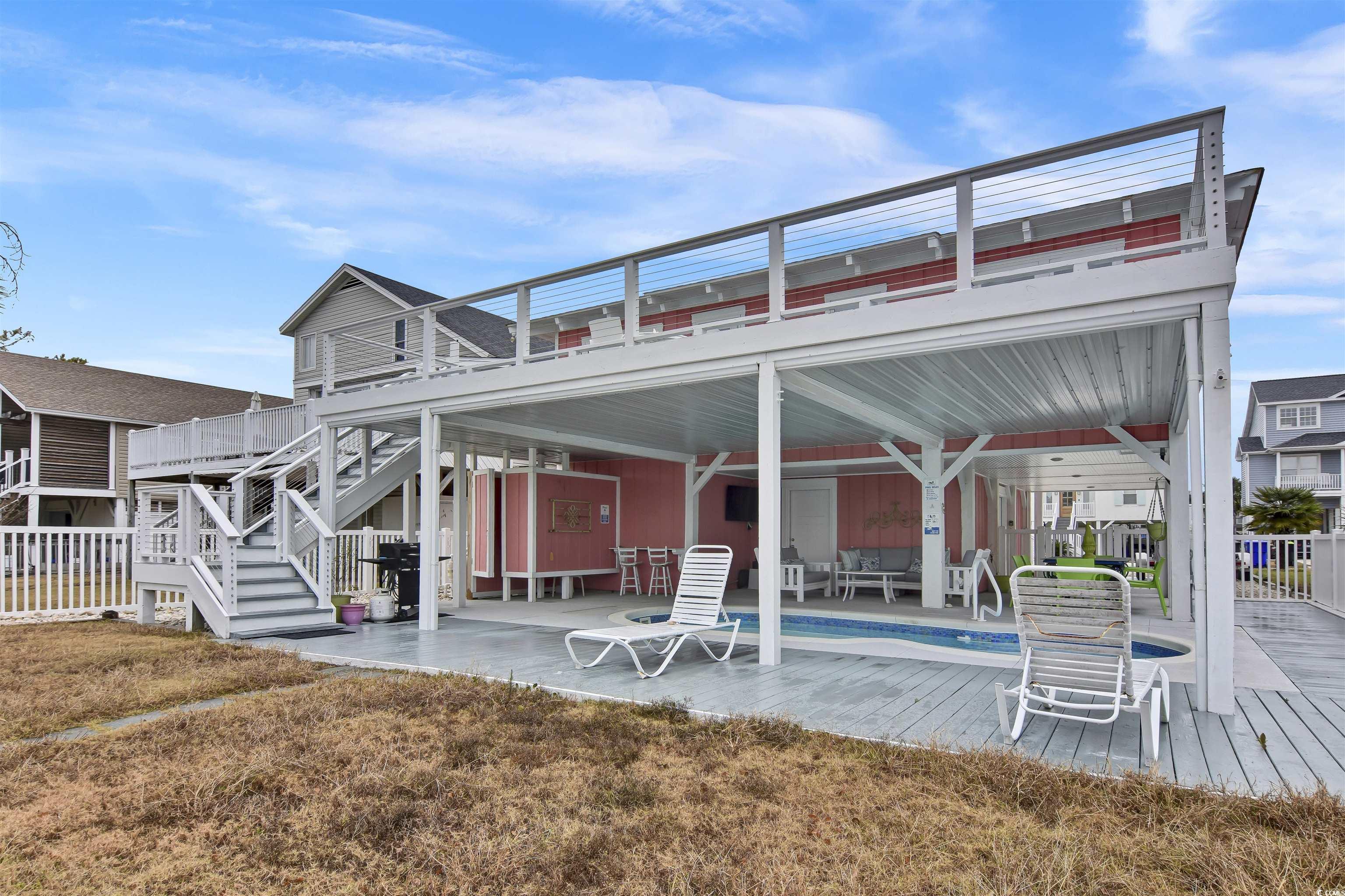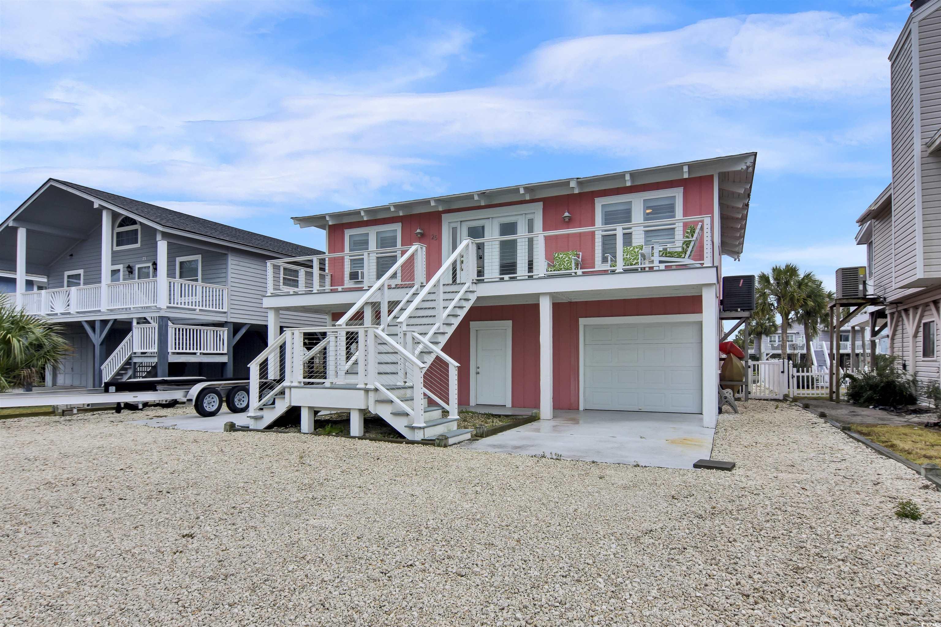 Welcome to 25 Newport Street, a breathtaking coastal retreat perfectly situated on a serene canal lot in the heart of Ocean Isle Beach. This home offers direct access to the Intracoastal Waterway, making it a haven for water enthusiasts and those seeking tranquility by the sea. As you arrive, the charming front deck, framed with freshly painted rails, invites you to relax and soak in the ocean breeze. Vibrant, plush seating and cheerful fabrics enhance the outdoor ambiance, setting the tone for endless seaside moments. Step inside and discover a thoughtfully designed home that seamlessly blends coastal elegance with inviting comfort. The interior boasts custom-designed fabrics, beautifully painted kitchen countertops, and a charming Paula Deen dresser, embodying Southern hospitality. Natural light streams through the glass doors, illuminating the open floor plan and complementing the airy coastal palette. With four tastefully decorated bedrooms and two well-appointed bathrooms, this home is ready to welcome you and your guests. The oversized upper deck offers panoramic views and plenty of space for entertaining, while downstairs, the freshly painted textured stucco flooring leads to a functional laundry area and ample storage. Outdoors, the yard showcases fresh rock accents, and the new dock is ready for your canoes or a sunset gathering by the water. This property includes transferable flood insurance and comes furnished as seen (excluding personal items). With all these features, 25 Newport Street isn’t just a home—it’s a lifestyle waiting for you to embrace.
