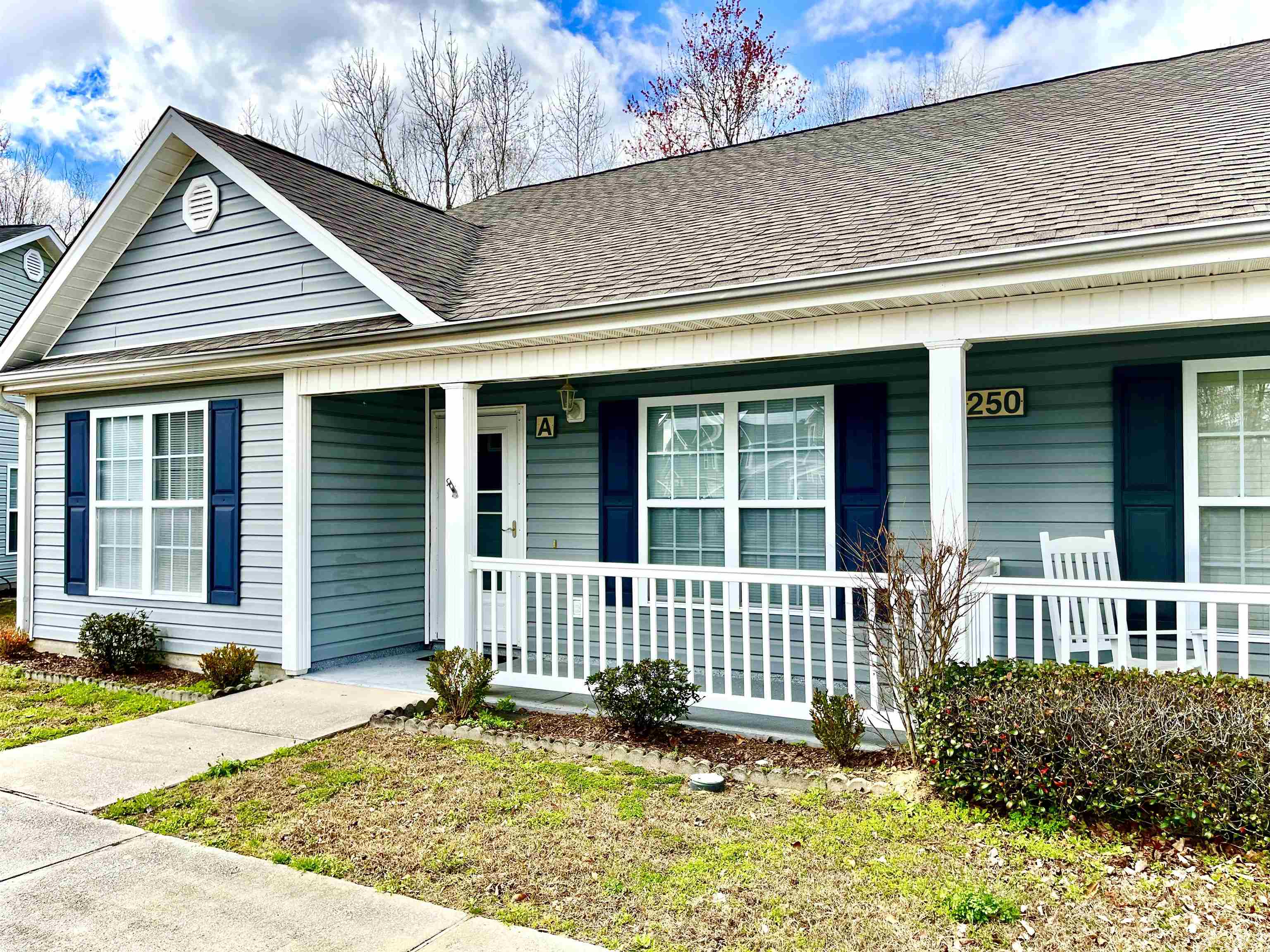 A Must See!! Welcome to 250 A Country Manor Drive with Low HOA dues!! This 3 Bedroom 2 Bath Single Level Townhome features an Open Living/Dining Concept with Split Bedroom Floor Plan. The Kitchen has a Breakfast Bar with Pantry and Laundry room adjoining. Primary Bedroom boasts a Walk in Closet and Bath. The Screened in Porch with Patio backs up to nature. Located near shopping, restaurants, medical offices, schools, and a short drive to the Beach. Priced to Sell!! Schedule your showing today!