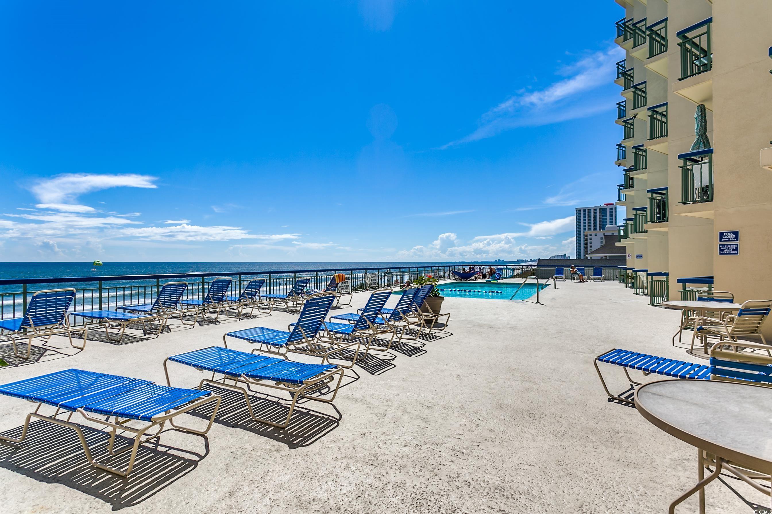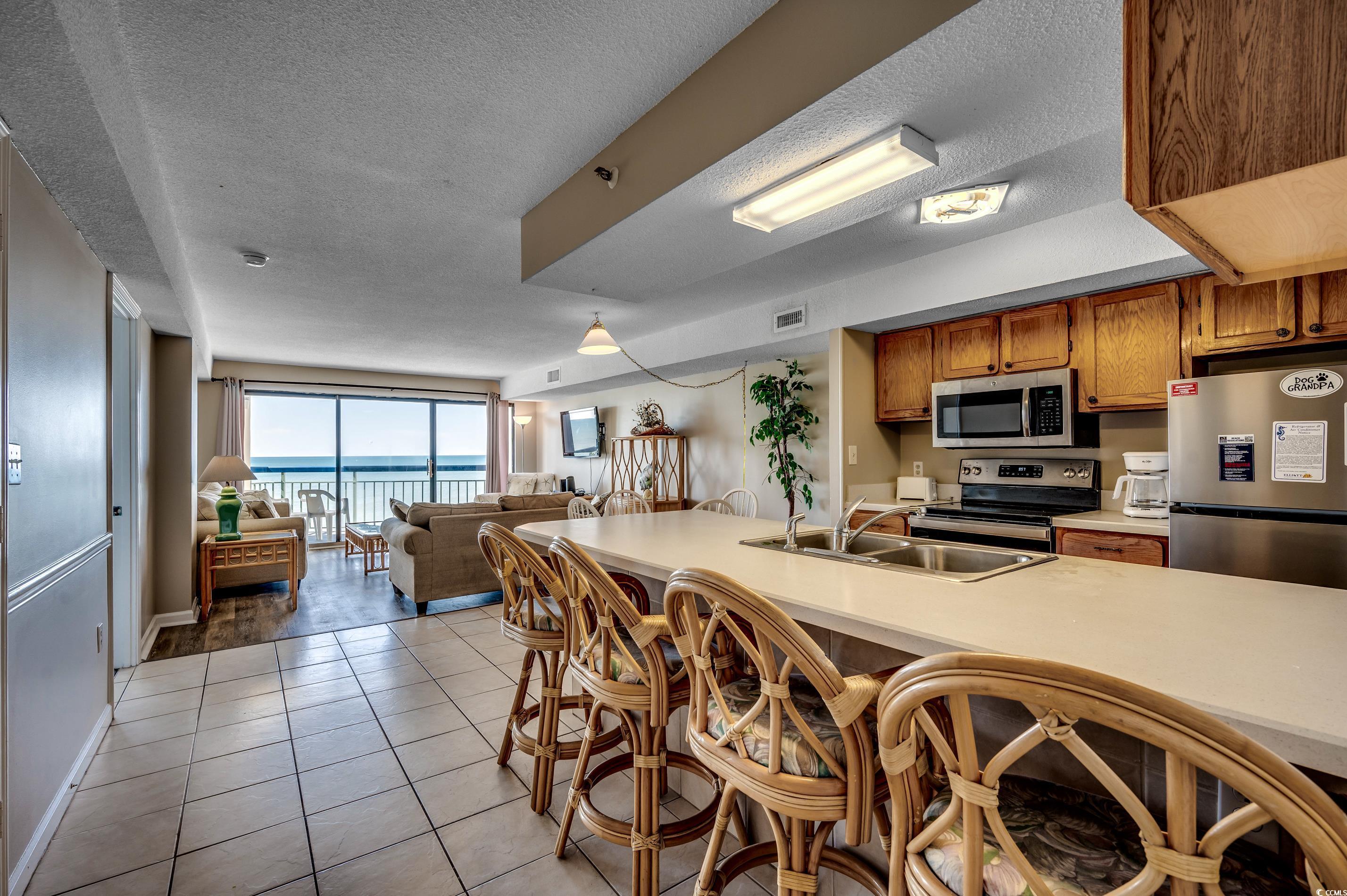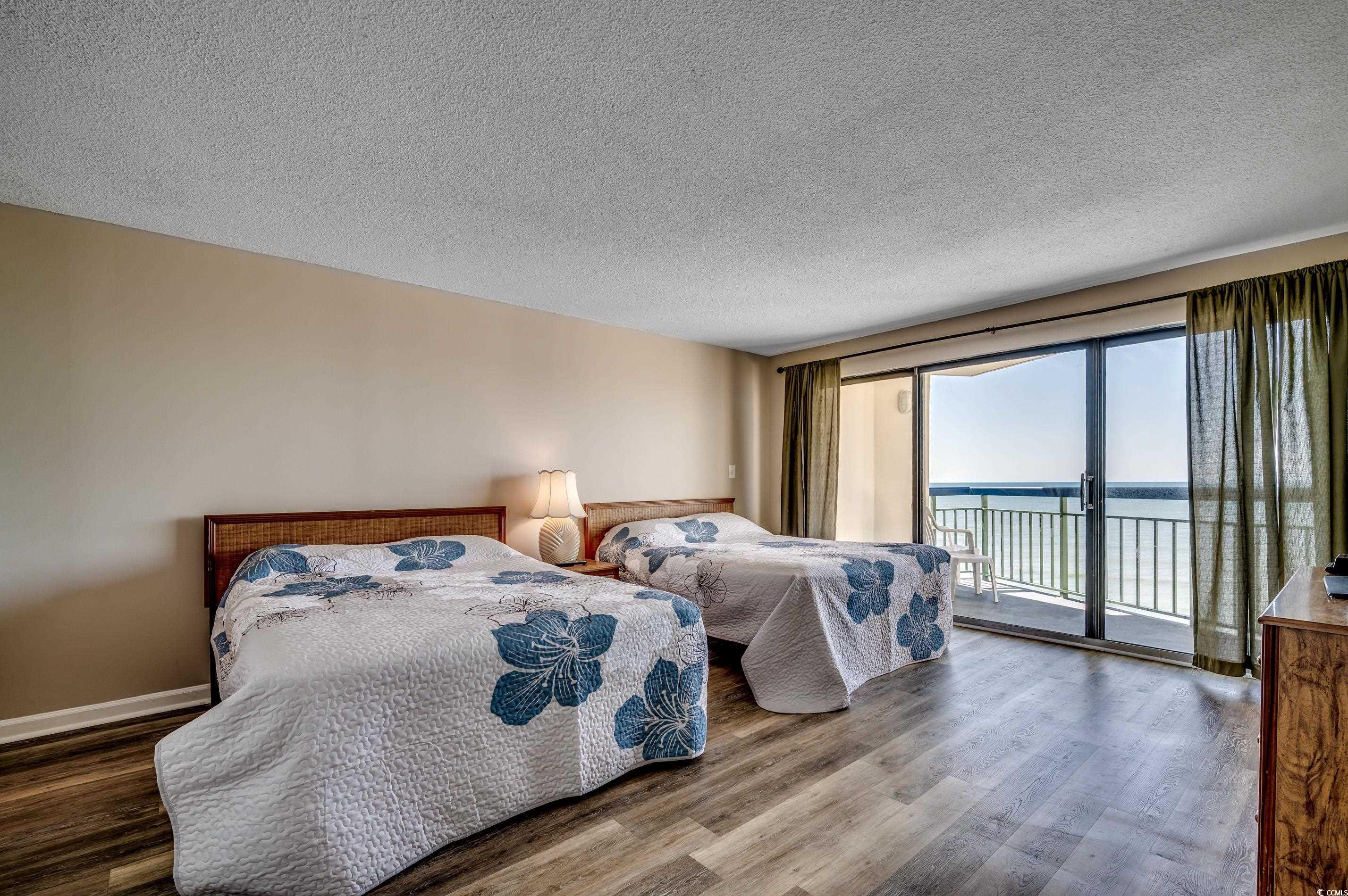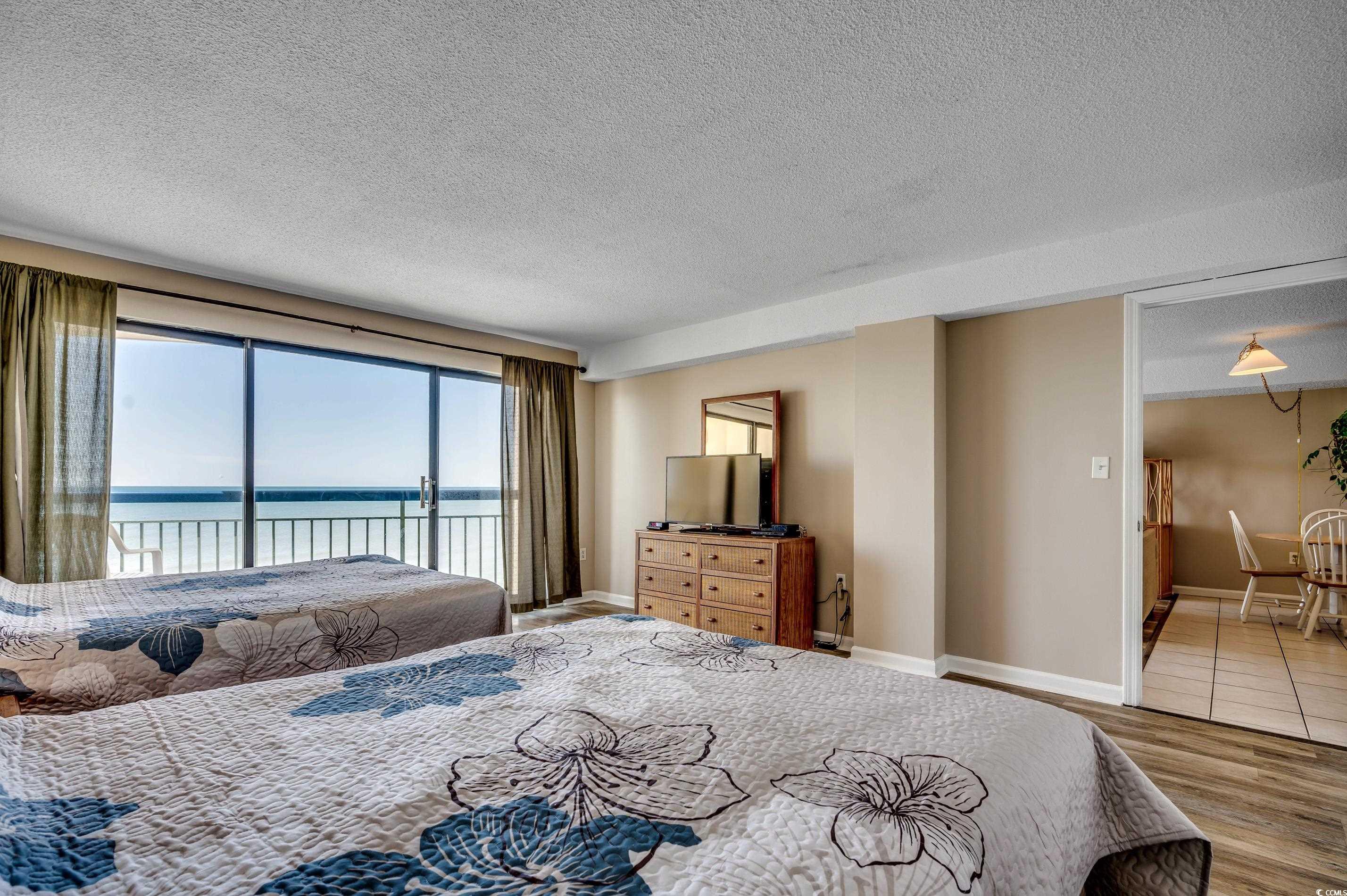 Two bedroom, two bathroom, direct oceanfront condo at The Oceans in the Cherry Grove section of North Myrtle Beach. This spacious condo has views for miles from the two oceanfront balconies, (one off living room and one off master bedroom), a huge primary bedroom, LVP flooring, fresh paint, stainless steel appliances, and is fully furnished and equipped. Nice 4th floor pool, lots of parking and close to local grocery store, restaurants and bars.
