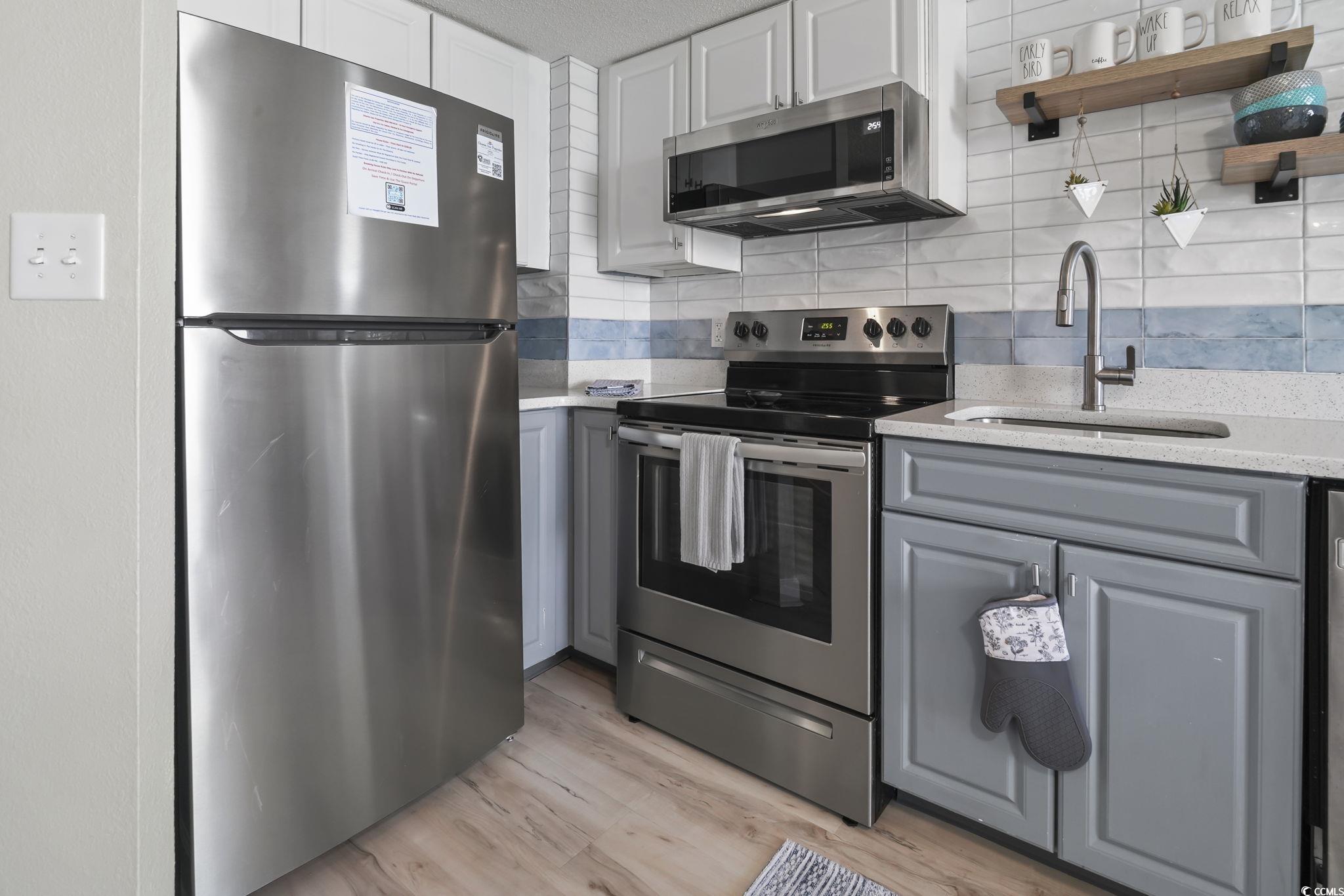 Welcome to Holiday Sands South! This beautifully updated 1-bedroom, 1-bath condo offers everything you need for the perfect coastal getaway or investment property. Thoughtfully designed, it features two custom vanities with quartz countertops—one inside the bathroom and one conveniently outside. The brand-new light LVP flooring flows seamlessly throughout the unit, creating a fresh, modern feel. The primary bedroom is plenty big for a king-size bed, walk-in closet, and large owner’s closet for extra storage. In the kitchen, you’ll find quartz countertops, a stylish tile backsplash, stainless steel appliances, pantry, and coastal-inspired finishes. Extra sleeping space comes from a tucked-away Murphy bed. Step onto your 10th-floor balcony, complete with Polywood captain’s chairs, and soak in the breathtaking ocean views—perfect for morning coffee or afternoon cocktails. Holiday Sands South offers top-notch amenities, including an oceanfront pool, indoor pool, lazy river, hot tub, fitness center, and oceanfront café. You’re just minutes from Myrtle Beach International Airport, The Market Common, and the iconic Myrtle Beach Boardwalk. HOA covers all utilities, exterior insurance, and H06 policy for peace of mind. Additional perks include an in-unit washer/dryer. Don’t miss your chance to own a turn-key ocean-view retreat in one of the Grand Strand’s most desirable oceanfront resorts!