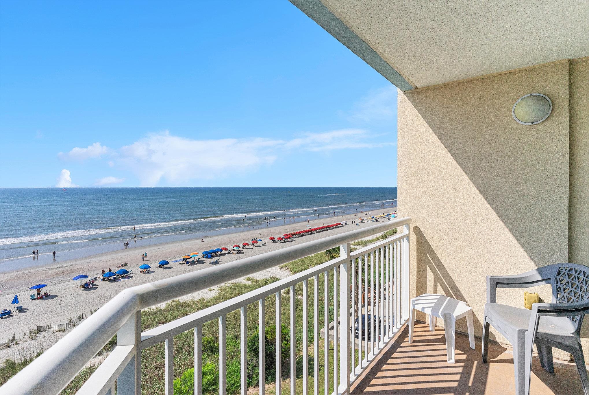 This 1BD/1BA direct oceanfront condominium is located at Holiday Sands South in Myrtle Beach. The unit features a well-equipped kitchen with a full-size refrigerator, built-in microwave, dishwasher, and stove, as well as an in-unit washer and dryer for added convenience. Holiday Sands South offers a variety of resort-style amenities, including an impressive indoor pool complex with a lazy river, kiddie pool, and hot tub. Additional amenities include outdoor pools, a fitness center, and a secure parking garage providing shade and security for owners and guests. A restaurant is located in the neighboring building, and a convenience store is just across the street. Ideally situated on Ocean Boulevard, the property is close to Myrtle Beach International Airport, Myrtle Beach State Park, and all the area’s top attractions, making it a perfect vacation destination!