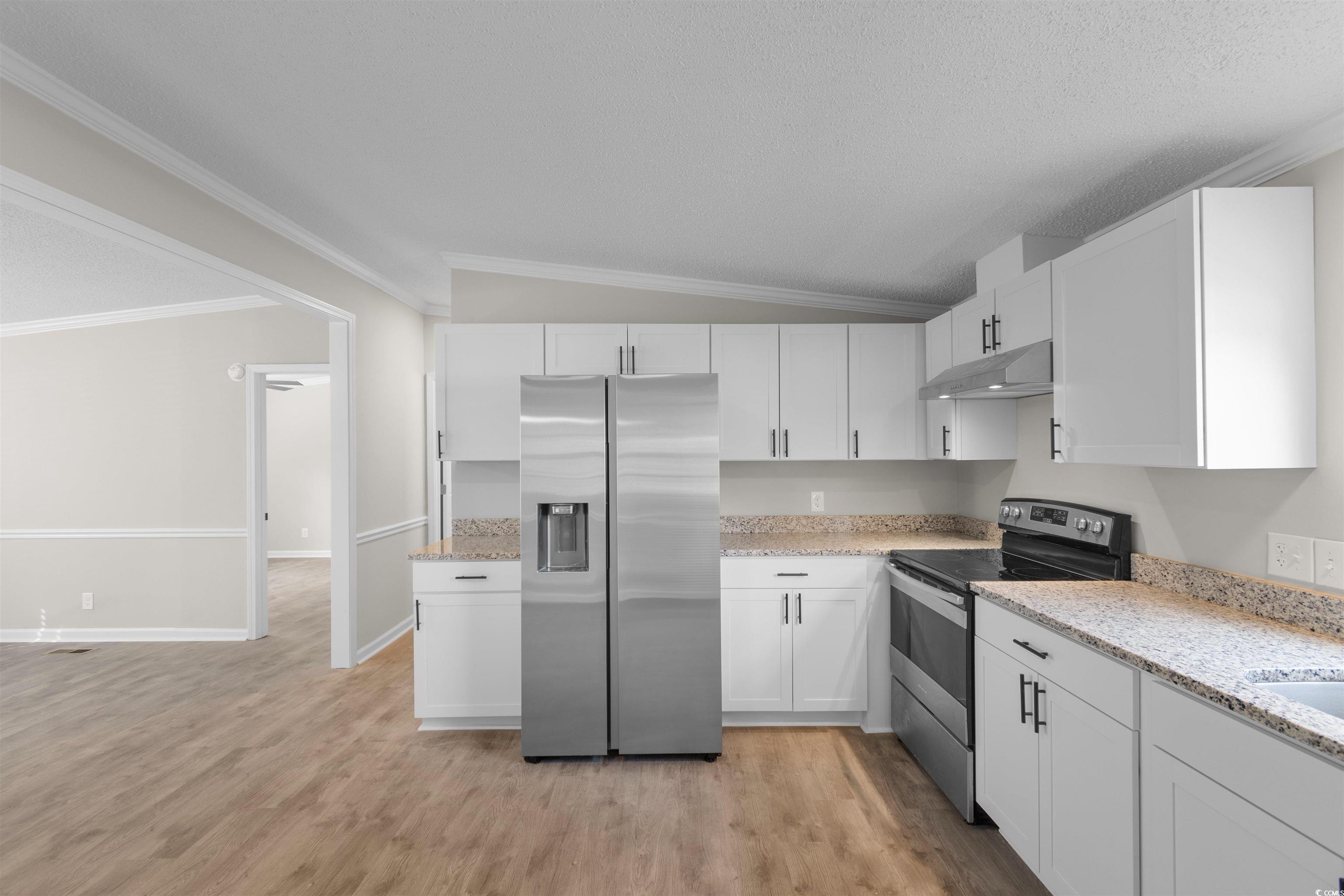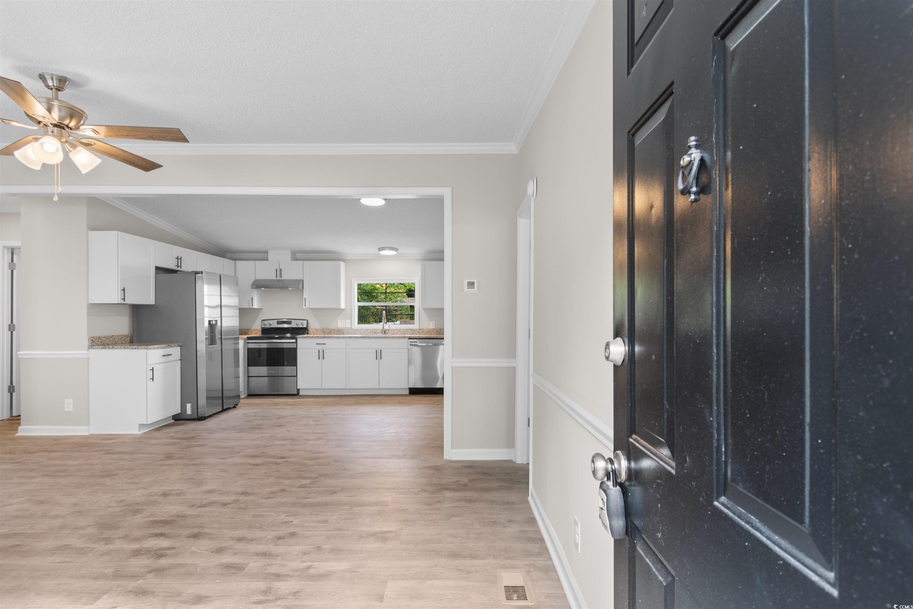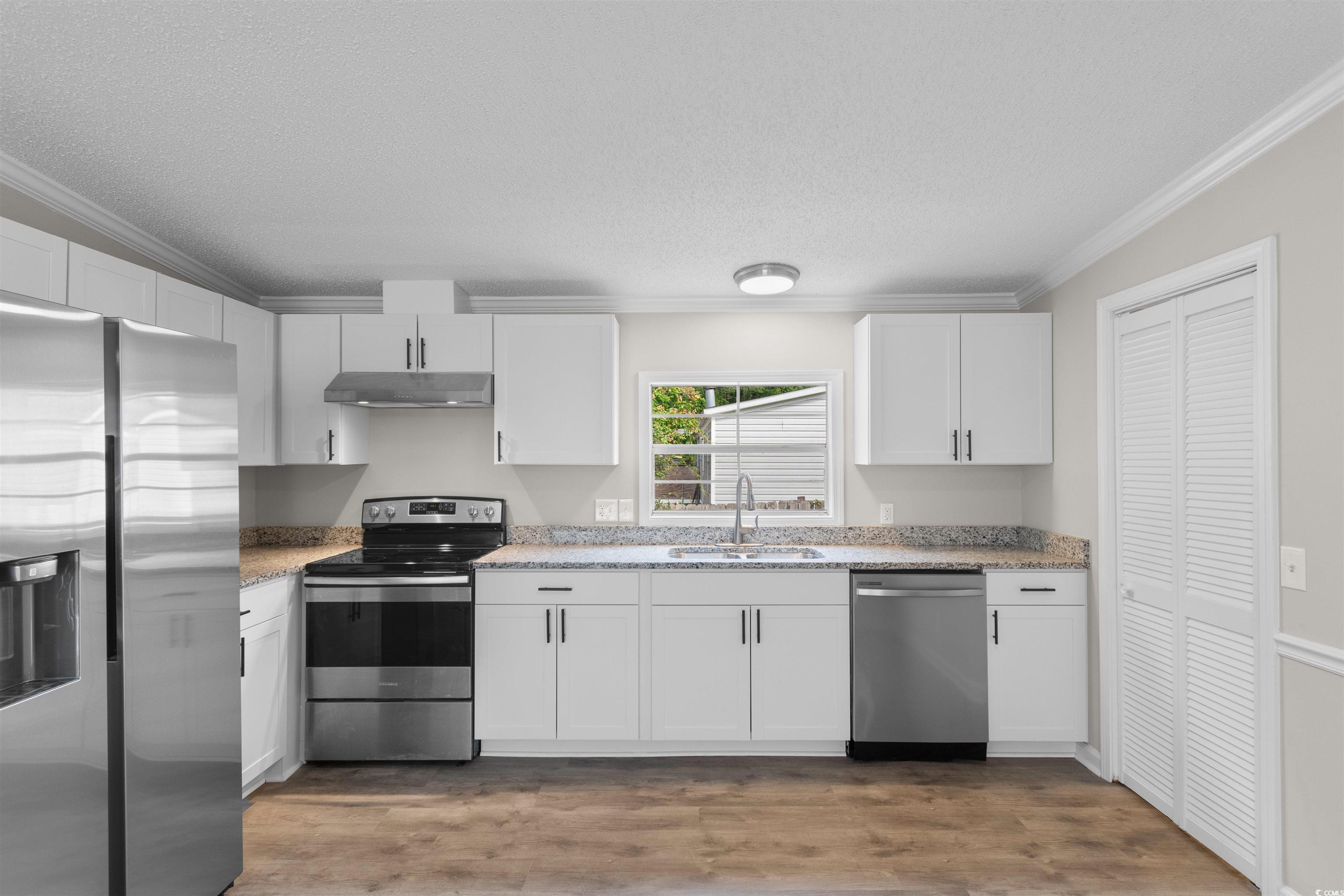 Welcome to this stunningly updated 3-bedroom, 2-bath double-wide mobile home nestled in a quiet cul-de-sac in the Emerald Forest neighborhood. Tucked away on the backside of the community, this move-in ready home offers the perfect blend of modern updates and tranquil living. Step inside to an open-concept floor plan featuring stylish, low-maintenance vinyl flooring throughout. The fully remodeled kitchen is completed with new shaker-style cabinets, sleek bar pulls, granite countertops, and stainless steel appliances. Adjacent to the kitchen, you'll find a spacious laundry room equipped with a brand-new full-size washer and dryer. Yard is beautifully landscaped. Enjoy your morning coffee on the front porch looking over the blooming gardenias and camellias. Don’t miss your chance to own this thoughtfully upgraded home in great location in Carolina Forest. You are close to schools, shopping, and restaurants, doctor's offices and everything else you may need. Contact your agent today to schedule a private showing.