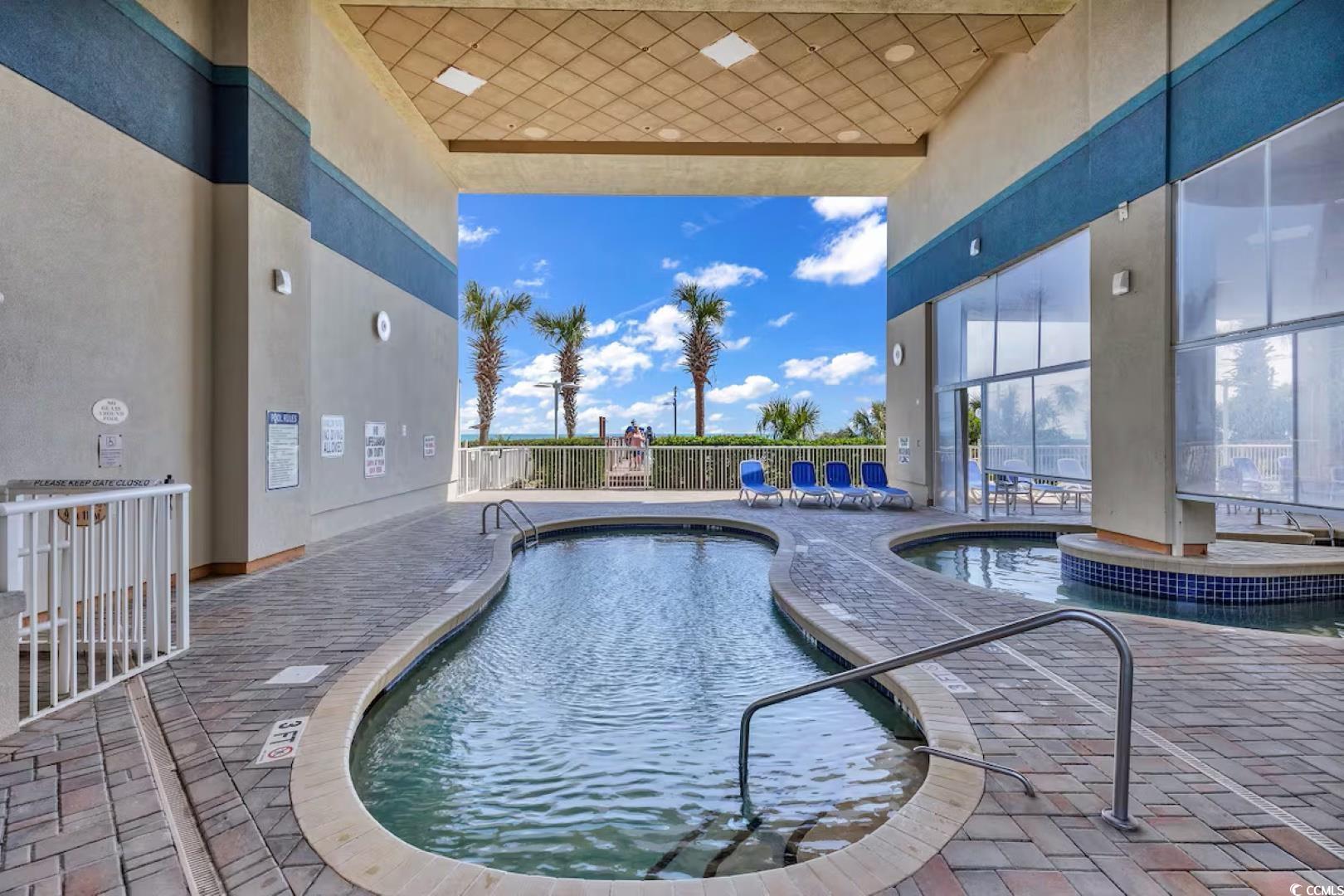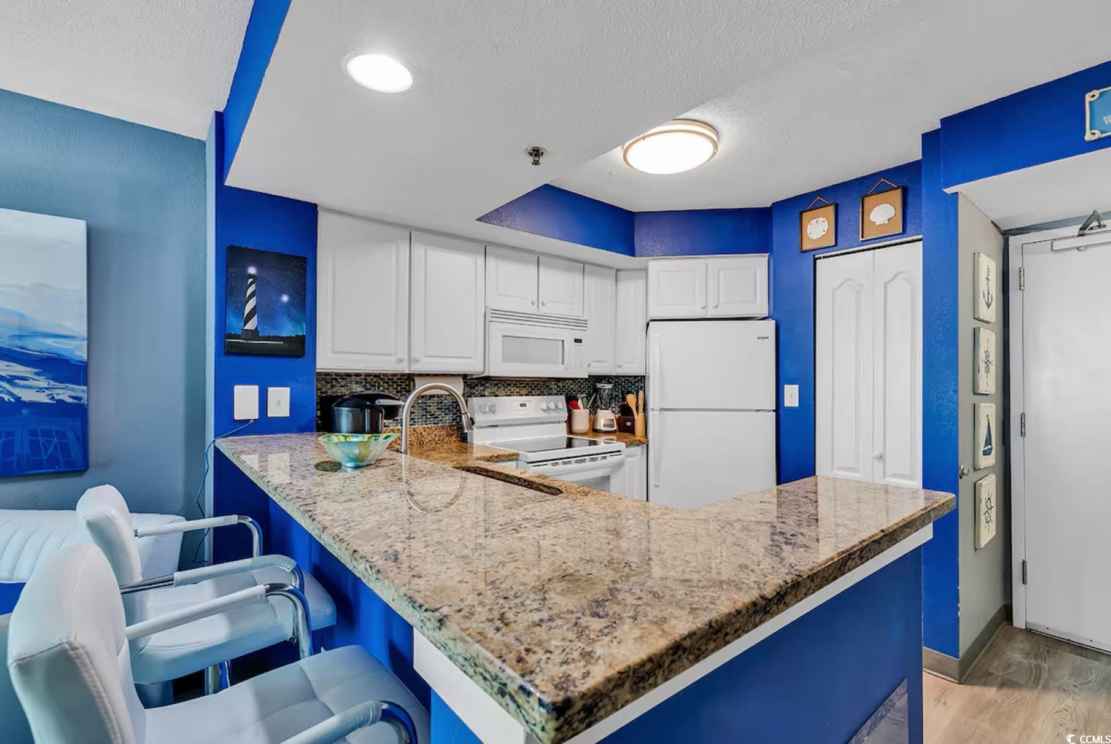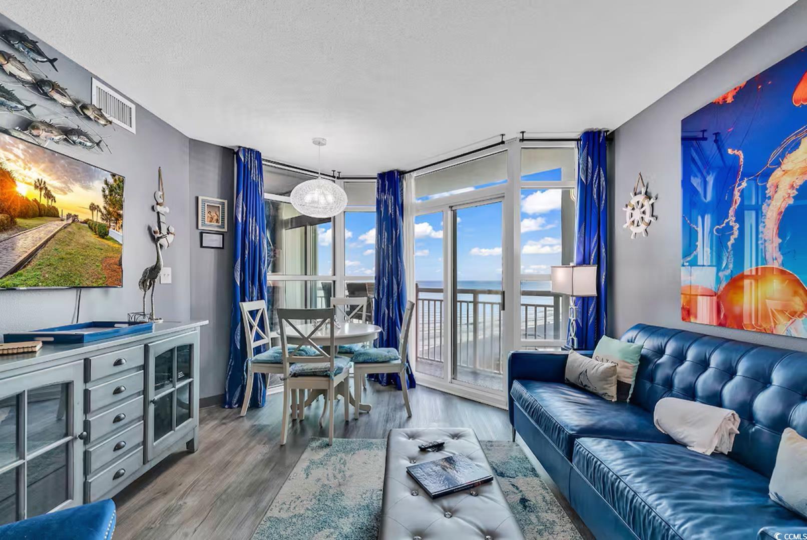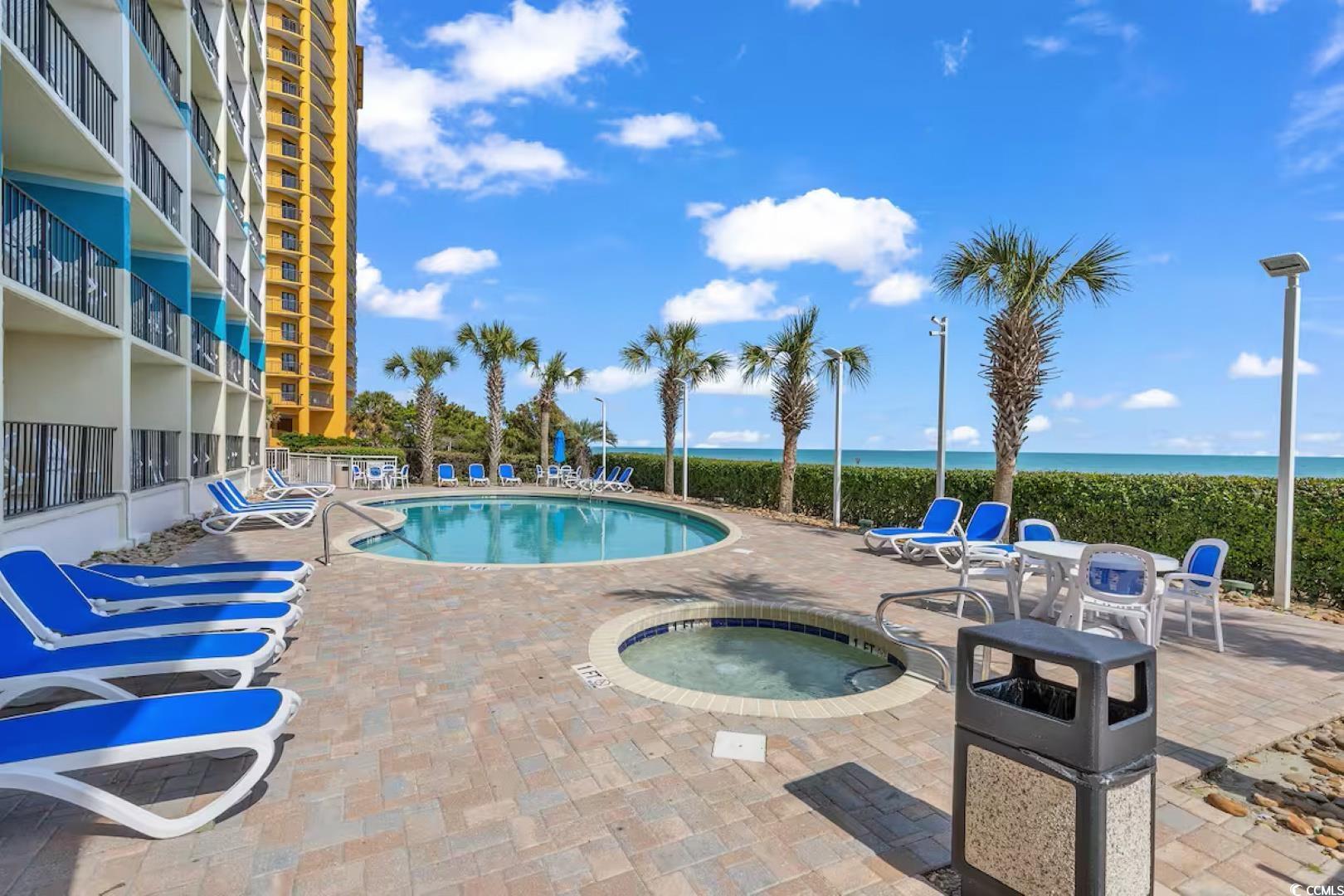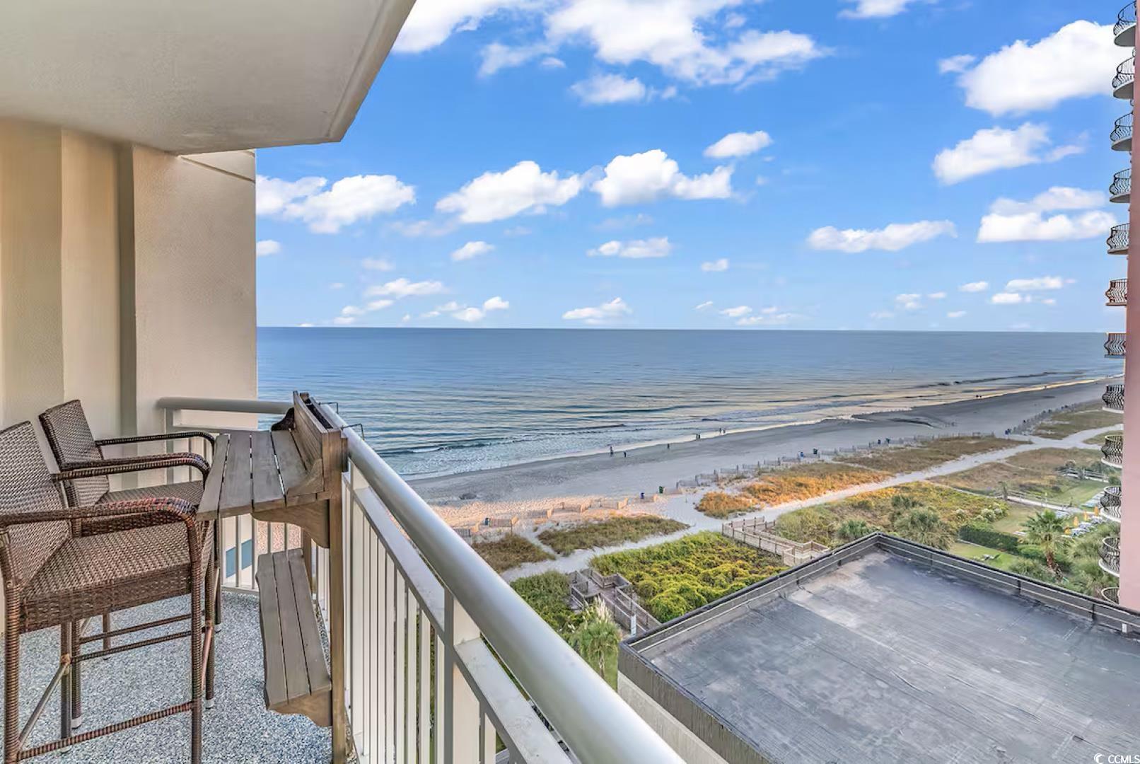 Beautifully updated 1BR/1BA ocean-view condo at the prestigious Carolinian Beach Resort in the heart of Myrtle Beach. This fully furnished unit offers a bright, open floor plan with luxury vinyl plank and tile flooring, granite countertops, and a full kitchen with ample cabinet and counter space. The spacious bedroom features two queen beds, balcony access, and a large ensuite bath. Enjoy stunning ocean views from the private balcony and the convenience of an in-unit washer/dryer. Resort amenities include indoor and outdoor pools, a lazy river, hot tub, kiddie pool, and fitness center. Perfect as a primary residence, vacation getaway, or investment property-just steps from the beach and minutes to Broadway at the Beach, Topgolf, dining, and shopping.