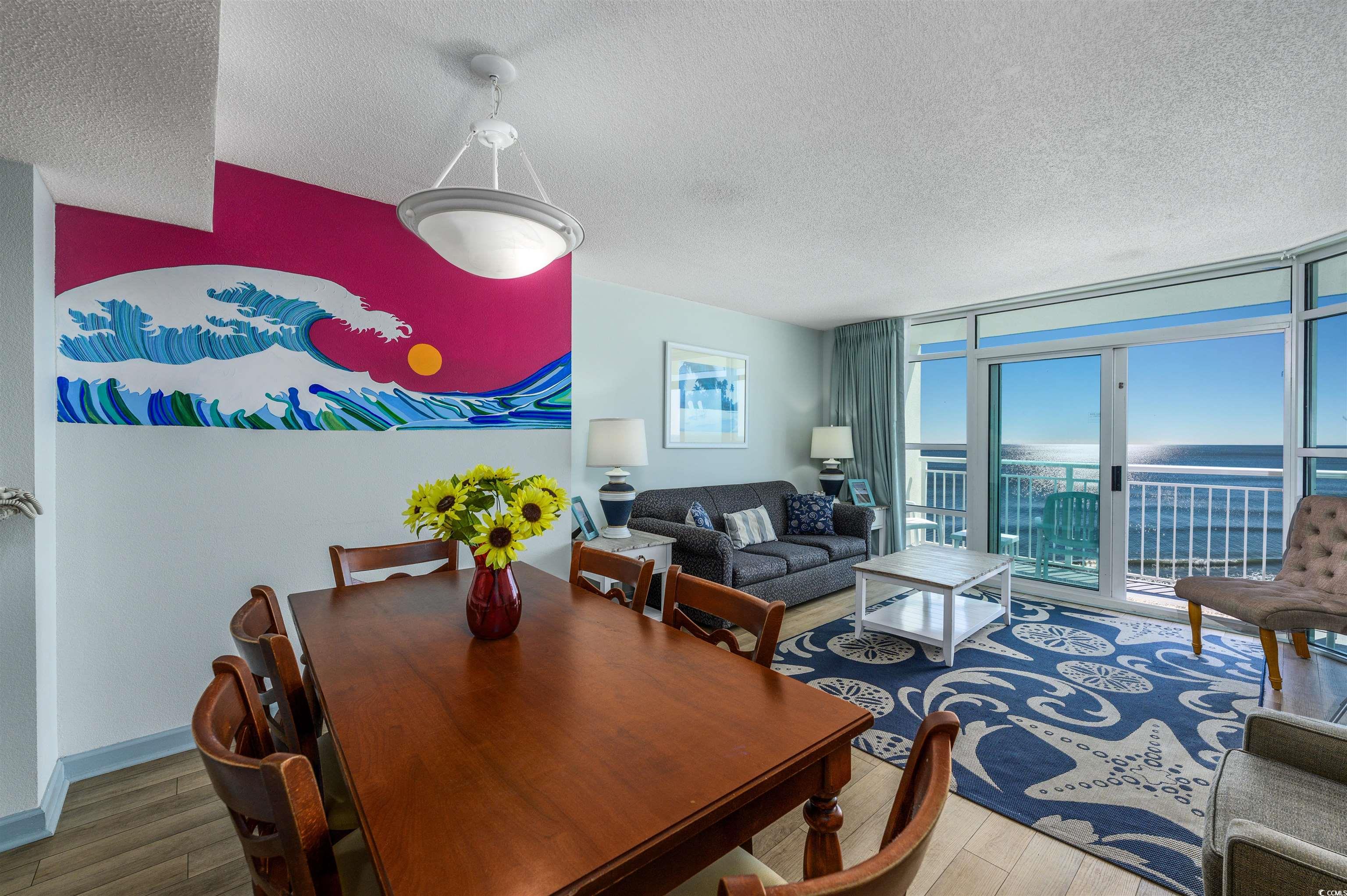 Don’t miss this 12th-floor oceanfront 2BR/2BA condo at The Carolinian Resort! Unit 1232 offers a bright, open layout with a full kitchen featuring granite counters, white cabinets, and a breakfast bar plus dining for six. Updated with luxury vinyl plank flooring (2020), both bedrooms have great closet space and private bath access. Upgrades include new oven, dishwasher, end table, coffee table, 2 new chairs,artwork, and curtains. Step onto your balcony and take in endless ocean views! Resort amenities include an indoor pool, lazy river, hot tubs, fitness center, sundeck, private beach access & more. Perfect for a vacation getaway or investment property—schedule your showing today!
