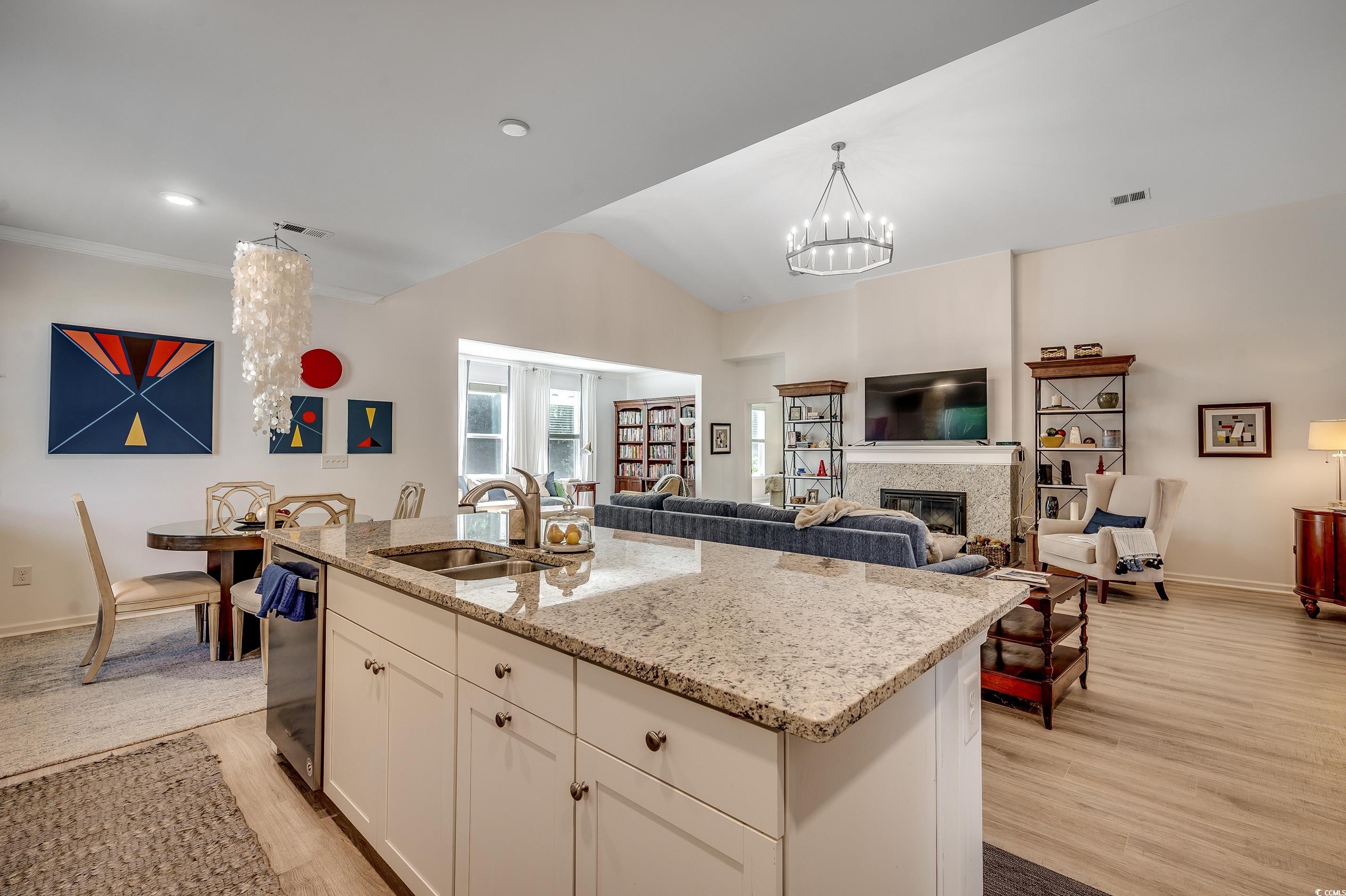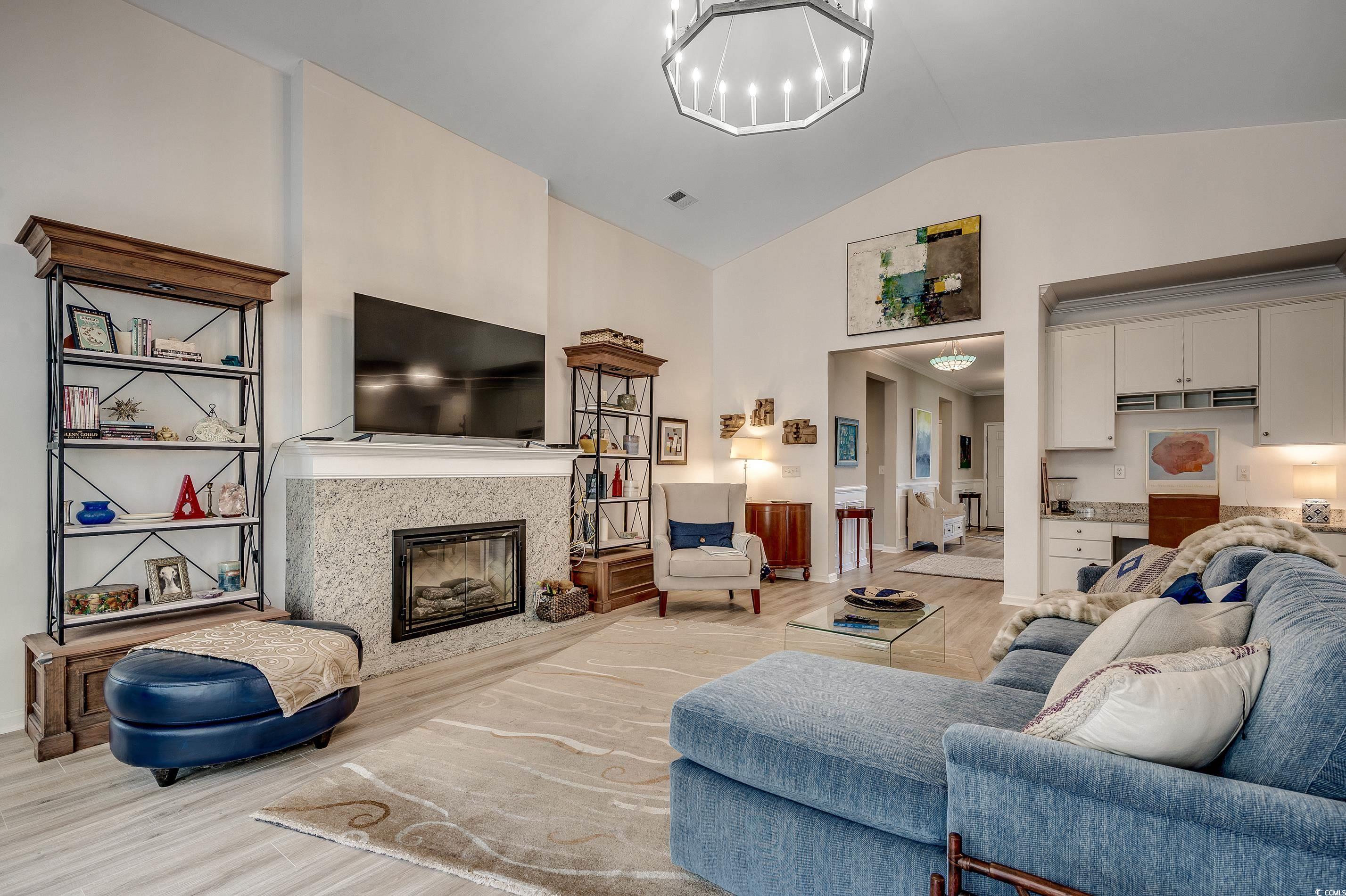 ***OPEN HOUSE Sunday July 20th 12-3pm*** This spacious home, situated on a meticulously maintained and beautifully landscaped premium lot, features 3 bedrooms and 2.5 baths with numerous upgrades. The floor plan is ideal for everyday life or entertaining, encompassing an open kitchen, formal dining room, flex room, great room, and Carolina room, all designed to achieve perfect flow. The kitchen offers an abundance of upgraded cabinetry, pantry, stainless steel appliances, granite countertops, a large island accommodating four barstools, a breakfast nook, and a dedicated office alcove. The home features a split bedroom plan, with two bedrooms at the front of the house sharing a Jack-and-Jill bath. The primary suite includes a ceiling fan with light, a large walk-in tiled shower, double sink vanity, and a walk-in closet. Lots of storage plus an attached garage with storage above. The flex room at the front of the house and the Carolina room at the back provide ample extra space. Off the Carolina room is a screen porch, accompanied by a paved area on the left and a large patio on the right, complete with a charming pergola. The backyard offers a tranquil oasis with picturesque water views and a secluded private setting, creating a peaceful retreat for relaxation. Each day here provides a unique opportunity to connect with nature and find calmness, ensuring a sense of escape in this peaceful environment. Cameron Village amenities include pool, club house, tennis courts, basketball court and a playground. Located in St James school district and only 6.5 miles to the beach. Schedule your showing today! You won’t be disappointed! Buyer and buyer's agent are responsible for verification of all measurements HOA info and zoning.