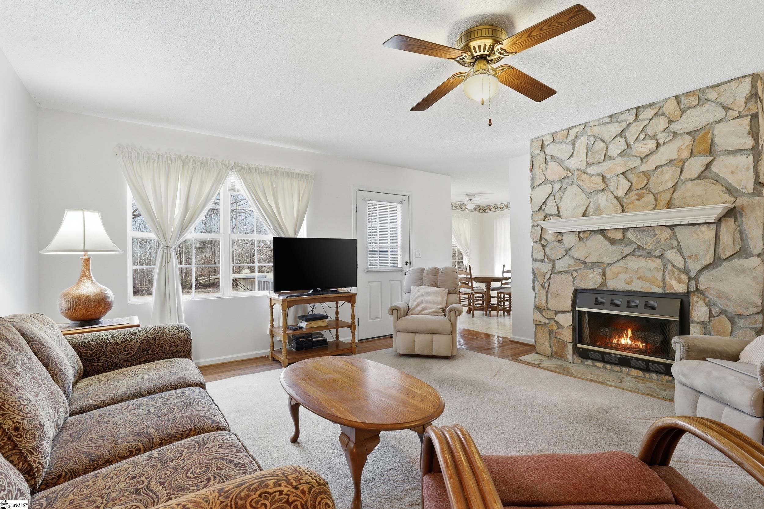 Discover serene country living on the outskirts of the charming town of Landrum with this beautiful 3 bedroom, 2 bath single-family home. Nestled on an expansive 1.5-acre lot that gently backs up to a peaceful pond, this property offers the perfect blend of privacy, natural beauty, and everyday convenience. Step inside to find glistening hardwood floors flowing through most of the living spaces and plenty of windows showcasing the peaceful outdoor views. The spacious, eat-in kitchen boasts a plethora of solid wood cabinetry—ideal for ample storage and effortless meal prep. Relax in the cozy living room featuring a stunning stone, gas-log fireplace, perfect for those crisp winter days. Retreat to the generous primary suite complete with an ensuite bathroom, large walk-in closet, dual sinks, and a large soaking tub. Two additional bedrooms provide flexibility for family, guests, or a home office. Outdoor living is a dream here. Enjoy your morning coffee or evening unwind on the deck overlooking the beautifully maintained yard and tranquil pond. The 2-car attached garage plus a detached carport, provide excellent storage and parking options. No HOA, no restrictions, and District 1 schools. Don’t miss this Landrum gem! Call today to schedule your private tour!