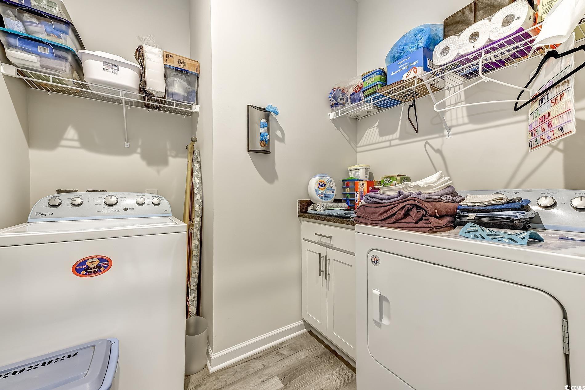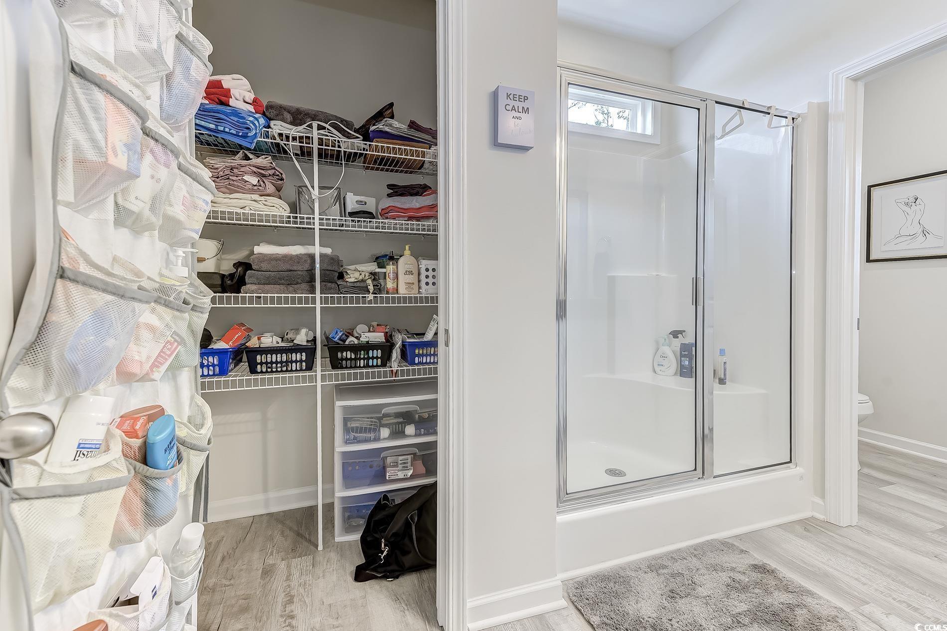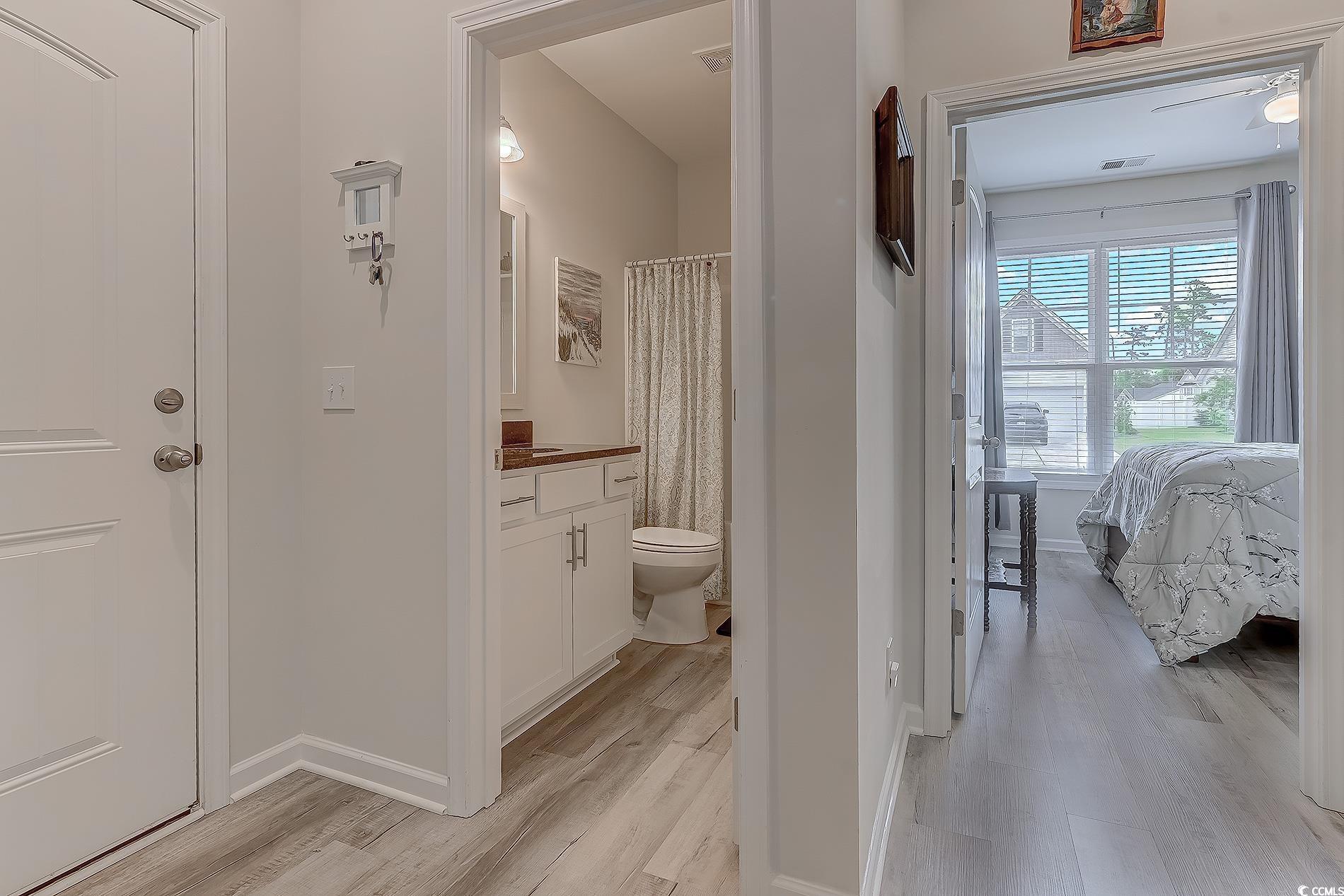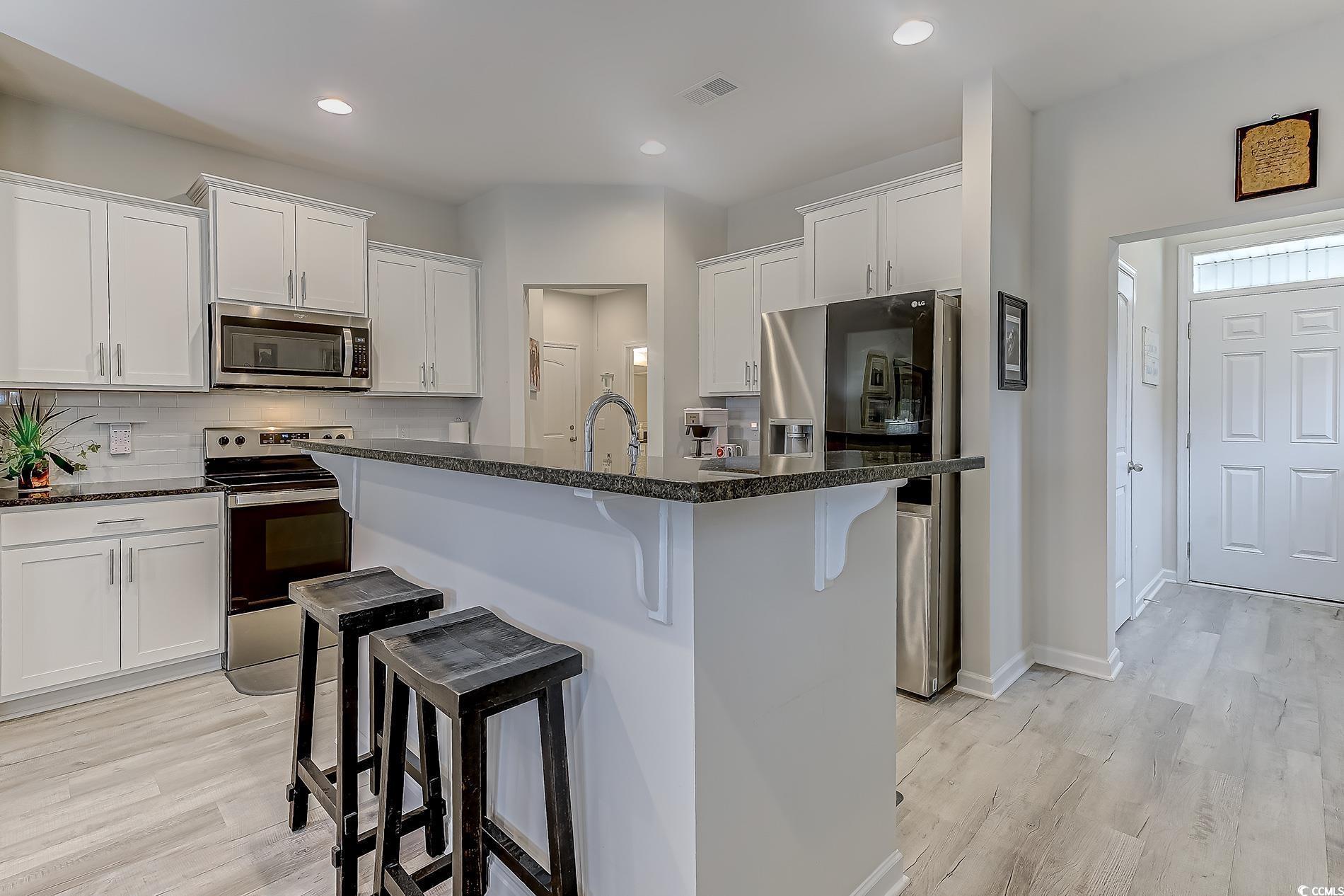 Like a new, well-maintained and immaculate 3-bedroom, 2-full-bath home that has all the costly extras already done and is move-in ready. Set in the quaint and quiet Timber Ridge subdivision, with some of the lowest HOA dues. This home has hurricane shutters, LVP floors throughout the home. Gutters and privacy fencing all very expensive upgrade and all done. Inside, there's an open floor plan, with granite in all bathrooms and the Kitchen, along with an farmhouse sink, beautiful Stainless-steel appliances, and window treatment. a tray ceiling in the primary bedroom, a spacious walk-in closet, and bathroom .The home flows out to a covered porch. There is a laundry room with cabinets and counter space along with a tons of closets, and storage throughout. The primary bedroom, a spacious primary bath with an easy walk-in Shower. This home was built by Great Southern Homes, 2024 builders of the year! in Myrtle Beach, known for their green building and upgrades like on-demand hot water and lawn irrigation. The seller has only lived here 2 to 3 months out of the year. This home is must-see.