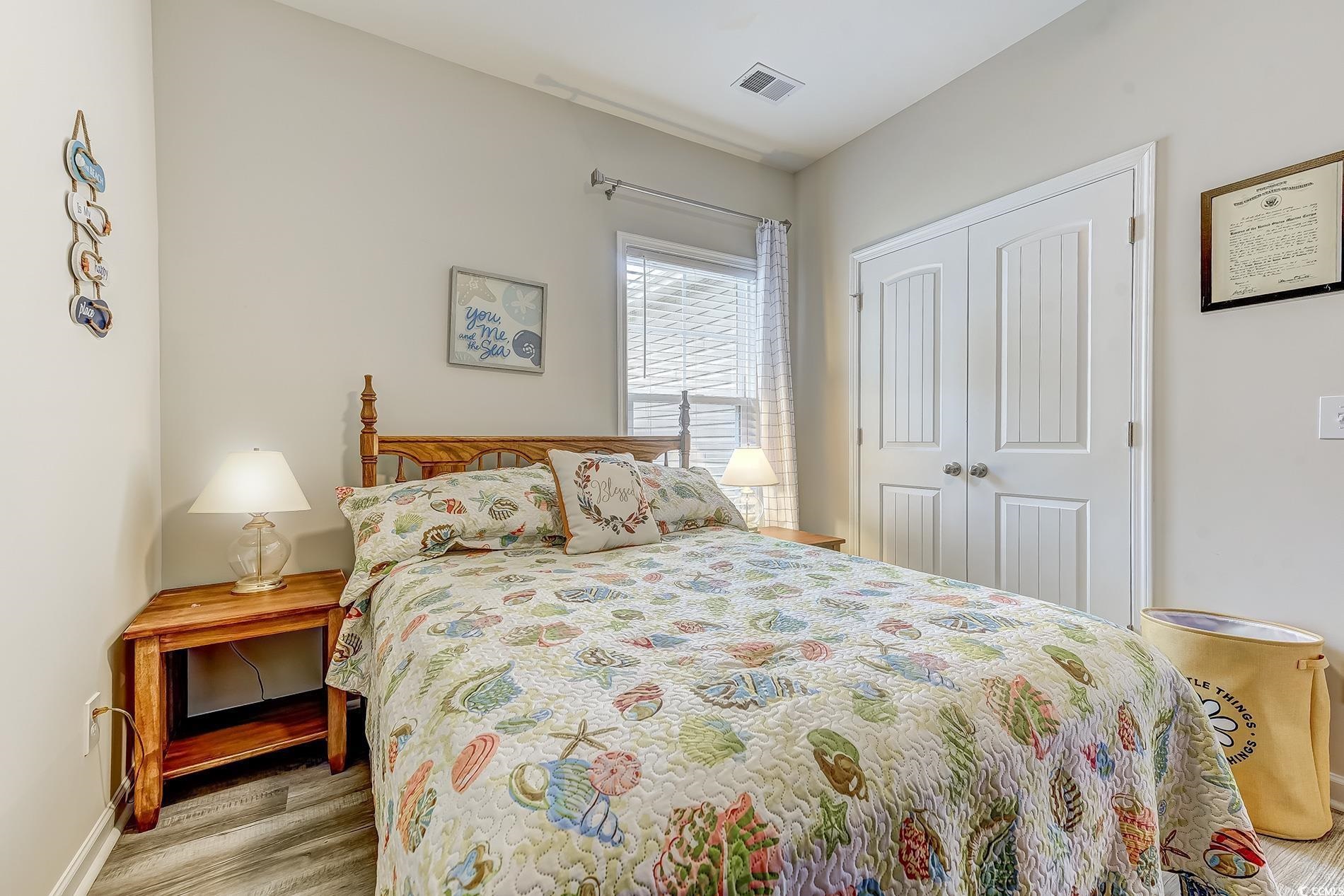 Welcome to coastal living in this quaint neighborhood. Easy, bright, light, and airy single-story home. Well-maintained and immaculate 3-bedroom, 2-full-bath home that has all the costly extras already done, and is move-in ready. Set in the quiet Timber Ridge subdivision, with some of the lowest HOA dues. This home has hurricane shutters and LVP floors throughout the home. Gutters and privacy fencing are all very expensive upgrades and are all done. Inside, there's an open floor plan, with granite in all bathrooms and the Kitchen, along with a farmhouse sink, beautiful Stainless-steel appliances, and window treatment. a tray ceiling in the primary bedroom, a spacious walk-in closet, and a bathroom. The home flows out to a covered porch. There is a laundry room with cabinets and counter space, along with tons of closets, and storage throughout. The primary bedroom has a spacious primary bath with an easy walk-in Shower. This home was built by Great Southern Homes, 2025 builders of the year! in Myrtle Beach, known for its green building and upgrades like on-demand hot water and lawn irrigation. The seller has only lived here for 2 to 3 months out of the year. This home is a must-see.