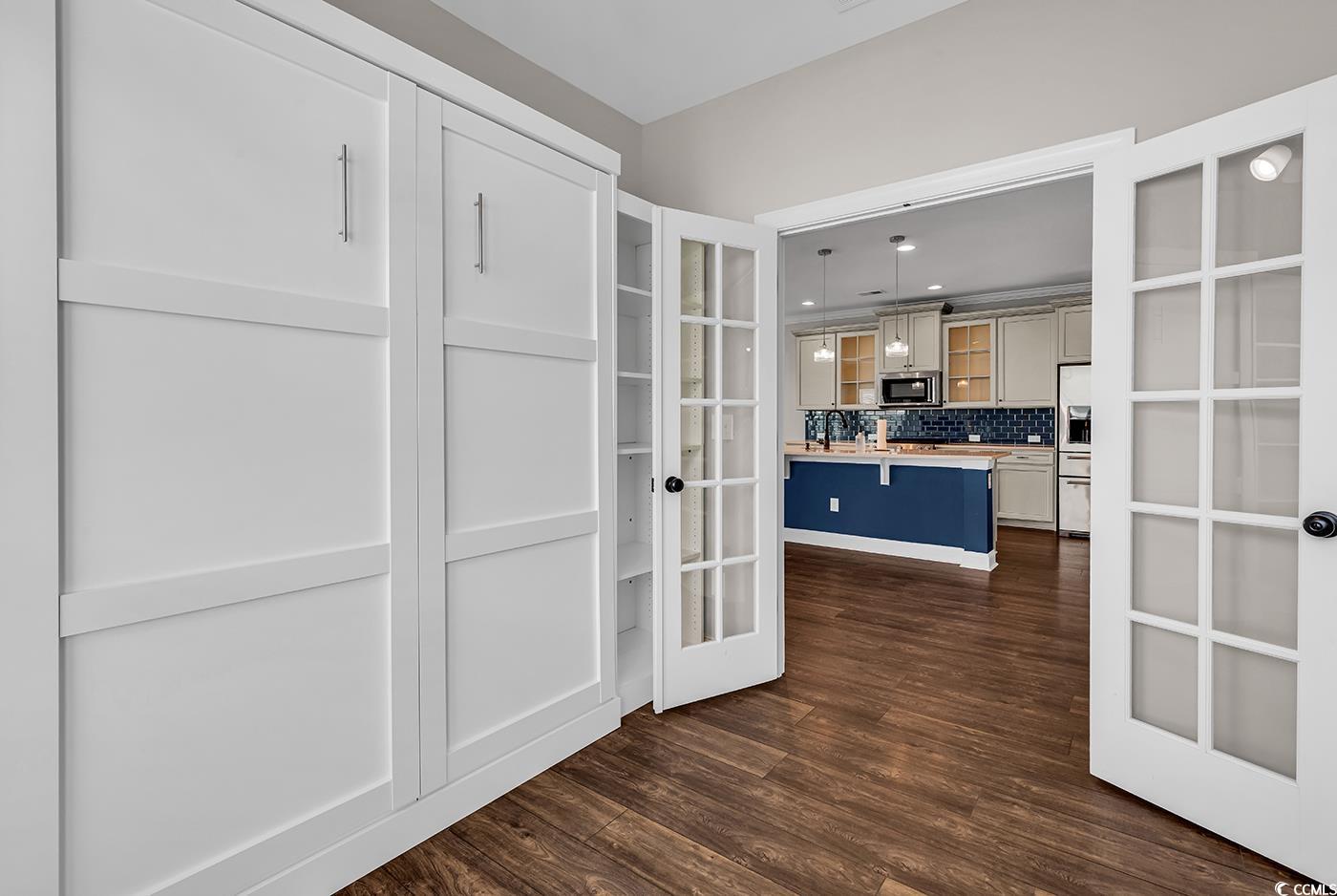 Discover the perfect blend of luxury, comfort and low country charm in this stunning 4-bedroom, 2.5-bathroom custom home nestled along the pond in the sought-after community of Wilderness Pointe in Prince Creek. With over 3,066 square feet of thoughtfully designed living space, this elegant residence offers a flexible multi-level layout, upscale finishes and resort-style community amenities that elevate every aspect of daily living. Step into the main level and be greeted by a formal living room centered around a gas fireplace enhanced by an in-ceiling sound system perfect for entertaining or relaxing evenings. The dedicated home office complete with French doors and a queen size Murphy bed provides the ideal space for working remotely or doubles for hosting overnight guests. At the heart of the home is a gourmet chef's kitchen with a gas range, custom cabinetry, glass-front upper cabinets, a large prep area with double sinks and a pantry that create the ultimate workspace. The sunlit formal dining room just off the kitchen is ideal for family gatherings or hosting elegant dinner parties. Retreat to the extra large primary suite where you'll find a private escape featuring a walk-in closet, luxurious ensuite bath , dual sink vanity and refined finishes throughout. For added convenience, the laundry room is near both the primary suite and kitchen. This upper level boasts a private balcony that overlooks the pond with a water feature that's perfect for morning coffee or evening relaxation. On the lower level a sprawling great room awaits opening seamlessly to a covered patio and outdoor space ideal for entertaining or simply enjoying the pond views. This level also features two spacious bedrooms with a full bathroom and direct access to the 2-car garage. The thoughtful design includes excessive storage options, oversized closets and even layout provisions for future consideration of a private indoor elevator allowing effortless access between floors. This home is built with durable hardi-plank siding, a metal roof and Bahama shutters combining beauty with low-maintenance durability. Beyond your front door, enjoy access to an array of community amenities including an amenity center, walking, jogging, hiking and cycling trails, 2 community pools, pickleball, tennis, basketball, and volleyball courts and the TPC Golf Course, one of the top-ranked in the state; 5 Courses within 5 miles! Experience seamless indoor to outdoor living from your covered porch and balcony, both spaces are equipped with dual ceiling fans to keep you cool while you enjoy the game on the mounted outdoor TV with cable hookup. A convenient natural gas line is ready for your firepit or grill creating the perfect atmosphere for game day or memorable gatherings. Prince Creek is just minutes from the MarshWalk, top-rated schools, dining, shopping, and the beautiful beaches of the Grand Strand. Whether you're searching for your forever home or a spacious second home by the coast, this home offers an exceptional opportunity to live your best life in the Grand Strand. To help you visualize the property's potential, some photos have been virtually staged. This digital enhancement is meant to inspire your design ideas for the space and is not indicative of the home's actual furnishings. Listing Agent is related to Seller