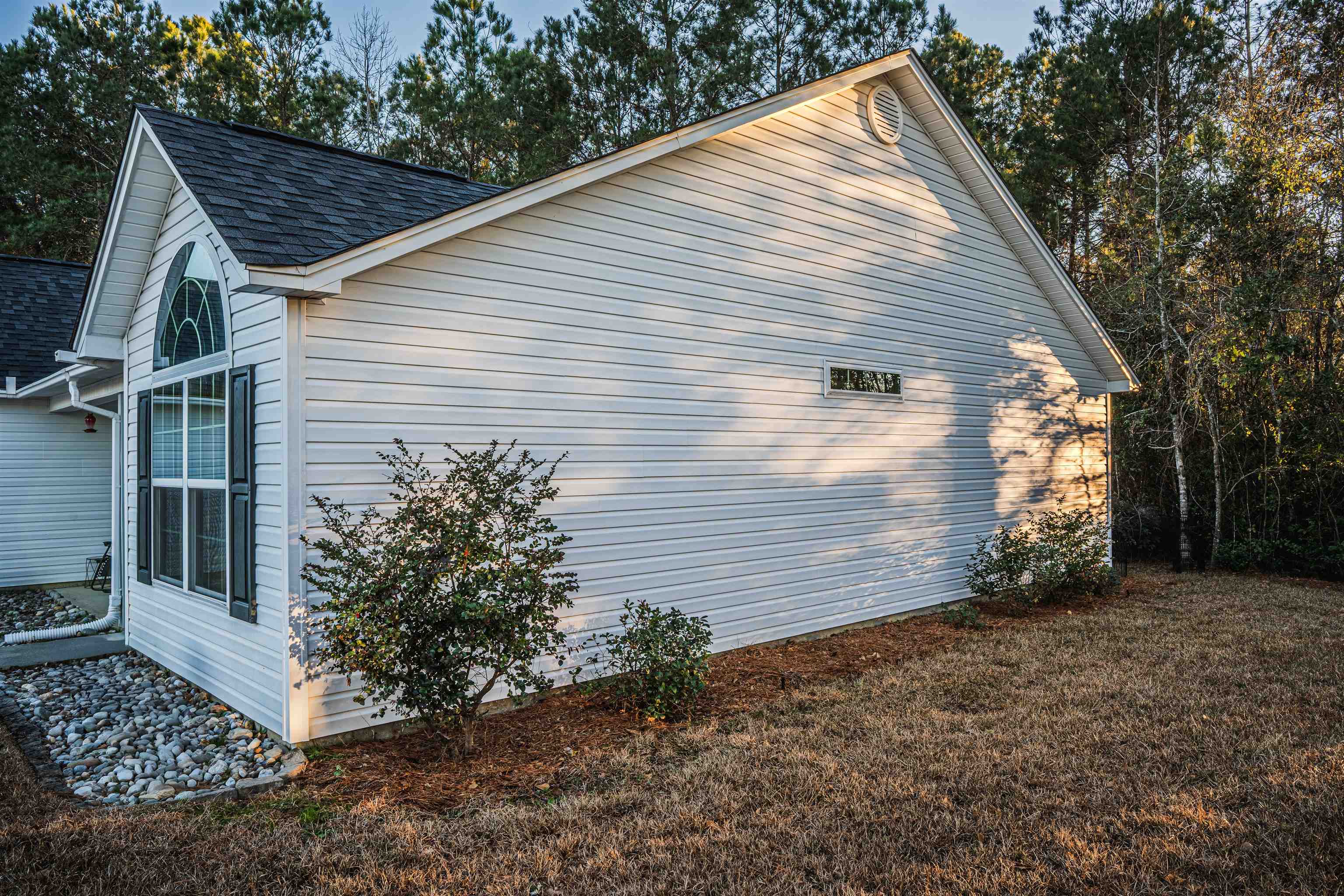 Must See this well maintained 3 Bed, 2 Bath home with an attached 2 car garage located on a cul-de-sac in the highly sought after, Rosehaven Community in Conway, only a short drive to the Beach! This huge mostly wooded lot (.89 acres) located at the end of a cul-de-sac, not only offers lots of privacy, but keeps your children safe from passerby traffic. Own a unique property with wooded lot that provides a natural enhanced privacy to your home, as well as shade and natural beauty. This beautiful home features an open floor plan with a high cathedral ceilings, that gives you that spacious feel from the moment you enter. You will love how impressive the kitchen looks with the granite counter tops, kitchen island, stainless steel appliances, recessed lighting, and from all the natural light coming in. ***This home comes furnished, but seller will remove, if furnishings are not needed. Ask your agent for the list of items that convey with a successful closing.*** All stainless steel appliances & washer/dryer convey with a successful closing of the purchased property. Professionally installed full house water filtration system. The split bedroom plan offers that needed privacy from the kids or visiting guests. The spacious primary bedroom features a tray ceiling with fan for keeping you cool at night. Primary bath features a granite counter top with double sinks, vanity, garden tub, walk-in shower and a big walk-in closet. Second bedroom has a vaulted ceiling with fan and a beautiful half-moon window. No carpet in this home allows for easy cleanup. If you or the kids get dirty playing or working in the yard, there is a utility sink in the large laundry room to help cleanup. Rosehaven is a very nice community with sidewalks throughout for all your daily walks around the neighborhood. This property is Not in a flood zone and has a very low monthly HOA fee. Rosehaven is located just minutes from the Historic Rivertown of the City of Conway with lots of amenities. Only a short drive to the beach with all the fine dining restaurants & entertainment the beach has to offer! View today, this one will not last! Listing information is deemed reliable, but not guaranteed. All measurements are approximate and listing information is the responsibility of the buyers and their agent to verify accuracy.