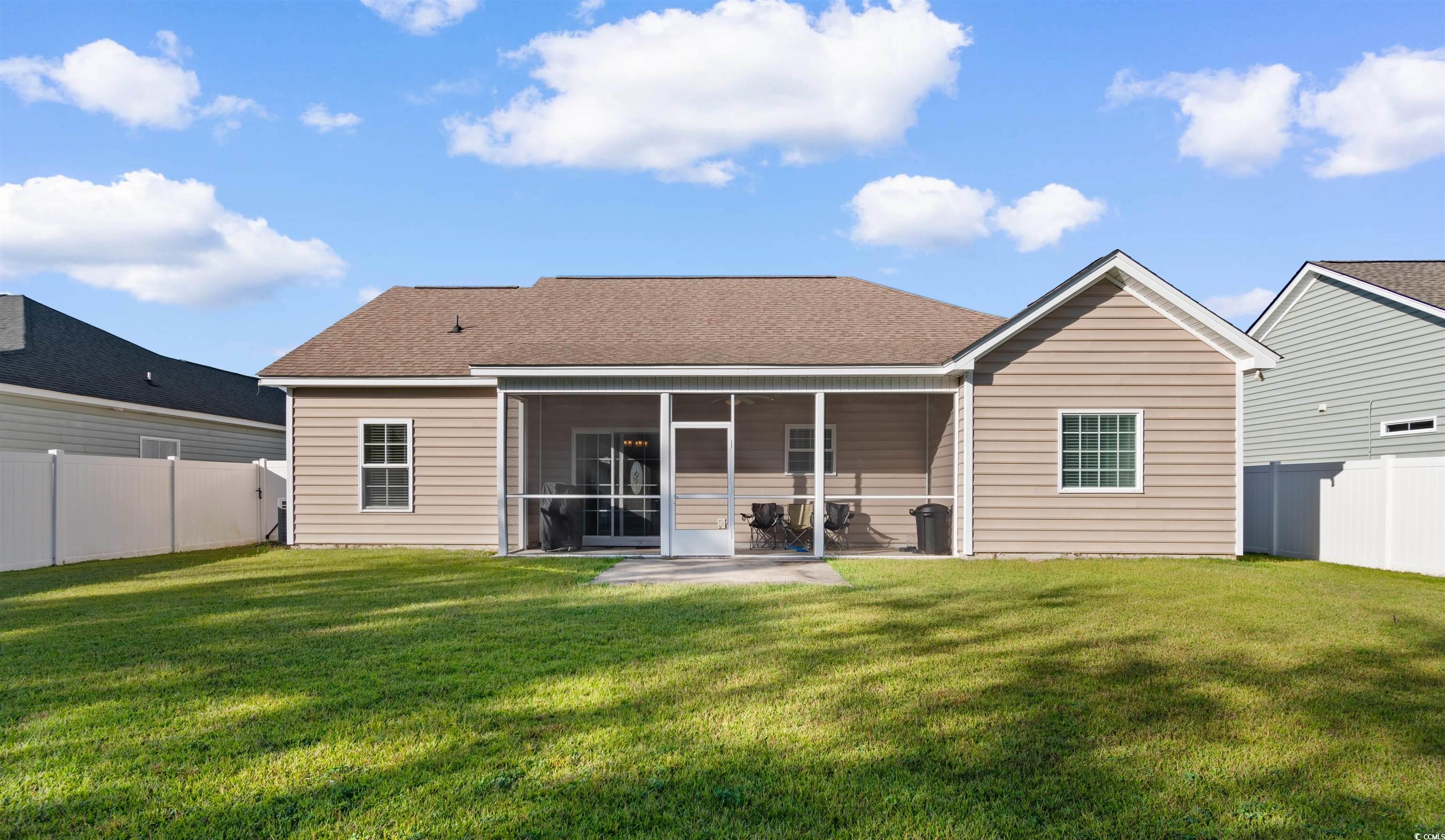 Welcome to this beautifully maintained 3-bedroom, 2-bathroom home in the desirable Grier Crossing community of Conway. With a bright, open layout, vaulted ceilings, and thoughtful upgrades throughout, this home offers comfort, style, and convenience. The main living area is filled with natural light and flows seamlessly into a well-appointed kitchen featuring stainless steel appliances, a breakfast bar, and tons of cabinetry—perfect for cooking, hosting, or everyday living. The primary suite is a spacious retreat with elegant tray ceilings, a walk-in closet, and a luxurious en suite bathroom offering his-and-hers vanities, a walk-in shower, and a relaxing soaking tub. Two additional bedrooms and a second full bathroom provide plenty of room for guests, family, or a home office. Step outside to your screened-in porch, a perfect spot to enjoy the outdoors while overlooking the fully fenced-in backyard—ideal for kids, pets, or quiet evenings. The home also features an irrigation system for easy lawn care and an oversized concrete driveway with room for multiple vehicles. Located just minutes from downtown Conway’s boutique shops, local cafés, and with easy access to Highway 22, you can enjoy a quick commute to Myrtle Beach and all the attractions of the Grand Strand. This home truly checks all the boxes—schedule your private tour today!