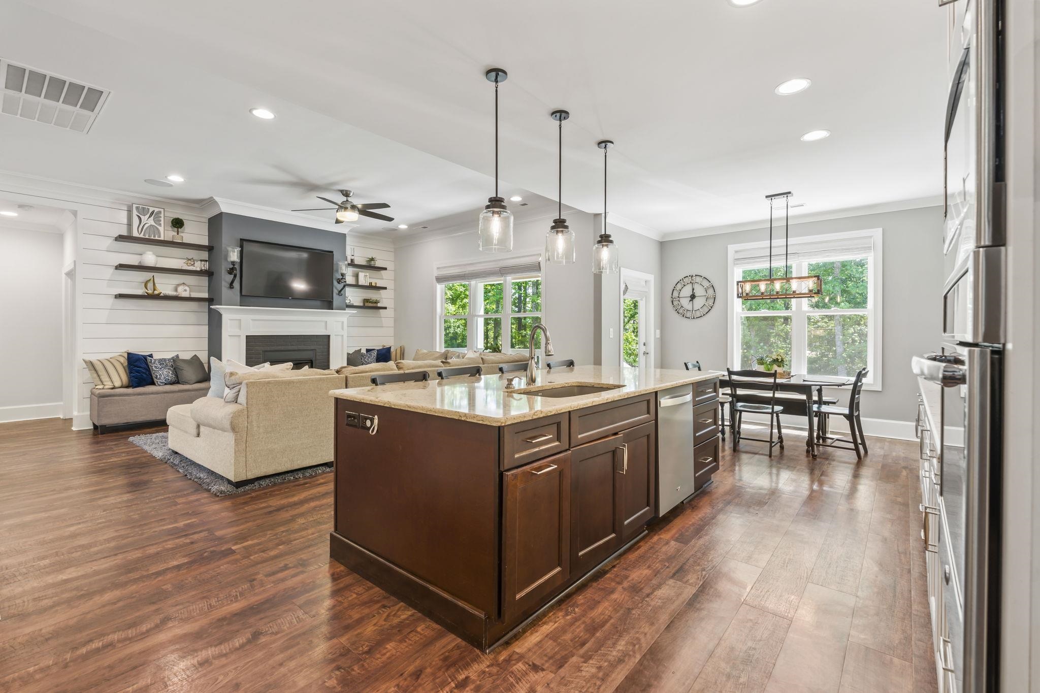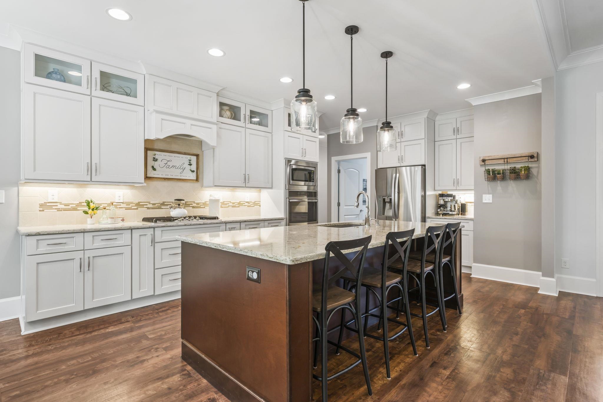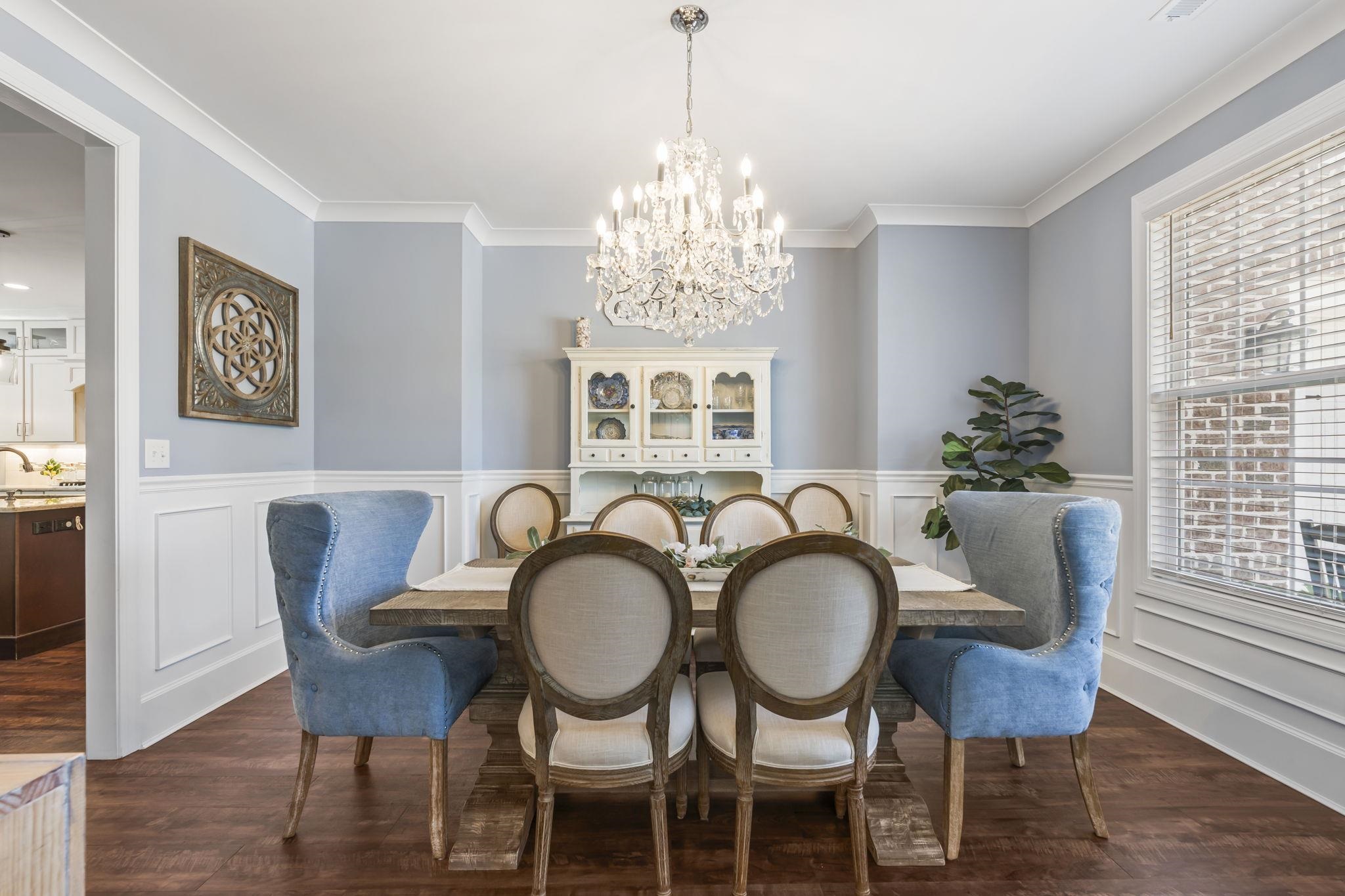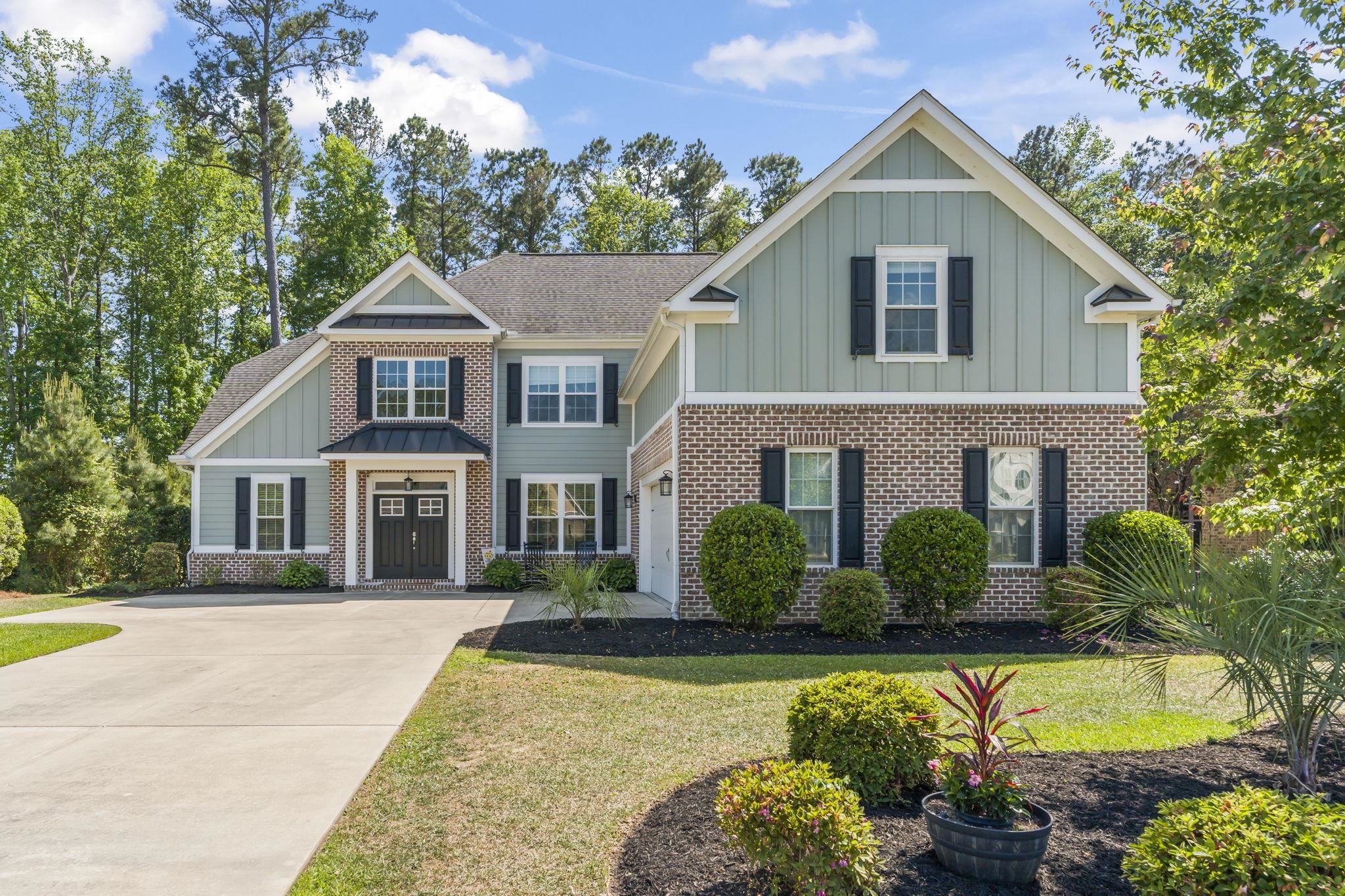 Four-bedroom, two-bathroom craftsman-style home in the Cypress River Plantation community, Conway, South Carolina. This two-story residence features brick and board-and-batten exterior with black shutters, a standing-seam metal roof accent over the covered entry, and a two-car garage with manicured landscaping and mature pine trees providing a private backdrop. Inside, a two-story foyer with hardwood flooring, a double front door with transom window, and an open staircase with wood treads and wrought-iron balusters sets the tone for the home's craftsman elegance. The formal dining room features wainscoting, crown molding, a statement crystal chandelier, and hardwood floors - connecting directly to a chef's kitchen with a large center island, granite countertops, white shaker cabinets with glass-front uppers, stainless steel double wall ovens, gas cooktop, tile backsplash, and pendant lighting. The adjoining breakfast area overlooks the rear yard through large windows. The open-concept family room includes hardwood flooring, a shiplap accent wall with built-in floating shelves, a tile-surround fireplace, crown molding, and a tray ceiling with a ceiling fan. The main-level primary suite features a tray ceiling, bay window seating area, plush carpet, and abundant natural light. Upstairs, a large bonus room with vaulted ceilings and dual ceiling fans functions as a playroom, media space, or home gym - providing flexible living space for any lifestyle. The rear screened porch with a tongue-and-groove wood ceiling, ceiling fan, and white railing system offers a private outdoor living area overlooking a flat, sodded backyard and mature hardwood tree line. A brick patio and dedicated grilling area complete the backyard setup. Cypress River Plantation in Myrtle Beach, SC 29588 offers gated access and resort-style amenities. The community sits along the Waccamaw River with convenient access to SC-707 and SC-544, placing residents within minutes of Murrells Inlet's Marsh Walk dining, Coastal Grand Mall, Tanger Outlets, and the Grand Strand's beaches. Cypress River Plantation, Myrtle Beach, SC 29588.