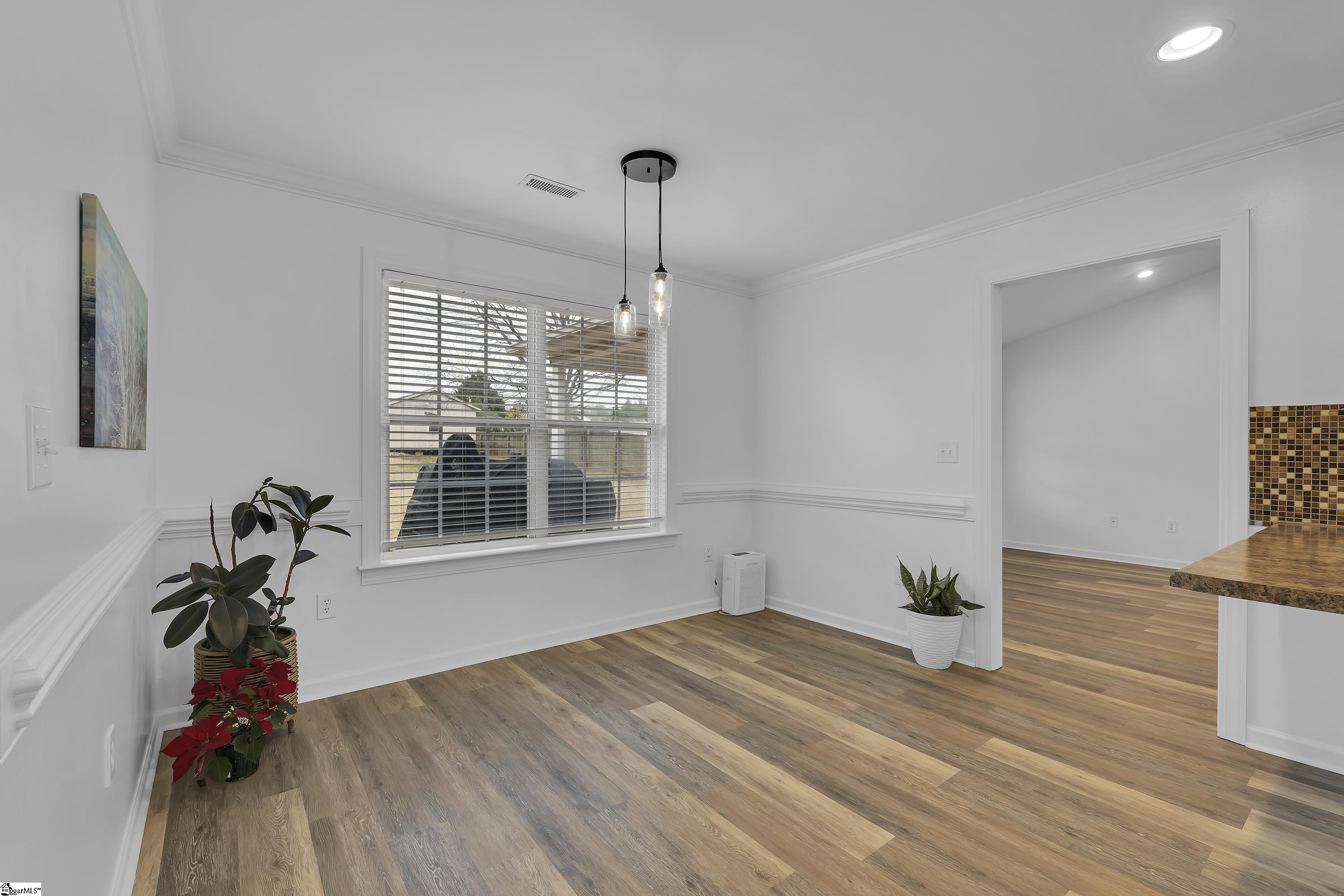 Welcome to your dream home in Wellford! This charming 3 bedroom, 2 bathroom, one level home is everything you are looking for. As you walk up to the home you are greeted by a cozy, rocking chair front porch. The entire house has been tastefully updated with all-new paint, creating a bright and inviting atmosphere. Brand new luxury vinyl plank flooring has been installed throughout the home creating smooth transitions from room to room. The split level floorplan offers privacy between the primary bedroom and additional rooms. The kitchen boasts a freshly painted cabinets, complete with sleek countertops, ample cabinetry, and modern appliances. The spacious primary bedroom offers a walk-in closet and a well-appointed ensuite bathroom. The outside features are not to be missed! Extended patio area has plenty of room for grilling and chilling. The 16 x 24 outbuilding has electric and is perfect for a woodworker or other hobbyist. The fenced backyard is serene, with trees and beautiful flowers in the spring. The fence has a drive through gate on the left side of the home, making it easy to pull in an RV or trailer to the back. The neighborhood is beautifully kept showing pride of ownership. No HOA and possible USDA financing available.