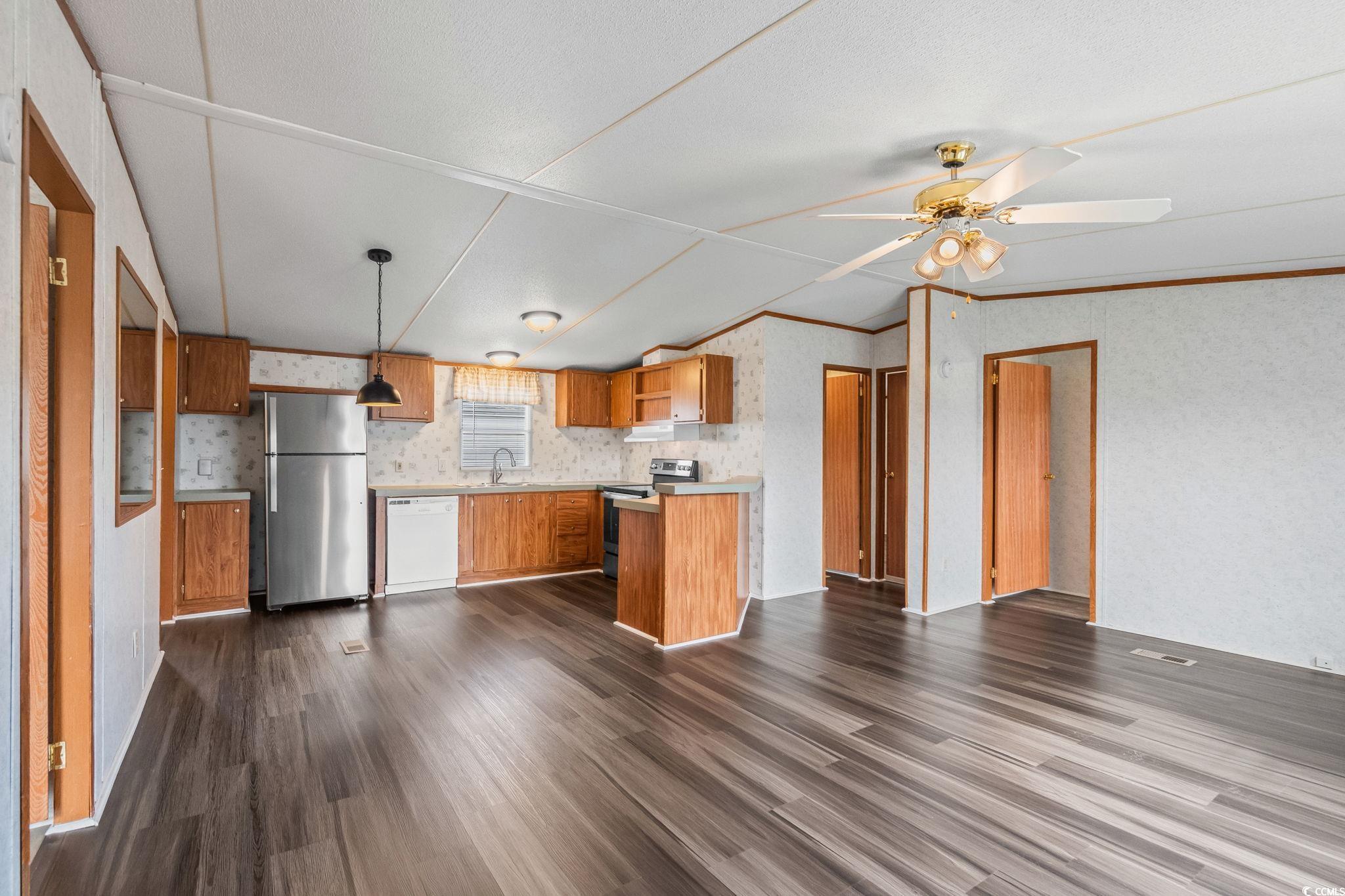 GATED SOUGHT AFTER COMMUNITY, GREAT LOCATION, METICULOUSLY MAINTAINED!! Welcome to the desirable community of the Park at Long Bay! This well-maintained 3-bedroom, 2-bathroom home offers comfort, convenience, and a spacious open floor plan perfect for modern living. Step inside to find a bright living area with large windows that fill the home with natural light, complemented by updated flooring and a neutral palette that’s move-in ready. The kitchen features abundant cabinet space, a breakfast bar, and updated appliances, making meal prep both practical and enjoyable. The split-bedroom layout provides privacy, with a generous owner’s suite that includes a walk-in closet and ensuite bathroom. Two additional bedrooms and a second full bath are ideal for family, guests, or a home office. Outside, you’ll enjoy a large, level yard with plenty of room for outdoor living, plus a storage shed for all your tools and equipment. The front porch is the perfect spot to relax and take in the peaceful neighborhood. A spacious driveway offers ample parking. Located just a short drive to the beaches, golf, shopping, and dining of the Grand Strand, this home combines small-town charm with coastal convenience. Buyer is responsible for verification.