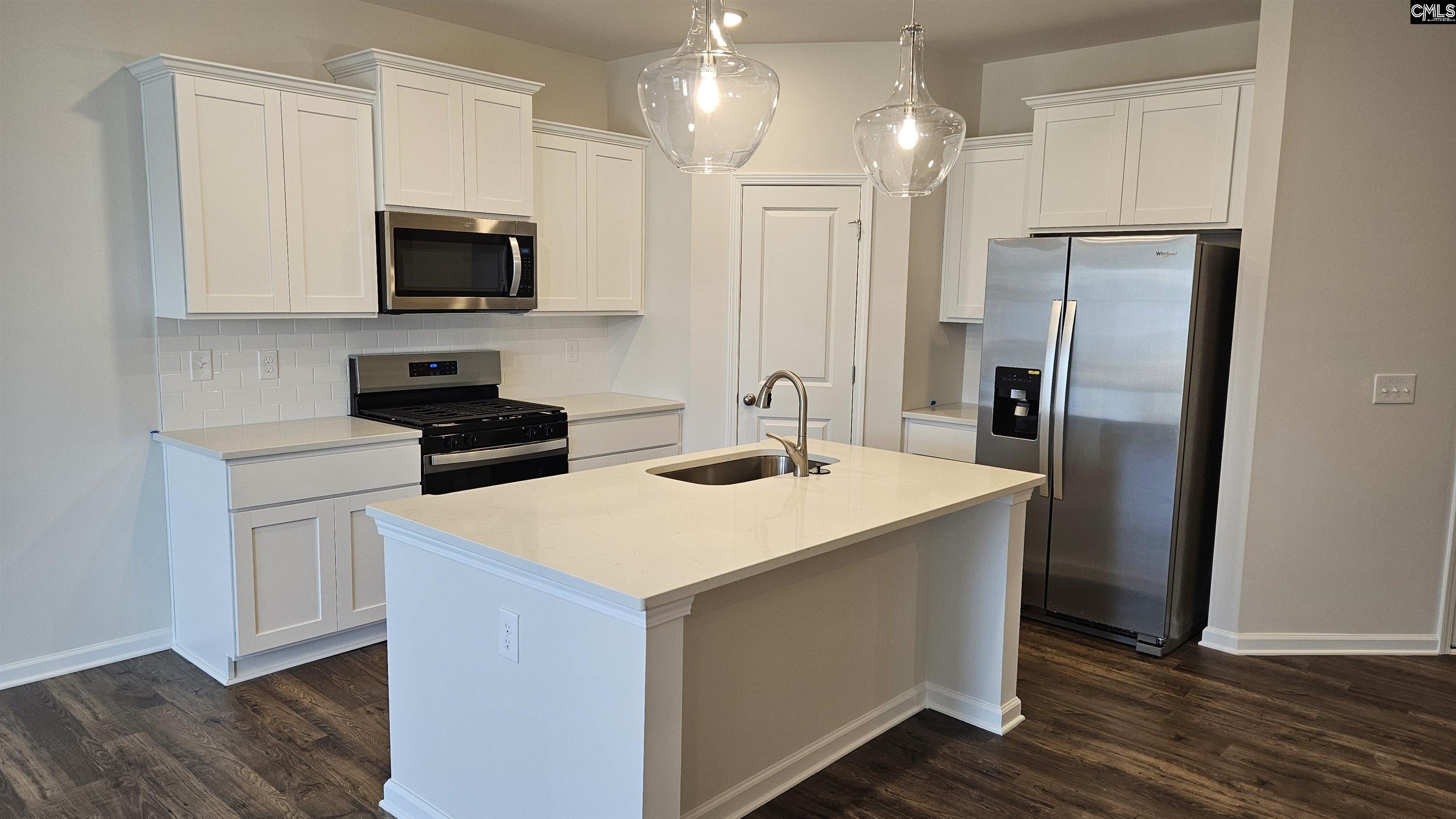Spare bedroom on main level with ensuite private full bathroom. Master bedroom & guest bedrooms on second floor just off loft area. Tiled laundry room on 2nd floor next to master bedroom. Master bedroom is uniquely large in this plan. Master bathroom has tiled flooring, white shaker cabinets, quartz countertops. Ceiling fans in master bedroom & great room. Kitchen incl. LG stainless steel fridge, dishwasher, disposal, built in microwave & gas cooking stove. White shaker cabinets, quartz countertops, tiled backsplash & undermount sink with pull out faucet in kitchen. Recessed can lighting in kitchen. Tons of countertop space with overhang for additional seating. Woodgrain laminate flooring in entry, powder bath, hall, eat in area, kitchen & great room. Nine-foot ceilings on first floor. Garage area is fully painted with garage door opener. Architectural shingles with full gutters. Driveway is double wide that can fit up to 4 cars. Back yard has 100 sq ft patio along with 8-foot-long white vinyl partitions & fully sodded back yard too. Carriage light above garage door & covered entrance way outside front door. Blinds on all heated windows. MOVE IN READY COMPLETED !! Disclaimer: CMLS has not reviewed and, therefore, does not endorse vendors who may appear in listings.