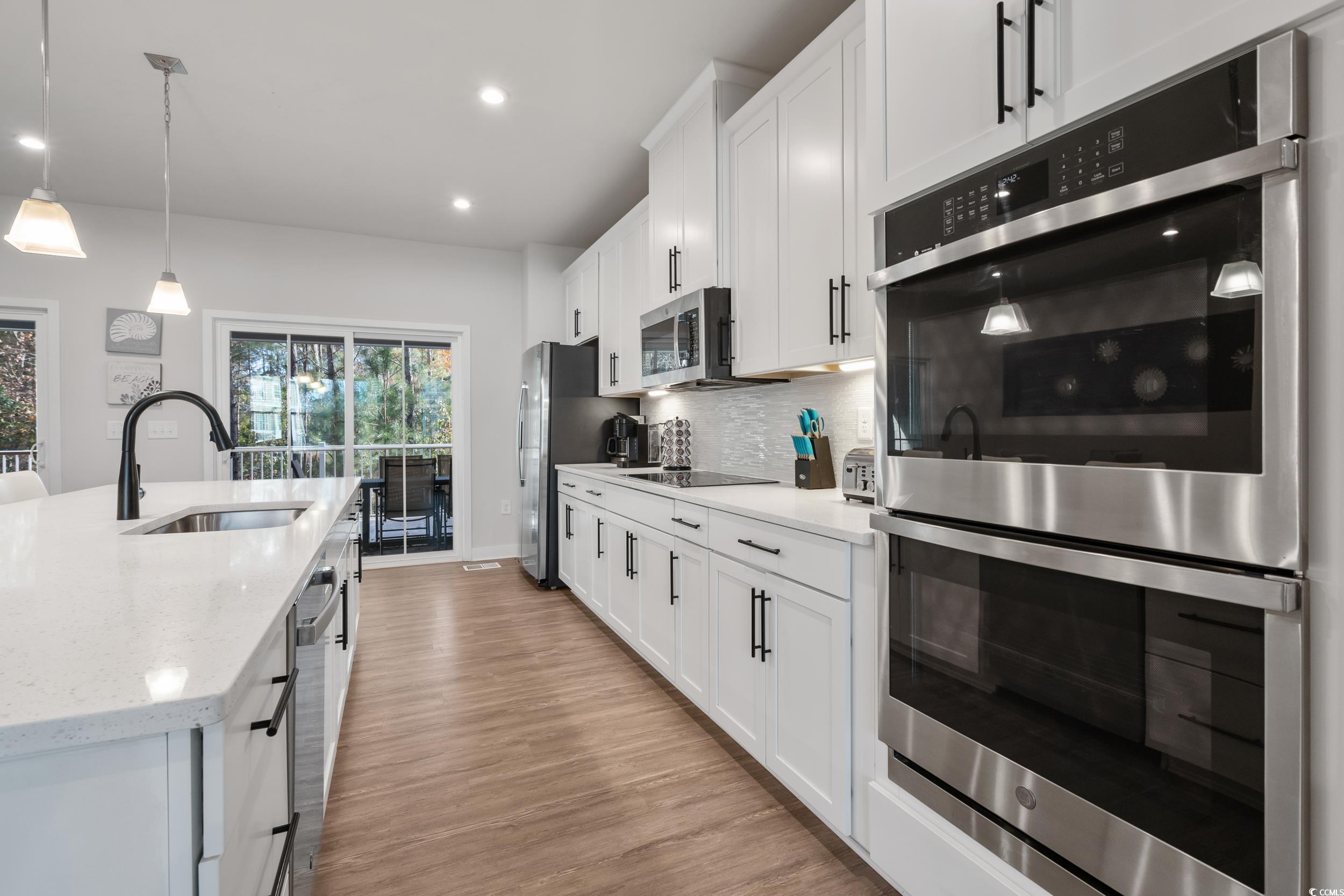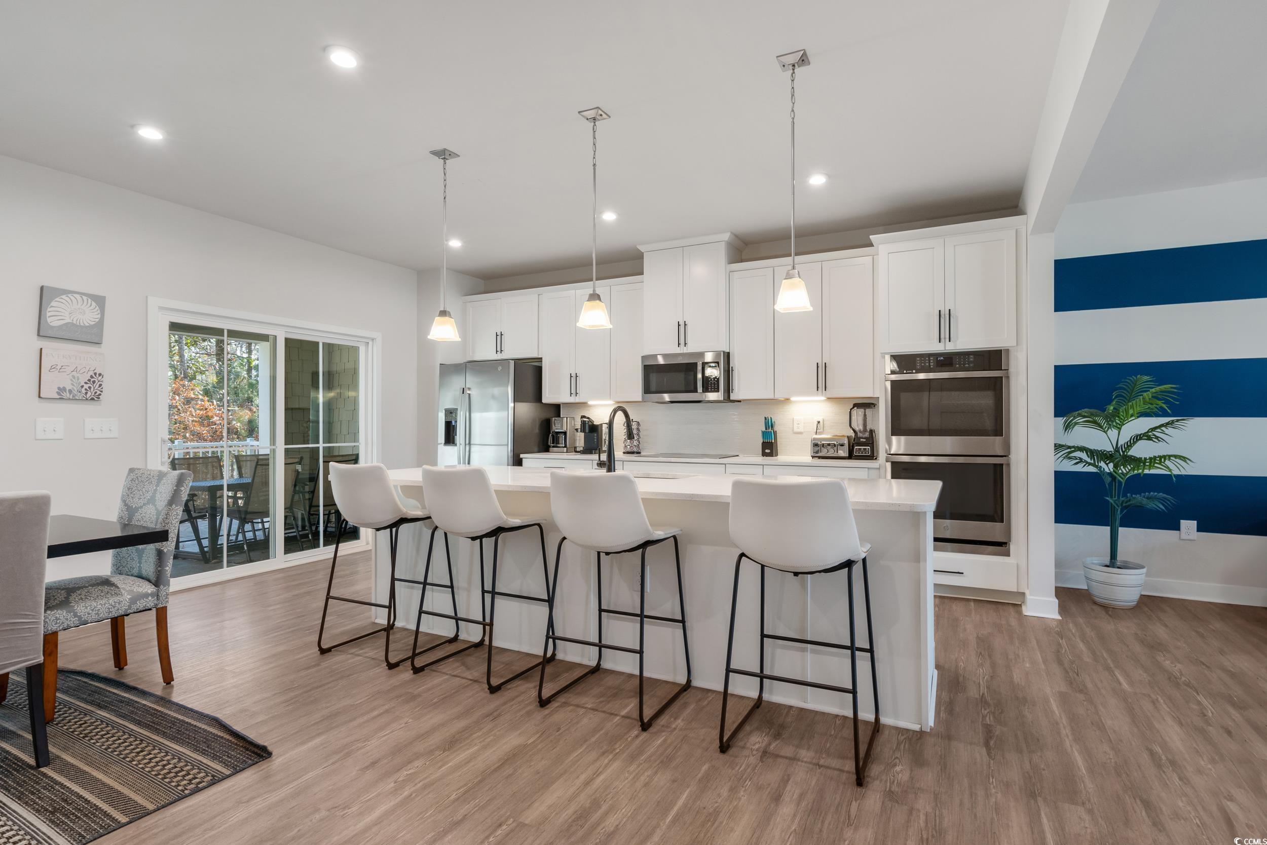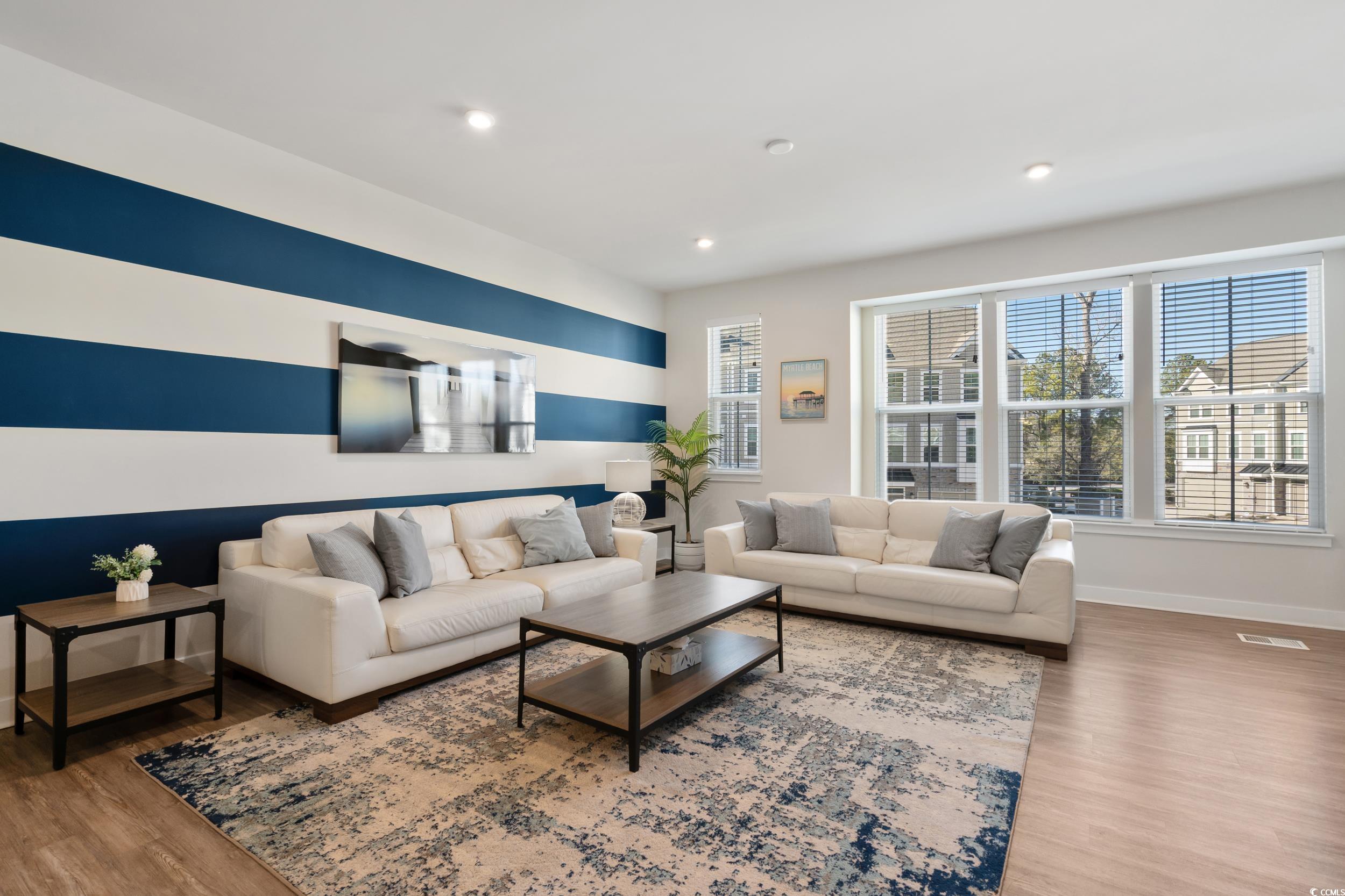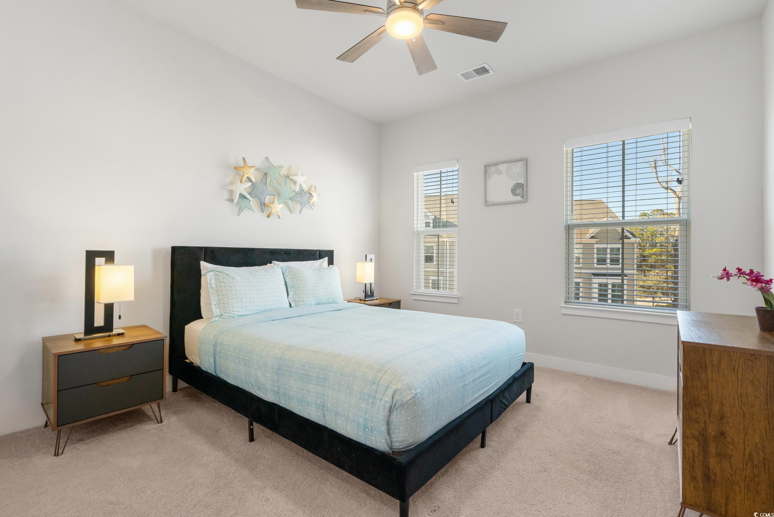 Welcome to the Dye Estates Townhomes, a prestigious gated community located in the Barefoot Resort area in North Myrtle Beach. This 4 bedroom, 3.5 bathroom townhome style condo with bonus room is perfect for a primary residence or second home. This unit also comes completely furnished with modern furniture and decor, just bring your suitcase and golf clubs! This condo is ideally positioned right next to the Dye Golf Course, allowing golf enthusiasts to enjoy convenient access to their favorite pastime. Imagine the convenience of taking your personal golf cart and cruising to the course within minutes. Inside, the unit provides ample space and comfort for everyone, with over 2600 heated sq ft of living area. The open floor plan of the main living area seamlessly combines the living room, kitchen, and dining area, offering plenty space for group gatherings, and a conveniently located half bathroom. The kitchen features modern white cabinets with black hardware, stainless steel appliances, a double wall oven, and a beautiful tile backsplash. Off of the kitchen you will have access to an oversized private balcony facing the lush landscaping, with room for an outdoor dining area and lounge space. The top floor of this home encompasses the primary suite along with two additional bedrooms, a full bathroom with dual vanity sinks, a tiled tub/shower combo, and a laundry room with full size washer and dryer. The primary suite features a large walk-in closet, and a spacious en suite bathroom with dual vanity sinks, tile shower and separate water closet. The lower level of this home includes a bonus room that could function as a fourth bedroom, and includes two sleeper sofas, a pool table, and a full bathroom with tile shower. This room also has access to a screened in porch at the rear of the home leading to outdoor space that backs up to trees. This unit also comes with a 2 car garage perfect for storing a golf cart, and a driveway for additional parking. As an owner in Barefoot Resort, you will have access to a beautiful oceanfront cabana and a swimming pool located nearby. This condo is perfectly situated to explore North Myrtle Beach’s best attractions including the beautiful Atlantic Ocean, Barefoot Landing, shopping, dining and entertainment. Short Term Rentals Welcome! Schedule your tour today!