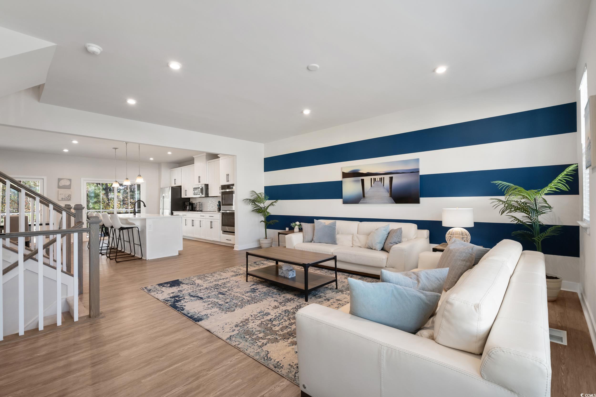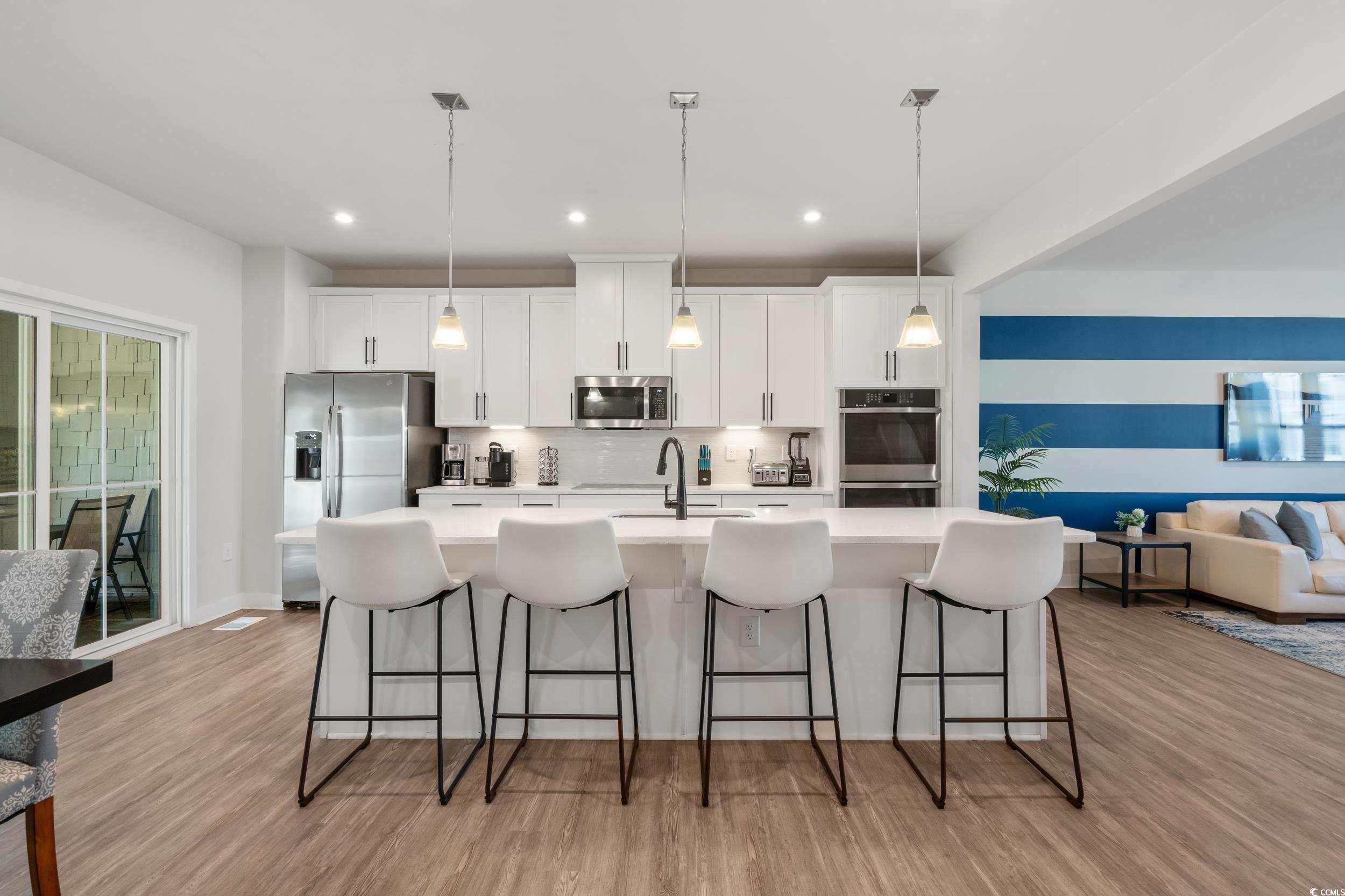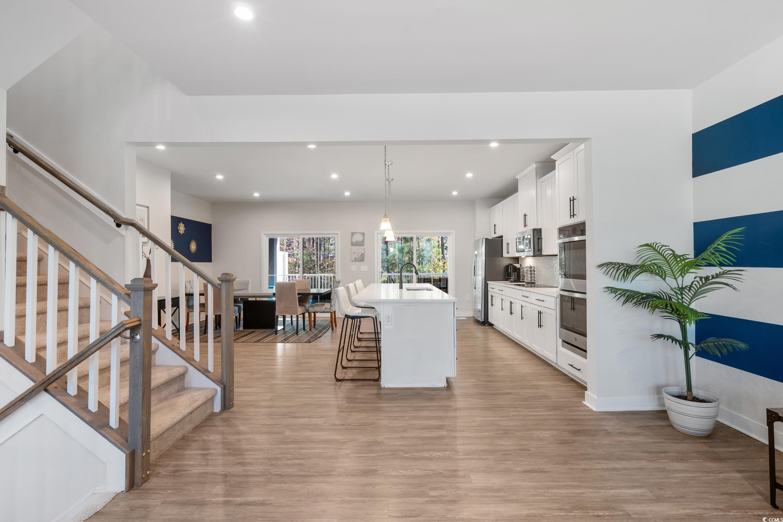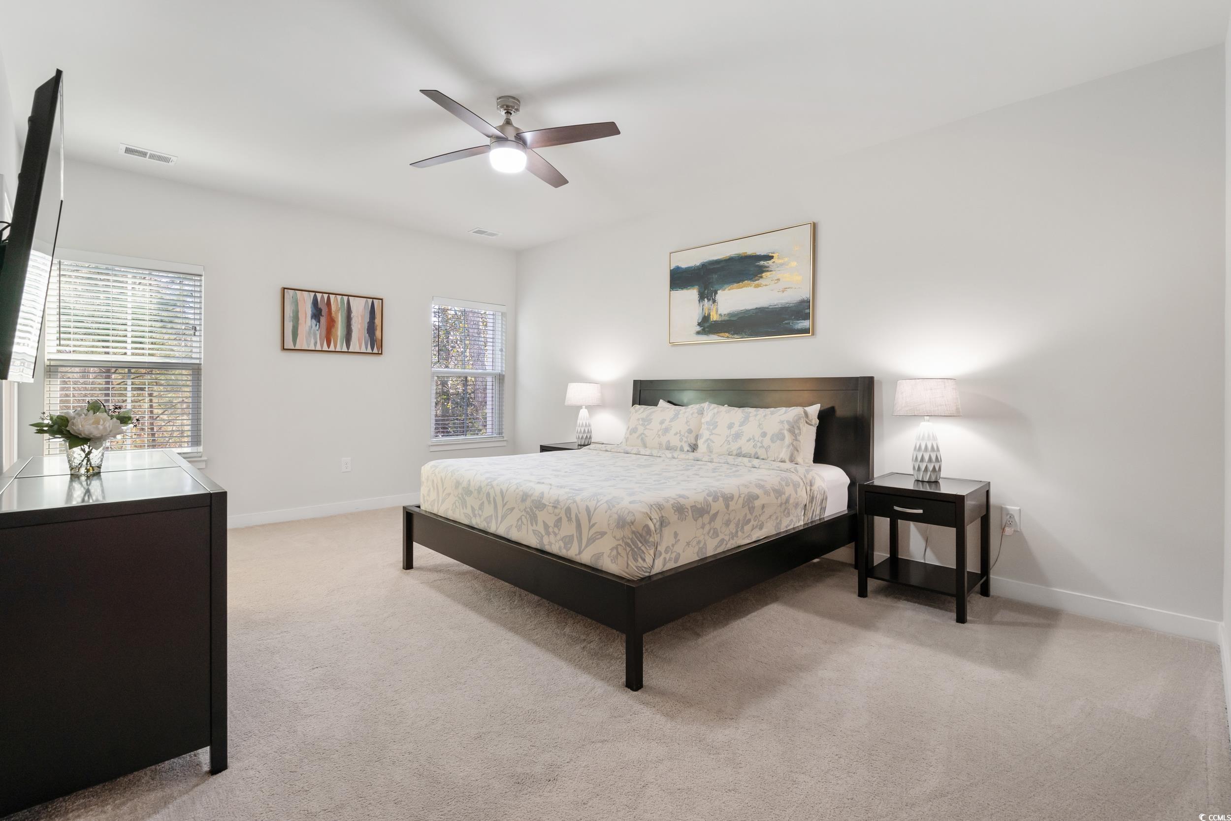 Welcome to the Dye Estates Townhomes, a prestigious gated community located in the Barefoot Resort area in North Myrtle Beach. This 4 bedroom, 3.5 bathroom townhome style condo with bonus room is perfect for a primary residence or second home. This unit also comes completely furnished with modern furniture and decor, just bring your suitcase and golf clubs! This condo is ideally positioned right next to the Dye Golf Course, allowing golf enthusiasts to enjoy convenient access to their favorite pastime. Imagine the convenience of taking your personal golf cart and cruising to the course within minutes. Inside, the unit provides ample space and comfort for everyone, with over 2600 heated sq ft of living area. The open floor plan of the main living area seamlessly combines the living room, kitchen, and dining area, offering plenty space for group gatherings, and a conveniently located half bathroom. The kitchen features modern white cabinets with black hardware, stainless steel appliances, a double wall oven, and a beautiful tile backsplash. Off of the kitchen you will have access to an oversized private balcony facing the lush landscaping, with room for an outdoor dining area and lounge space. The top floor of this home encompasses the primary suite along with two additional bedrooms, a full bathroom with dual vanity sinks, a tiled tub/shower combo, and a laundry room with full size washer and dryer. The primary suite features a large walk-in closet, and a spacious en suite bathroom with dual vanity sinks, tile shower and separate water closet. The lower level of this home includes a bonus room that could function as a fourth bedroom, and includes two sleeper sofas, a pool table, and a full bathroom with tile shower. This room also has access to a screened in porch at the rear of the home leading to outdoor space that backs up to trees. This unit also comes with a 2 car garage perfect for storing a golf cart, and a driveway for additional parking. As an owner in Barefoot Resort, you will have access to a beautiful oceanfront cabana and a swimming pool located nearby. This condo is perfectly situated to explore North Myrtle Beach’s best attractions including the beautiful Atlantic Ocean, Barefoot Landing, shopping, dining and entertainment. Short Term Rentals Welcome! Schedule your tour today!
