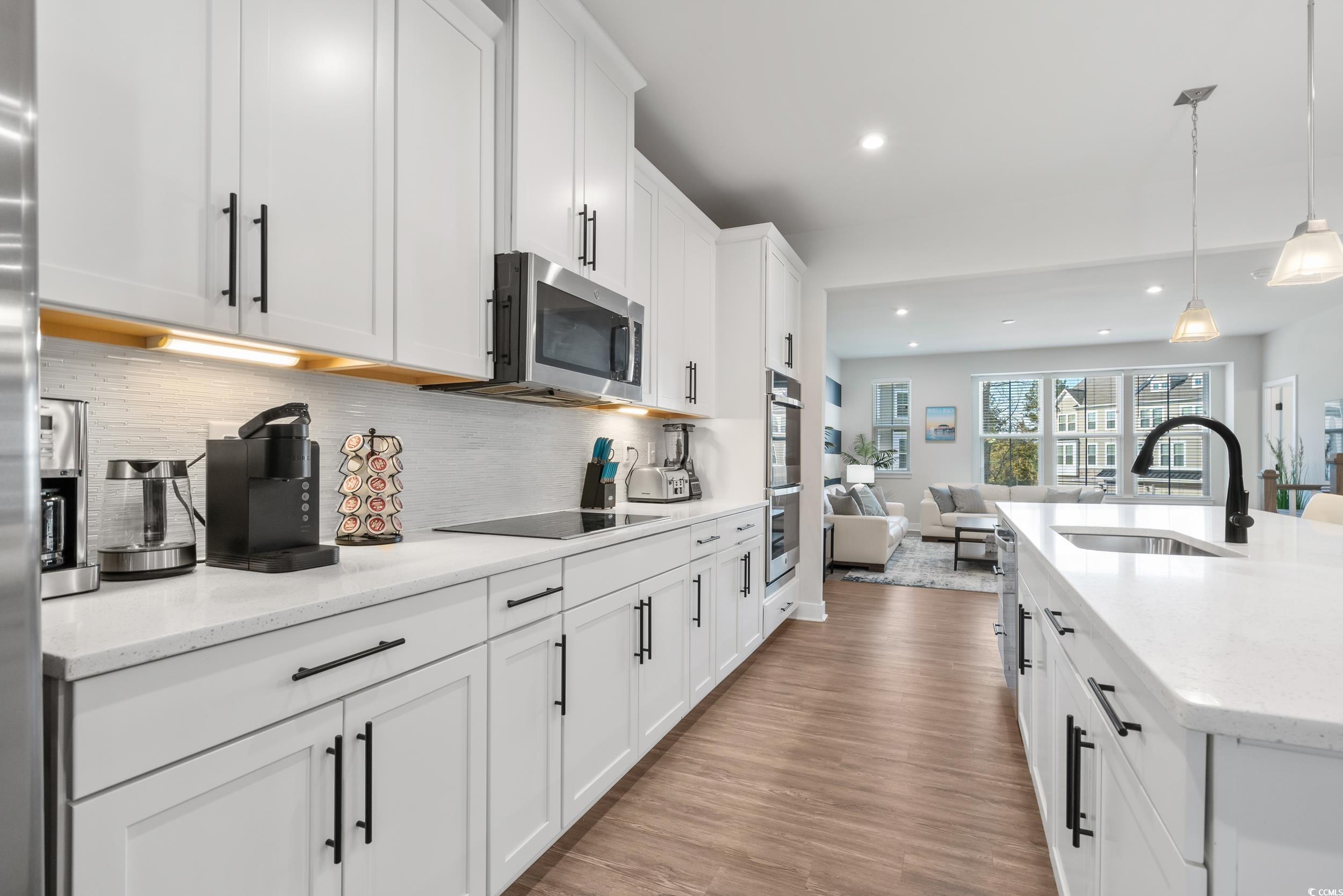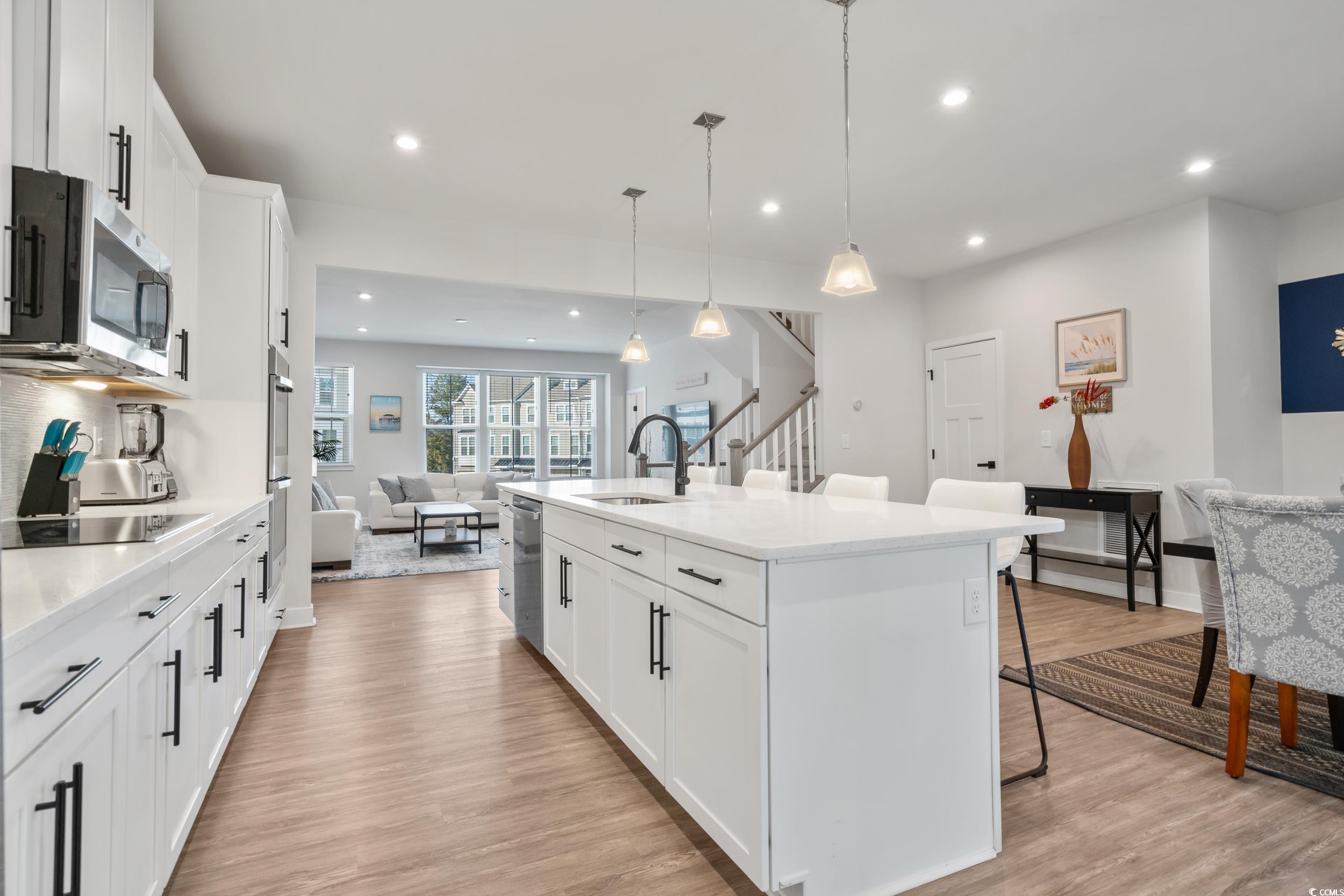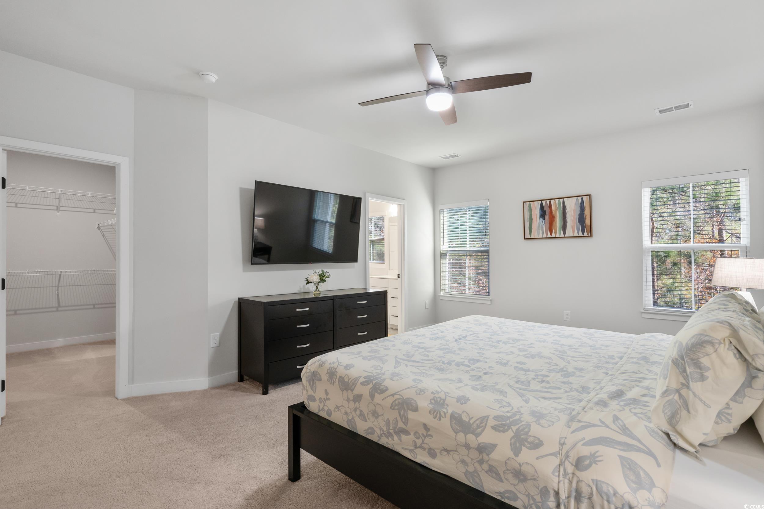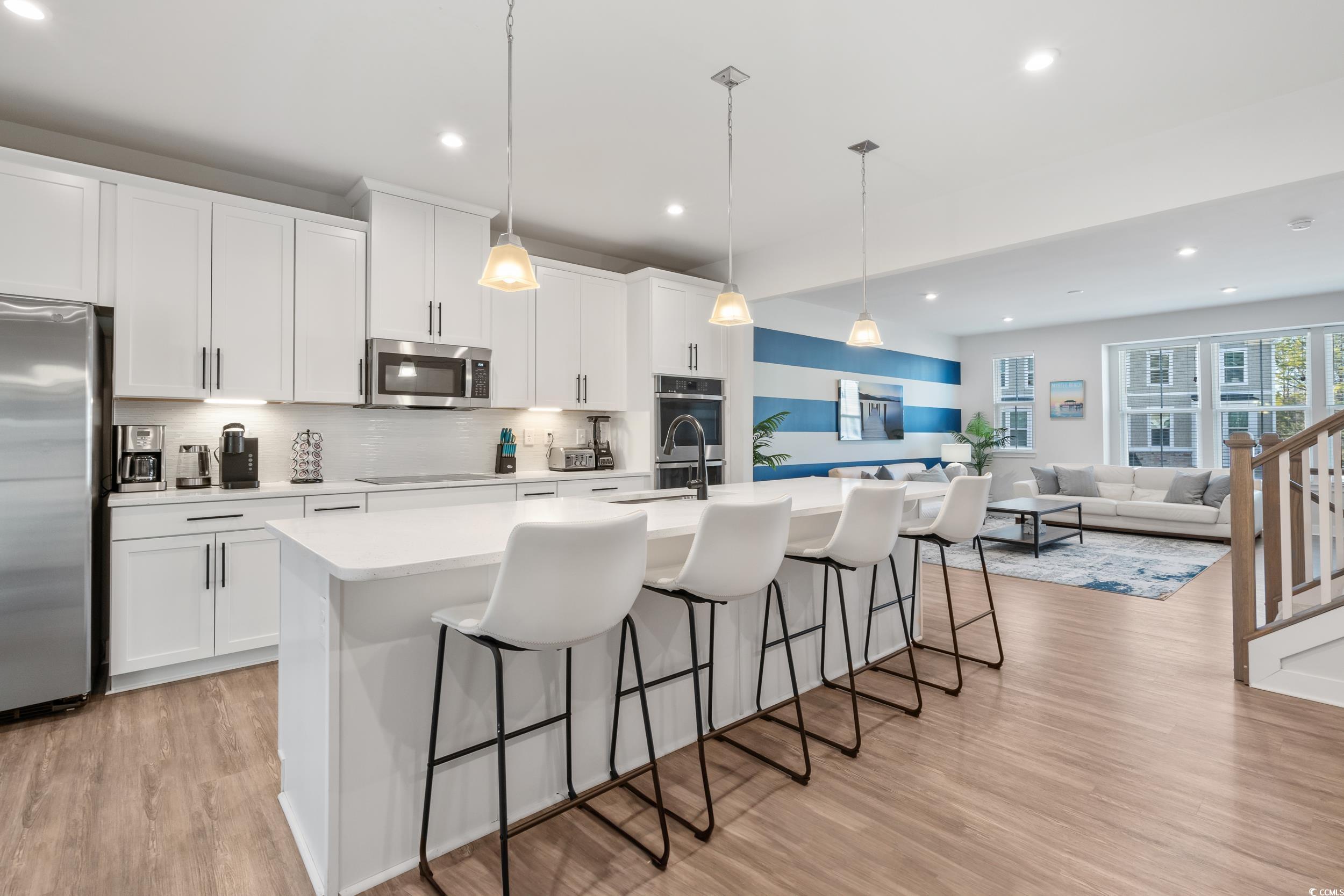 Welcome to the Dye Estates Townhomes, a prestigious gated community located in the Barefoot Resort area in North Myrtle Beach. This 4 bedroom, 3.5 bathroom townhome style condo with bonus room is perfect for a primary residence or second home. This unit also comes completely furnished with modern furniture and decor, just bring your suitcase and golf clubs! This condo is ideally positioned right next to the Dye Golf Course, allowing golf enthusiasts to enjoy convenient access to their favorite pastime. Imagine the convenience of taking your personal golf cart and cruising to the course within minutes. Inside, the unit provides ample space and comfort for everyone, with over 2600 heated sq ft of living area. The open floor plan of the main living area seamlessly combines the living room, kitchen, and dining area, offering plenty space for group gatherings, and a conveniently located half bathroom. The kitchen features modern white cabinets with black hardware, stainless steel appliances, a double wall oven, and a beautiful tile backsplash. Off of the kitchen you will have access to an oversized private balcony facing the lush landscaping, with room for an outdoor dining area and lounge space. The top floor of this home encompasses the primary suite along with two additional bedrooms, a full bathroom with dual vanity sinks, a tiled tub/shower combo, and a laundry room with full size washer and dryer. The primary suite features a large walk-in closet, and a spacious en suite bathroom with dual vanity sinks, tile shower and separate water closet. The lower level of this home includes a bonus room that could function as a fourth bedroom, and includes two sleeper sofas, a pool table, and a full bathroom with tile shower. This room also has access to a screened in porch at the rear of the home leading to outdoor space that backs up to trees. This unit also comes with a 2 car garage perfect for storing a golf cart, and a driveway for additional parking. As an owner in Barefoot Resort, you will have access to a beautiful oceanfront cabana and a swimming pool located nearby. This condo is perfectly situated to explore North Myrtle Beach’s best attractions including the beautiful Atlantic Ocean, Barefoot Landing, shopping, dining and entertainment. Short Term Rentals Welcome! Schedule your tour today!