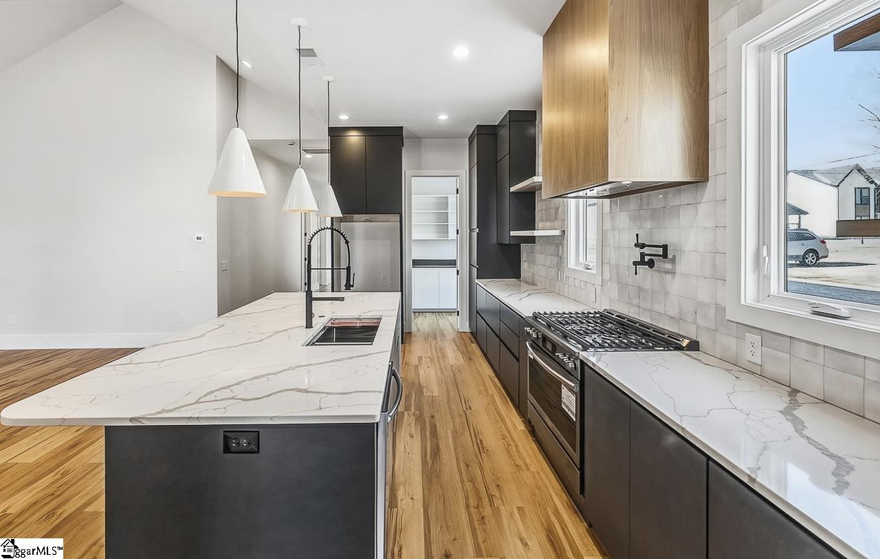Welcome to 256 Beacon Street! Located only minutes from Downtown Greenville, the shops and dining of Augusta Road, and less than 5 minutes from Greenville Memorial Hospital. A beautifully crafted new construction home offering 3 bedrooms and 2.5 bathrooms, designed with luxury, functionality, and entertaining in mind. A detached 2-car garage (currently under construction) features approximately 500 sqft of living space above equipped with fully functional kitchenette, full bathroom, and laundry hook-ups. Making it ideal for income-producing potential, a private in-law suite, private office, or home gym. This home showcases a chef’s dream of a kitchen complete with quartz countertops, a large island with extra storage, stainless steel appliances, a 36" Frigidaire Gallery gas range with custom hood, custom cabinetry locally made, and a spacious walk-in pantry with abundant storage. The expansive living room features a gas log fireplace and flows seamlessly into the entertaining areas, including a wet bar with sink and wine refrigerator. Perfect for hosting guests. The master bedroom on the main floor offers a spa-like retreat with dual vanities, a garden tub, and a walk-in shower. Upstairs you’ll find two additional bedrooms connected by a Jack and Jill bathroom. All closets throughout the home include custom closet systems for maximum organization. Step outside to the covered back porch with a wood-burning fireplace. Sit back and relax, entertain, or enjoy game day by the fire. Come see this beautiful new construction home today!