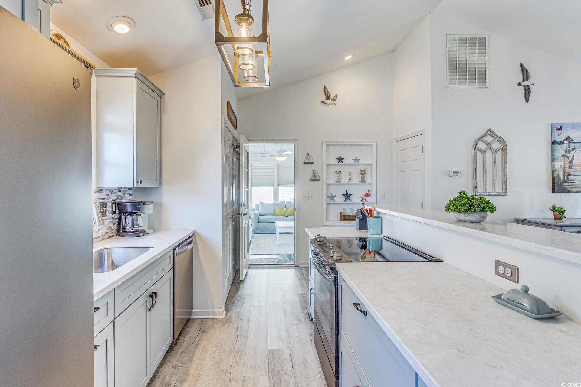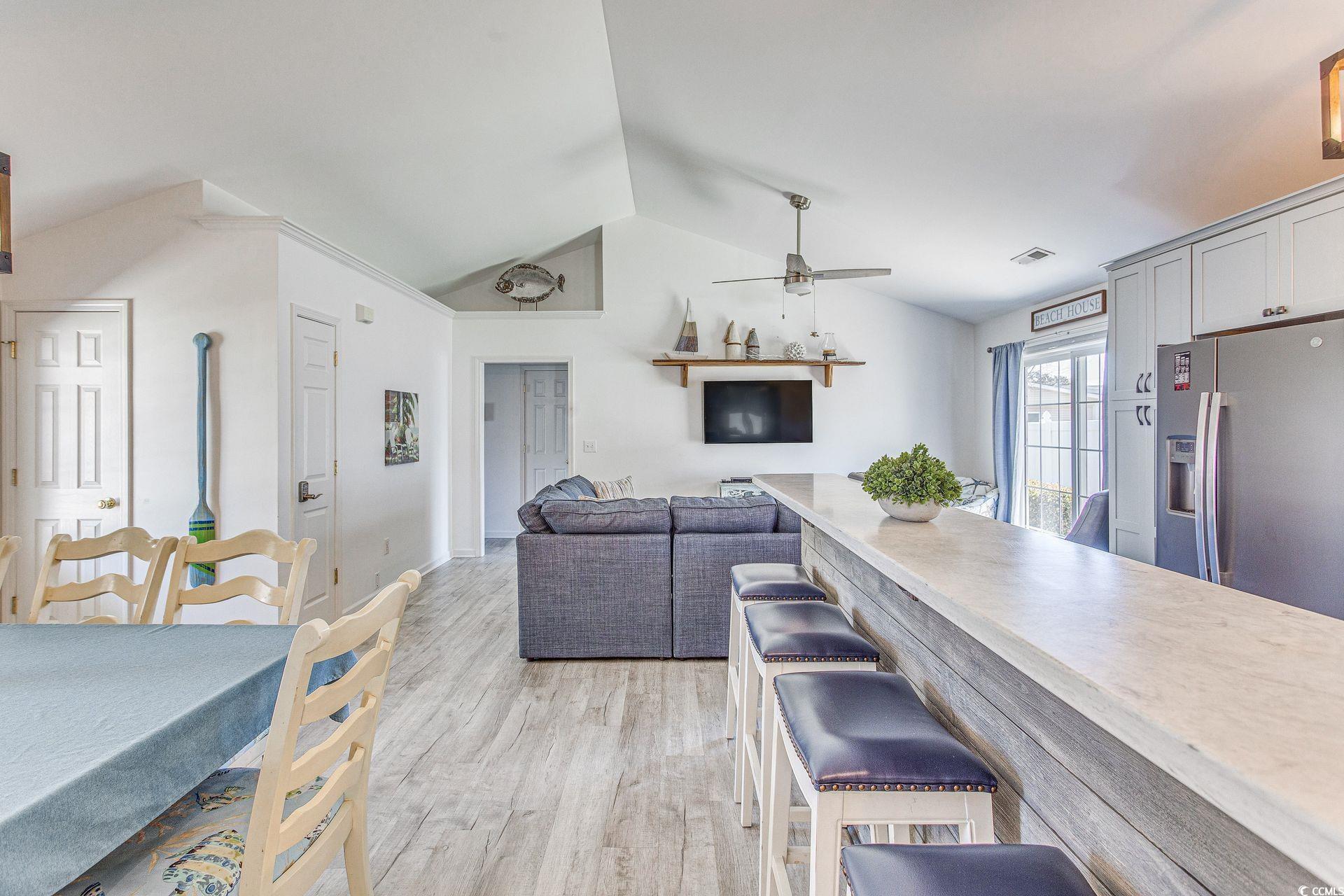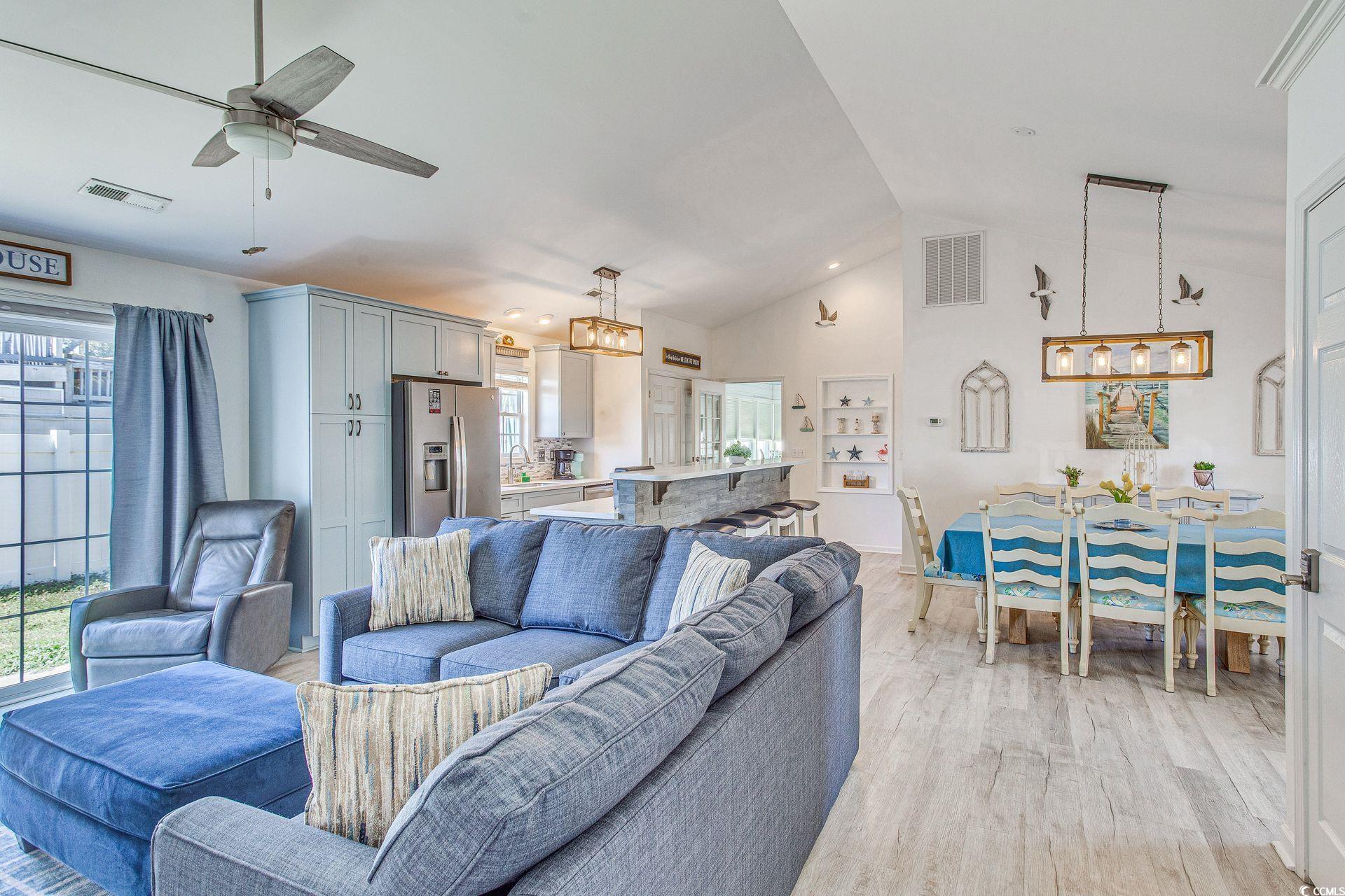 Welcome to your slice of paradise! Nestled in a gated community and just a stone’s throw from the beach, this beautifully updated 3 bed, 2 bath house is more than just a home—it’s a lifestyle. Whether you're searching for a permanent residence or a lucrative rental property, this stunning abode checks all the boxes. Step inside and be greeted by an expansive open concept that seamlessly flows into the living, dining and kitchen spaces. This layout is perfect for entertaining friends and family or enjoying a cozy night in. The heart of the home boasts soft-close cabinets, solid surface countertops, and smudge-proof stainless-steel appliances that combine style and functionality. Imagine hosting dinner parties or enjoying casual meals at the inviting eat-in bar. Experience true tranquility in the stunning Carolina room adorned with a charming haint blue ceiling—a nod to Southern tradition and a perfect spot for sipping morning coffee or unwinding with an evening book. The shiplap accents create a cozy atmosphere, making this space a favorite for relaxation. The electric fireplace adds a touch of warmth and ambiance, ideal for those cooler evenings spent in good company. Step outside to discover well-designed landscaping, complete with landscape curbing that enhances the home’s curb appeal. Enjoy the coastal breeze from the comfort of your own outdoor area, perfect for summer barbecues or quiet nights under the stars. This property has a proven track record as a desirable rental, making it an exceptional investment or a place to call home. Its soft coastal décor creates an inviting atmosphere that guests can’t resist. Living in this gated community offers you peace of mind and a sense of security, while being just moments away from sandy shores. Don't miss out on your opportunity to own this captivating coastal retreat. Oceanside Village offers an array of amenities for everyone including indoor & outdoor pools, kids splash pad, hot tub, bark park, tennis, bocce, private beach front parking and much more.