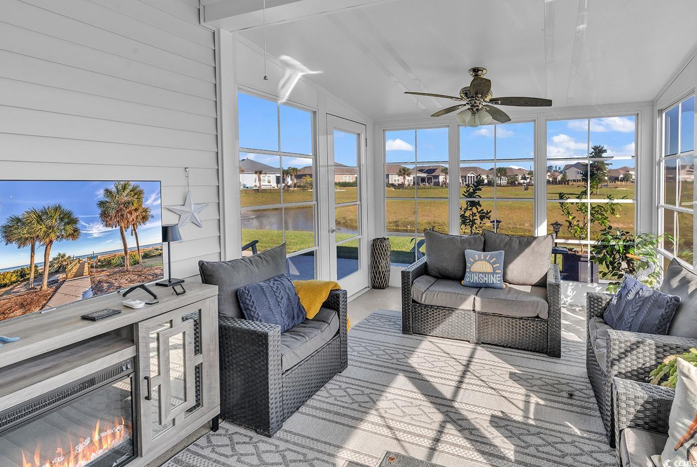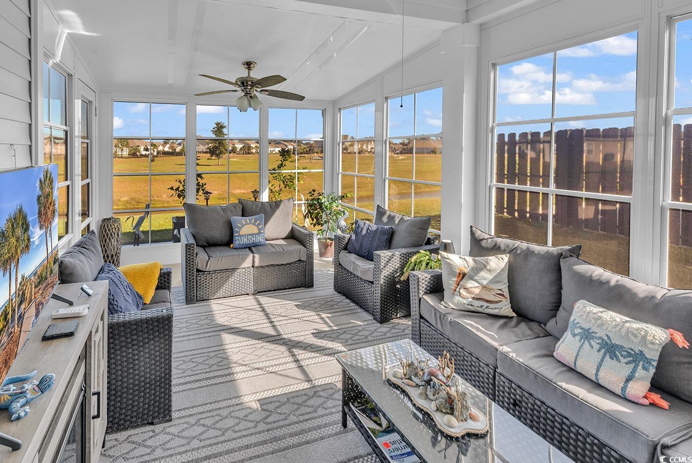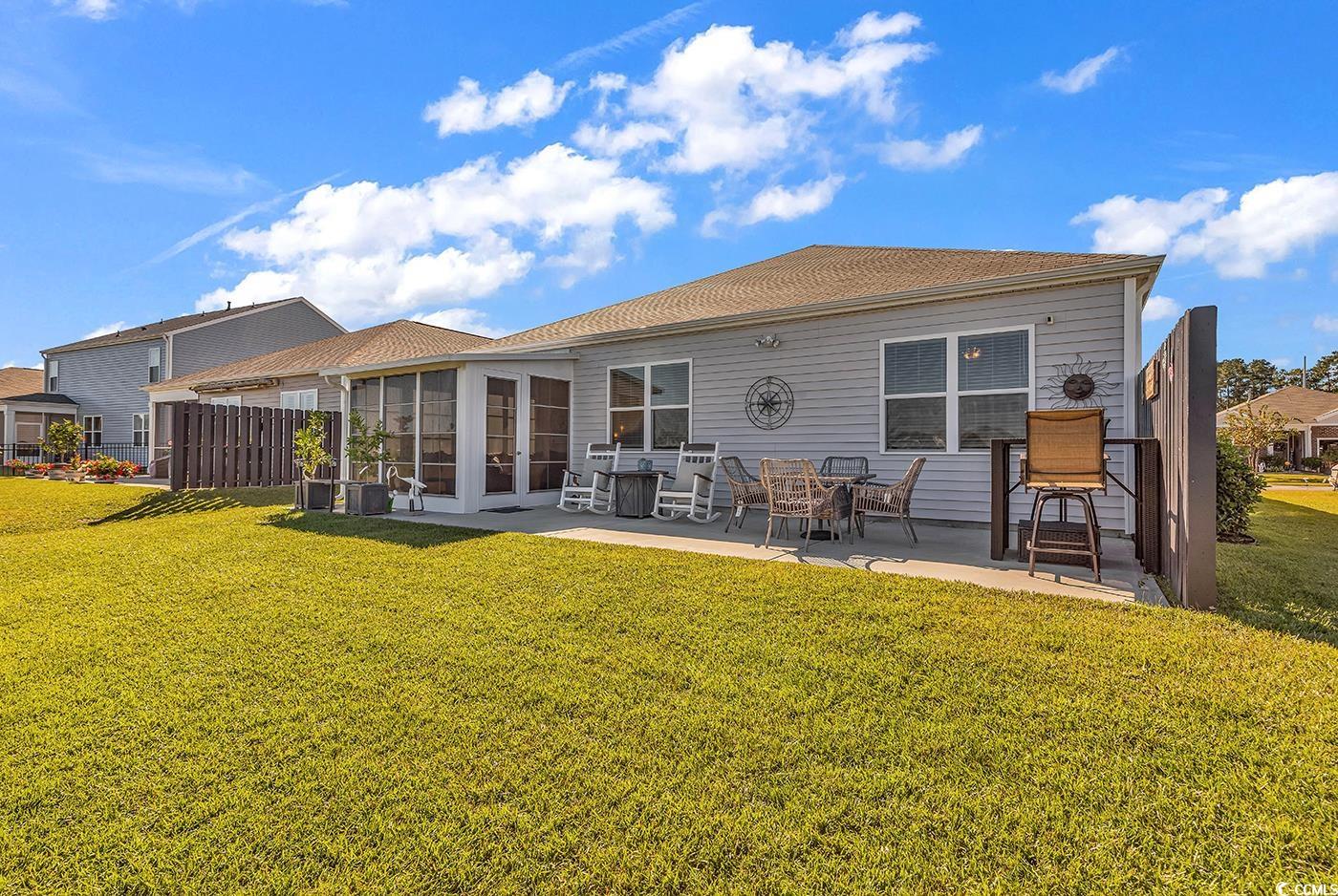 Welcome to this stunning 4-bedroom, 2-bath home located in the highly sought-after Market Common area of Myrtle Beach. This beautifully maintained home is being sold fully furnished, making it move-in ready from day one! Step inside to find an inviting open floor plan with premium finishes throughout. The kitchen features a tiled backsplash and plenty of counter space for cooking and entertaining. Enjoy relaxing in the bright Carolina room, or step outside to the enlarged back patio with a peaceful pond view — perfect for morning coffee or evening gatherings. The garage includes epoxy flooring and heavy-duty shelving, providing both style and functionality. Additional upgrades include gutters, an irrigation system, and natural gas service, adding value and convenience. Located just minutes from Market Common’s shops, dining, and entertainment — and only a short drive to the beach — this home offers the perfect blend of comfort, quality, and location.