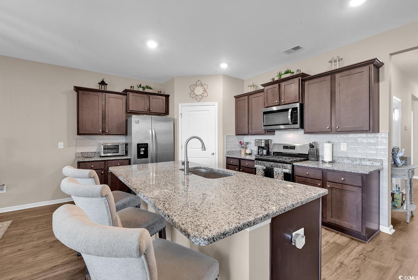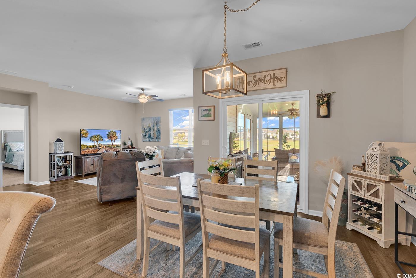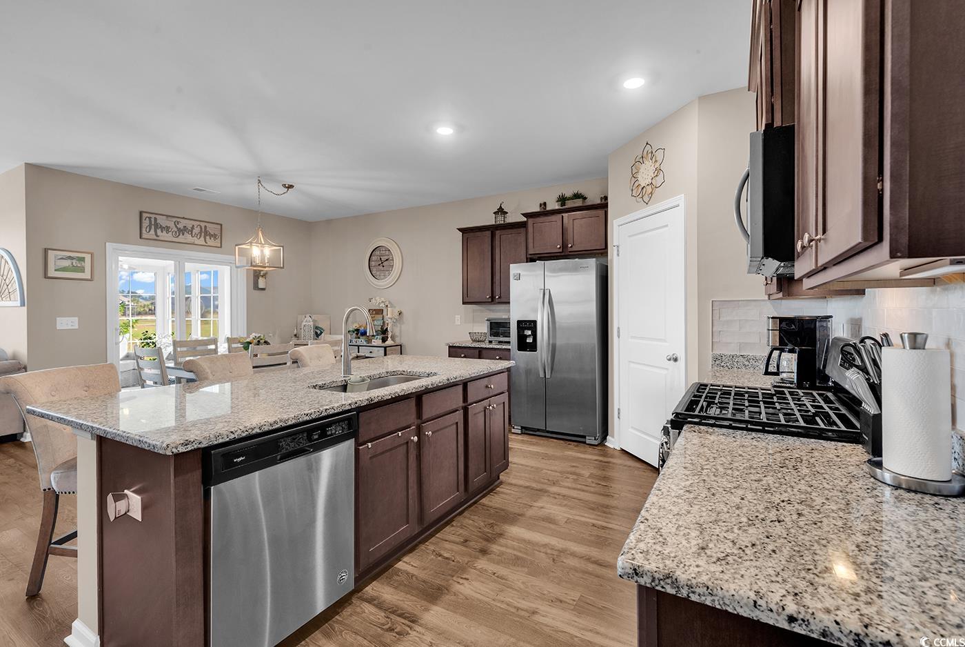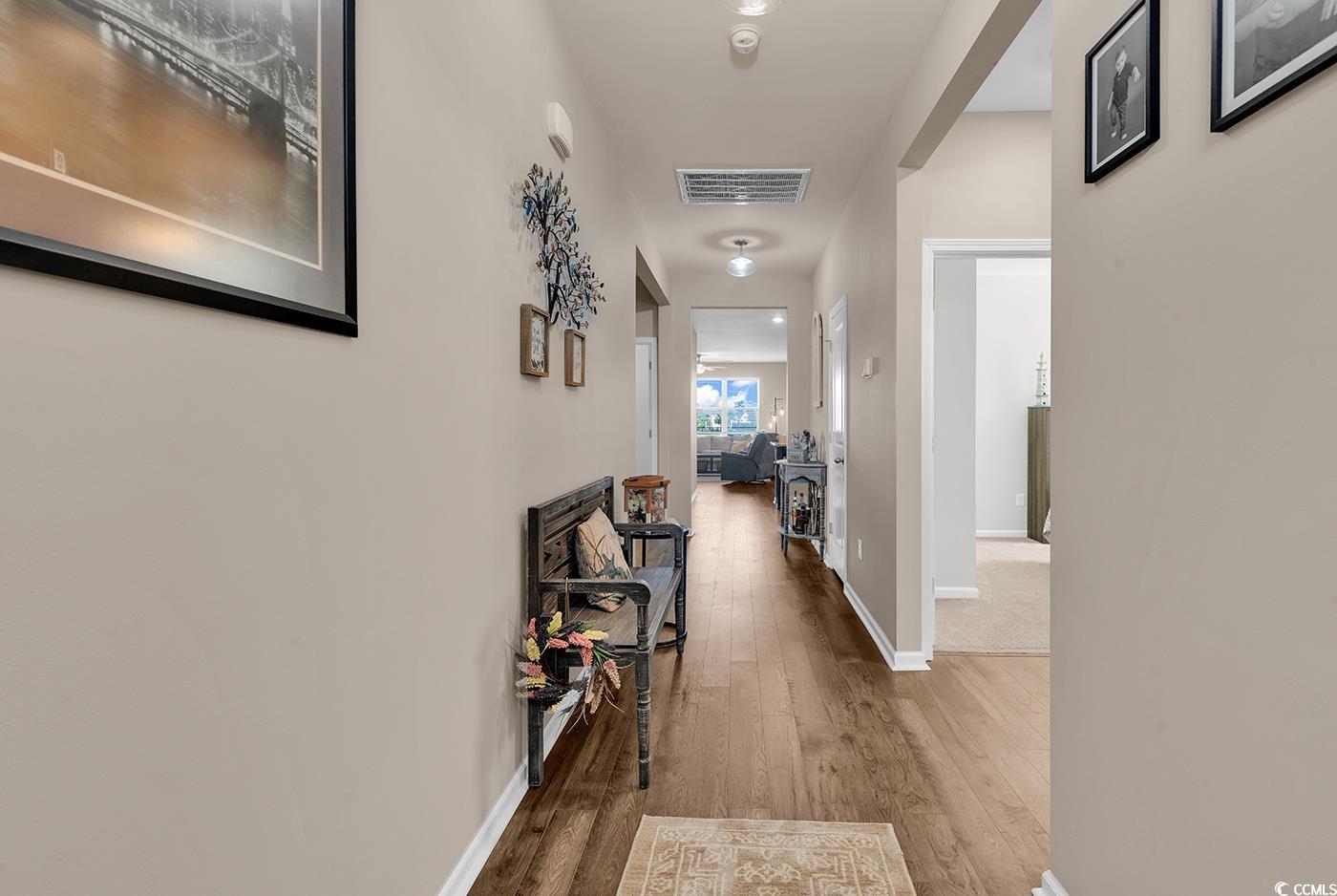 Welcome to this stunning 4-bedroom, 2-bath home located in the highly sought-after Market Common area of Myrtle Beach. This beautifully maintained home is being sold fully furnished, making it move-in ready from day one! Step inside to find an inviting open floor plan with premium finishes throughout. The kitchen features a tiled backsplash and plenty of counter space for cooking and entertaining. Enjoy relaxing in the bright Carolina room, or step outside to the enlarged back patio with a peaceful pond view — perfect for morning coffee or evening gatherings. The garage includes epoxy flooring and heavy-duty shelving, providing both style and functionality. Additional upgrades include gutters, an irrigation system, and natural gas service, adding value and convenience. Located just minutes from Market Common’s shops, dining, and entertainment — and only a short drive to the beach — this home offers the perfect blend of comfort, quality, and location.