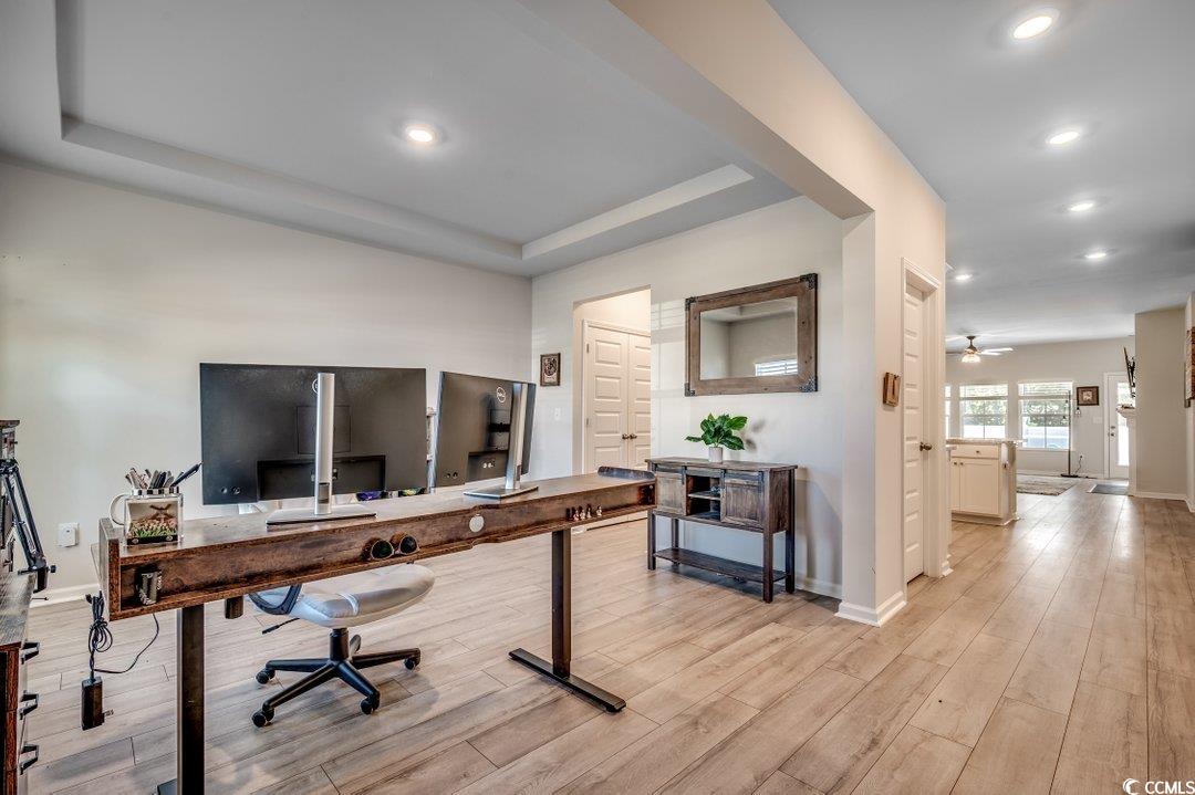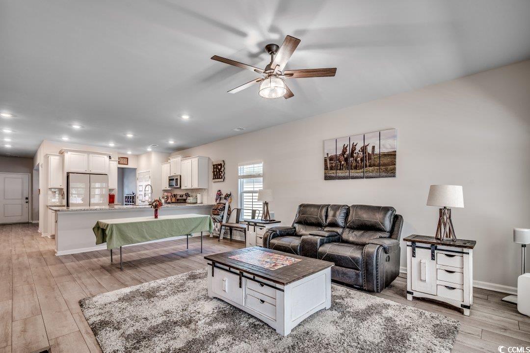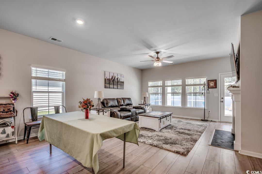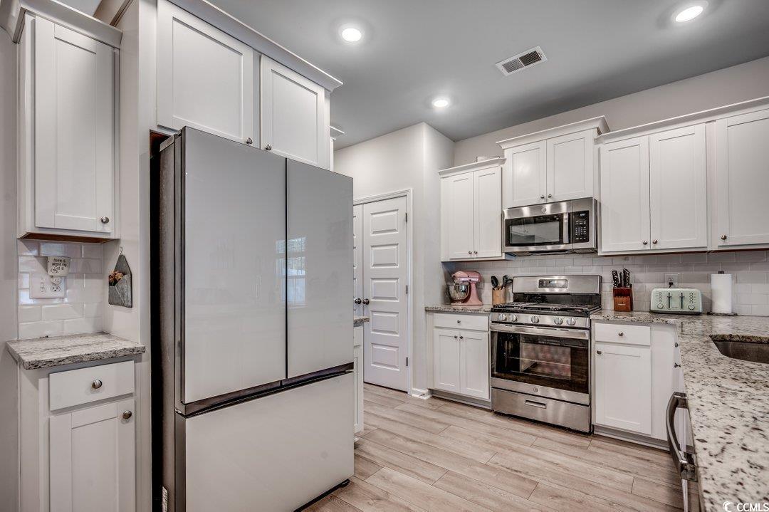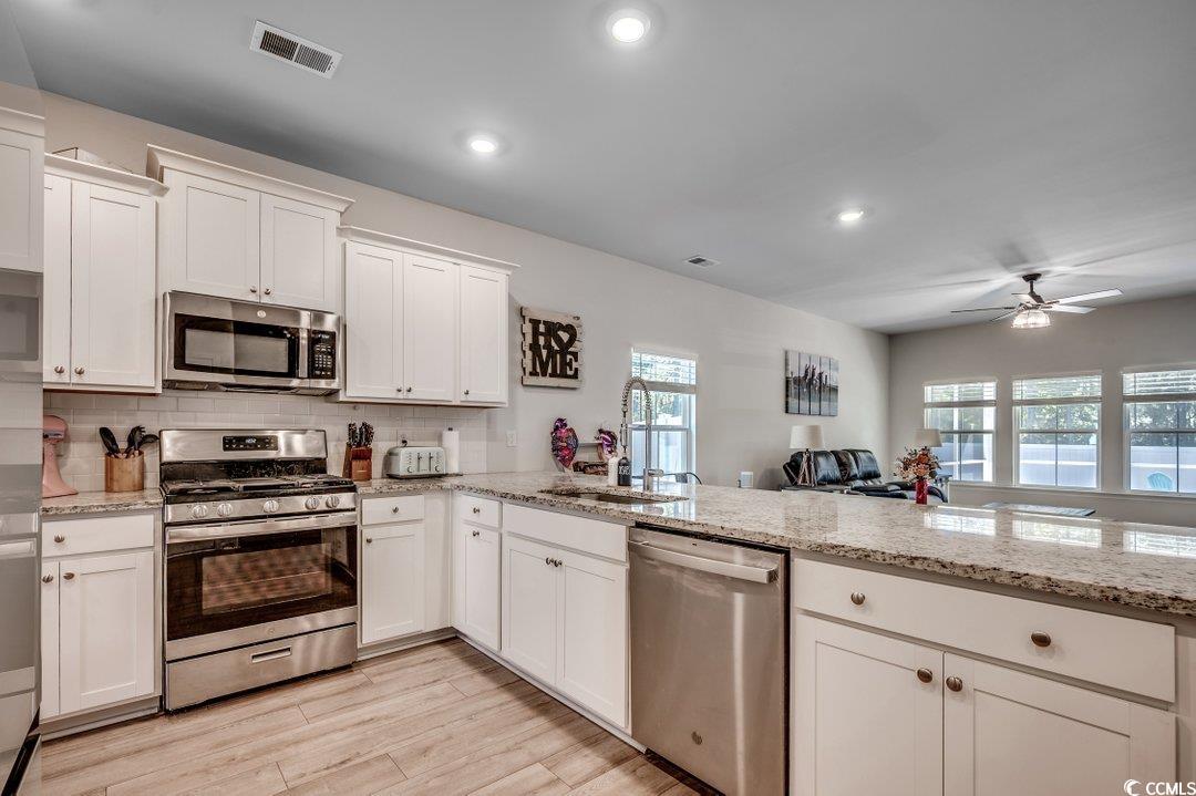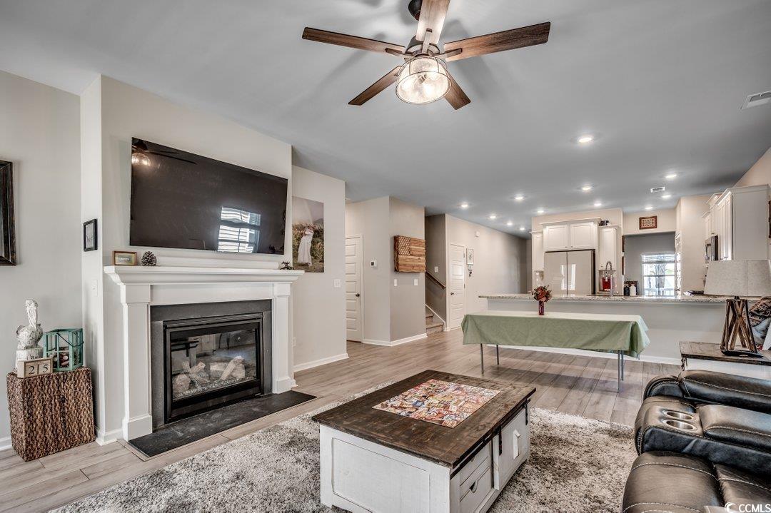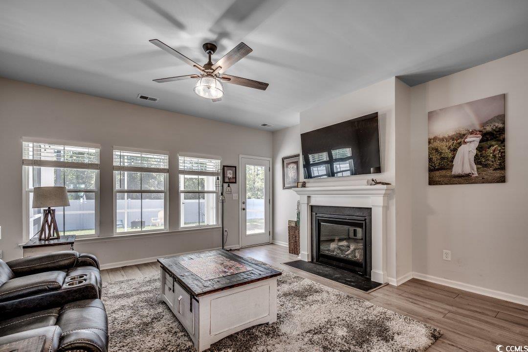 Built in 2023, this turnkey 5-bedroom, 3.5-bath Lennar Kensington model offers modern finishes and thoughtful upgrades in the highly desirable Carolina Forest area of Myrtle Beach. With 2,449 heated sq. ft. of living space, this natural gas home features granite countertops, a gas range, gas fireplace, and custom blinds throughout. The open-concept main level includes the primary suite, offering comfort and privacy on the first floor. Upstairs, you'll find a spacious 19' x 14' bonus room with ensuite bathroom and upgraded Luxury Vinyl Plank (LVP) flooring replacing carpet in three bedrooms. Enjoy outdoor living on the screened-in back porch overlooking a private wooded preserve with a PVC privacy fence. Exterior upgrades include enhanced landscaping with palm trees, landscape curbing, and decorative white rock accents for exceptional curb appeal. Unbeatable location - walking distance to BJ?s Wholesale and several restaurants and across from Tanger Outlets, minutes to shopping, dining, award-winning schools, golf courses, and the beach. Community amenities include a pool and garden area, ideal for low-maintenance coastal living.