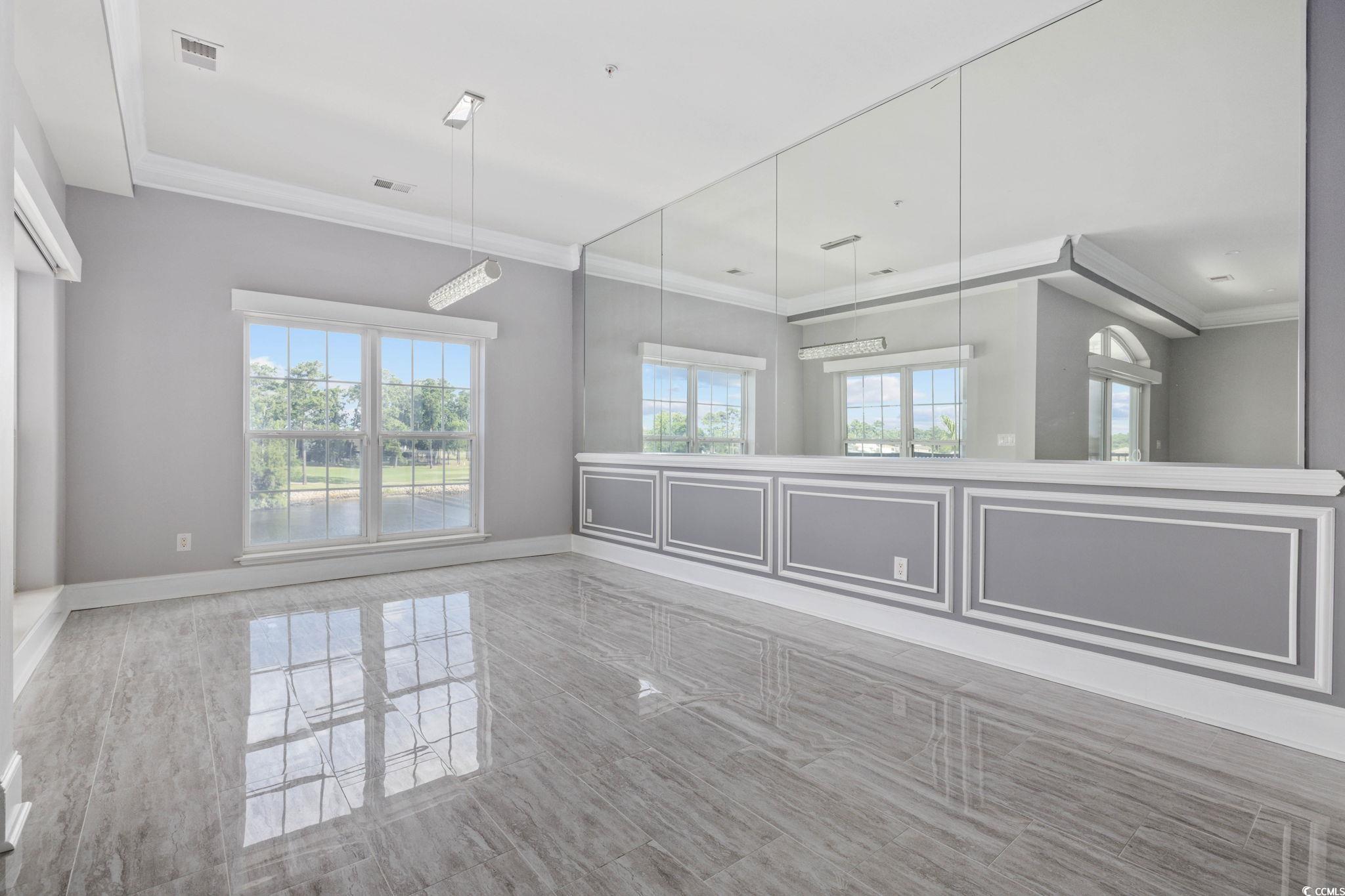 Welcome to timeless class and luxury living in Lauderdale Bay. This 4-bedroom, 3-bath second-floor condo in a gated Intracoastal Waterway community offers elegance, space, and top-tier upgrades. Inside you'll find plantation shutters and easy maintenance ceramic tile flooring throughout. In nearly every room and hallway there are chandeliers and crown molding, this home impresses at every turn. The entryway features tray ceilings and wainscoting, setting the tone for the simply amazing open-concept layout. The living room oversees views of boats and jet skis cruising the waterway and opens to sliding glass doors on the oversized balcony. Also in the living room is a TV mount, and hidden sunshades which are also in the mirrored dining room. The kitchen boasts high and low cabinetry, granite countertops, stainless steel appliances, and a walk-in pantry. The primary suite is a true retreat with coffered/mirrored ceilings, sliding glass doors that exit to the balcony, and dual custom walk-in closets. Unwind in the ensuite spa bathroom with dual vessel sinks, a third vanity, a walk-in multi jet tiled shower, and separate toilet area. The second master bedroom has an ensuite bathroom with a tiled shower and glass doors, as well as granite countertops and a closet. Two of the additional bedrooms feature wall mounted TVs. The third full bath also offers a tiled shower with glass doors, a closet, and granite countertops. Smart home features include a Nest thermostat, keyless entry, and bedroom smart switches. A large laundry room includes a sink, cabinetry, washer dryer hook ups and closet space. From the oversized balcony, enjoy views of the community pool, boat slips on the waterway, and walking trails—the perfect place for sunrise coffee or sunset cocktails. Enjoy designated parking spaces directly beneath the building, plus a secure storage unit enclosed with chain-link fencing—perfect for beach gear or seasonal items. There's also ample space for boat parking and a community trash compactor, keeping the area clean and well-maintained. Minutes from Myrtle Beach Airport, Broadway at the Beach, dining, and the ocean—this home is the ultimate in elevated coastal living. Don’t miss this rare opportunity!