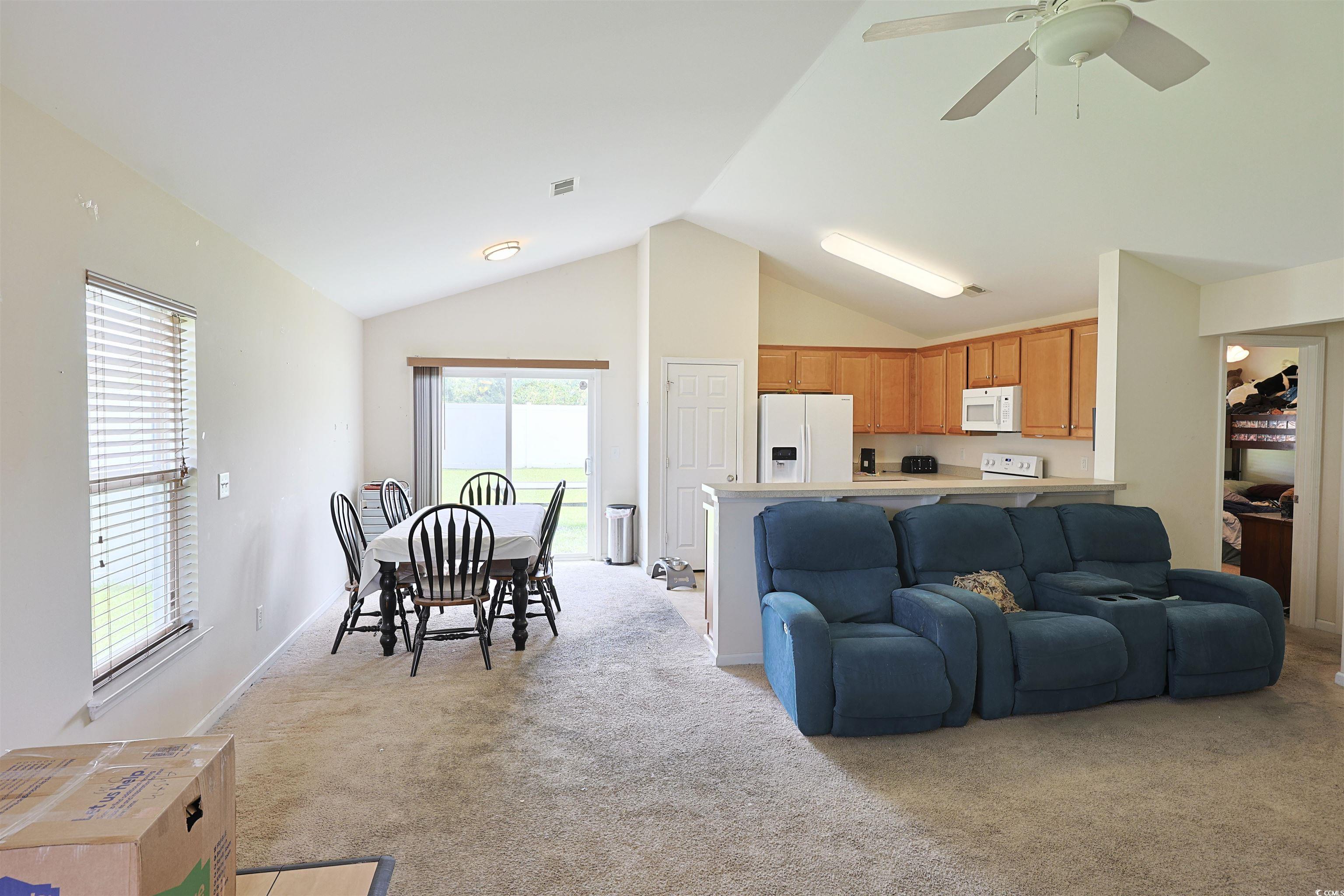 Welcome to 259 Blackpepper Loop, a well-maintained 3-bedroom, 2-bathroom home located in the desirable Lafayette Park community in Little River. This single-level home features a spacious open floor plan with vaulted ceilings, abundant natural light, and a split-bedroom layout for added comfort and privacy. The kitchen is fully equipped with a refrigerator, range, microwave, and dishwasher, and there's a separate laundry area with washer and dryer included. The oversized primary suite offers a walk-in closet with built-in shelving and a private en-suite with a walk-in shower. Additional features include ceiling fans, window treatments, a security system, lawn irrigation, and a two-car garage. Enjoy the outdoors in your backyard or take advantage of the community amenities, which include a pool, clubhouse, tennis courts, and walking areas with pond views. Conveniently located close to dining, shopping, golf, and just a short drive to the beaches of North Myrtle and Cherry Grove. This move-in ready home offers coastal living at its best!