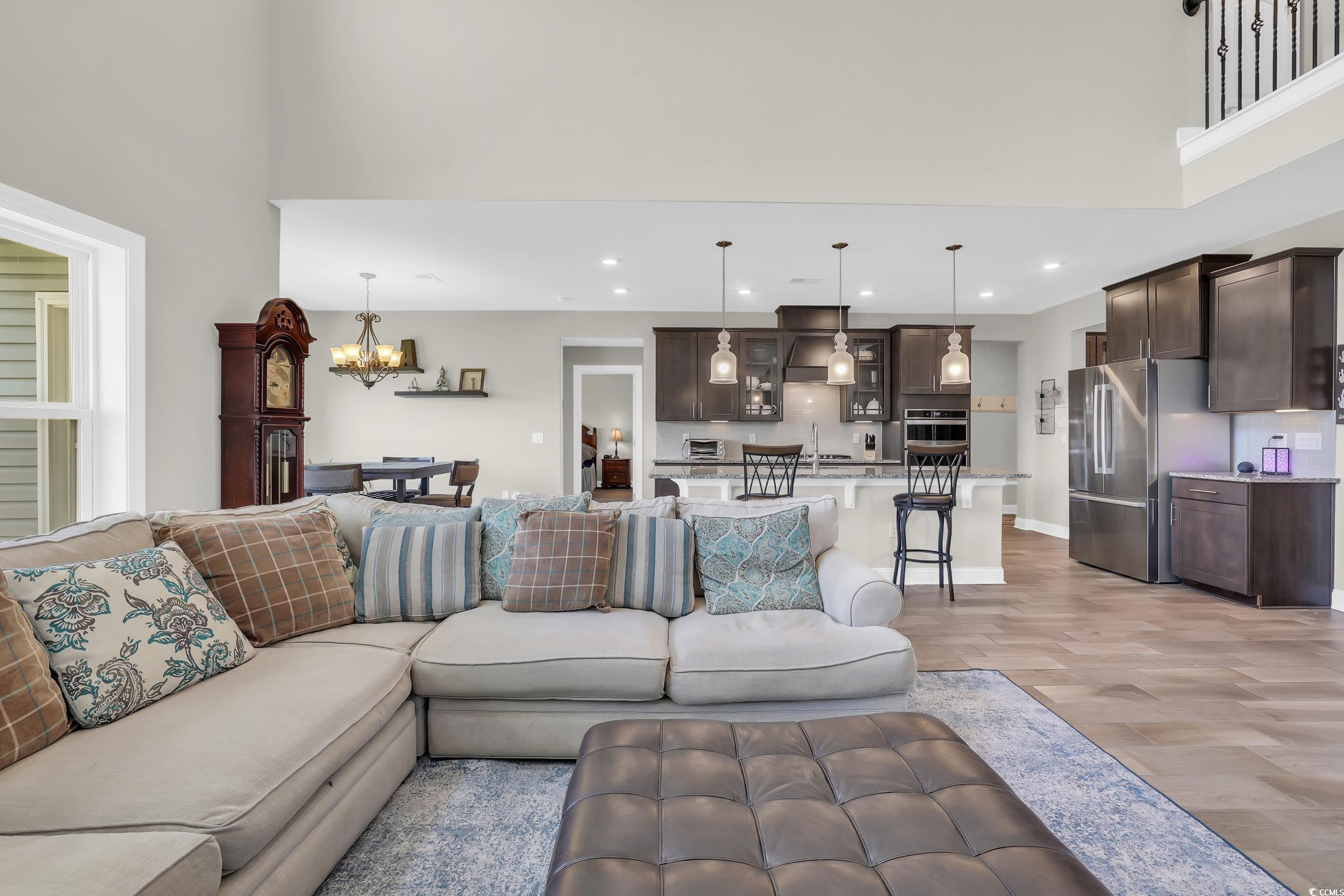 Welcome to 259 Hull Street in the highly sought-after Belle Mer community of sunny Surfside Beach. Tucked away on a peaceful cul-de-sac with a stunning lake view, this spacious 5-bedroom, 3.5-bathroom home with a 3-car garage offers the perfect blend of luxury, comfort, and convenience. The popular Ivey model is loaded with high-end features, including a gourmet kitchen outfitted with top-of-the-line stainless steel appliances, custom cabinetry, and an expansive island—ideal for cooking, entertaining, or casual family meals. The open-concept floor plan seamlessly connects the kitchen, dining, and living areas, creating a warm and inviting space for gatherings. The main-floor primary suite provides a relaxing retreat with spa-like finishes, while the remaining bedrooms are privately situated upstairs. One of the upstairs bedrooms has been transformed into a state-of-the-art media room—perfect for movie nights or cheering on your favorite team. Belle Mer offers a premier location just minutes from the beach, nestled between Myrtle Beach and Murrells Inlet. If you're looking for style, elegance and plenty of space, 259 Hull Street checks all the boxes. Schedule your private showing today and discover why this home is the one you've been waiting for.