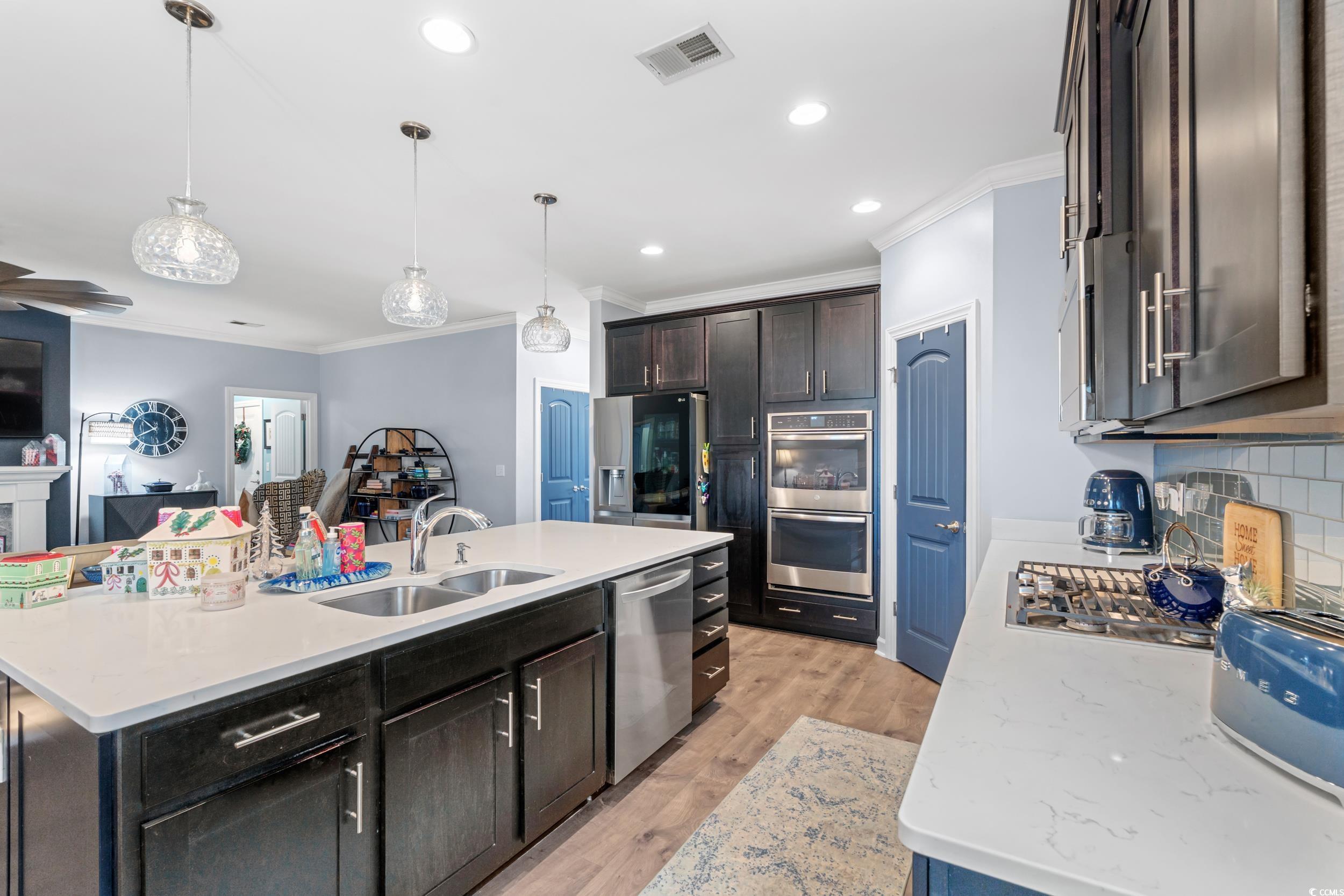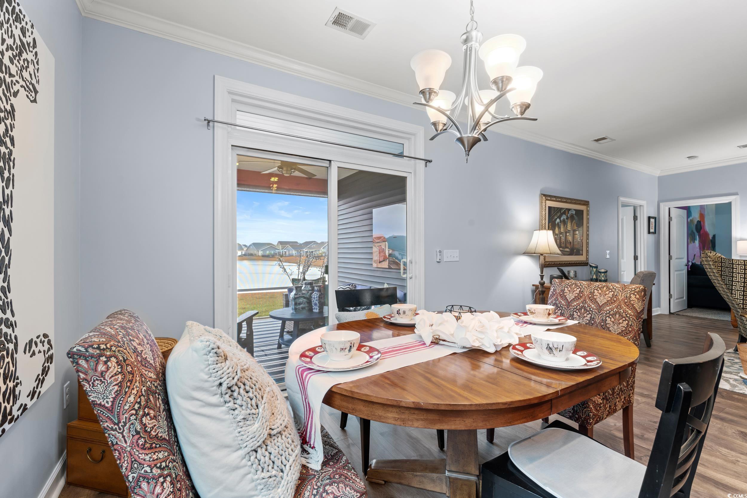 Welcome to 259 Switchgrass Loop, located in the highly sought-out neighborhood of Bridgewater in Little River. This beautifully maintained 3-bedroom, 2-bathroom single-level home offers modern living with thoughtful upgrades throughout. The popular Coastline floor plan features an open-concept design, a gourmet kitchen with quartz countertops, a huge center island, double ovens, a gas cooktop, and a spacious walk-in pantry. The living room is warm and inviting with a gas fireplace, and the interior showcases a clean, modern aesthetic. One of the standout features of this home is the direct pond view—truly one of the best in the community. Enjoy watching cranes, herons, bald eagles, ospreys, turtles, and more from your relaxing 3-season porch. Additional features include a drop zone off the laundry room, laundry cabinetry, epoxy flooring in the 2-car garage, irrigation system, curbscaping, and leaf gutter guards. The home has been freshly painted throughout and has been exceptionally cared for. The HVAC is serviced twice yearly, and pest/termite services are maintained through Home Team Pest Control. Garbage disposal and dishwasher were replaced in 2024. Located in Bridgewater, residents enjoy top-tier amenities including a gym, clubhouse, resort-style pool, three dog parks, pickleball courts, bocce ball, a pavilion, firepit, and a full monthly activities calendar. The HOA includes cable, trash, internet, and use of all amenities. Refrigerator, washer, and dryer will convey. This is modern coastal living at its finest—don’t miss the opportunity to own this stunning home with unmatched pond views!