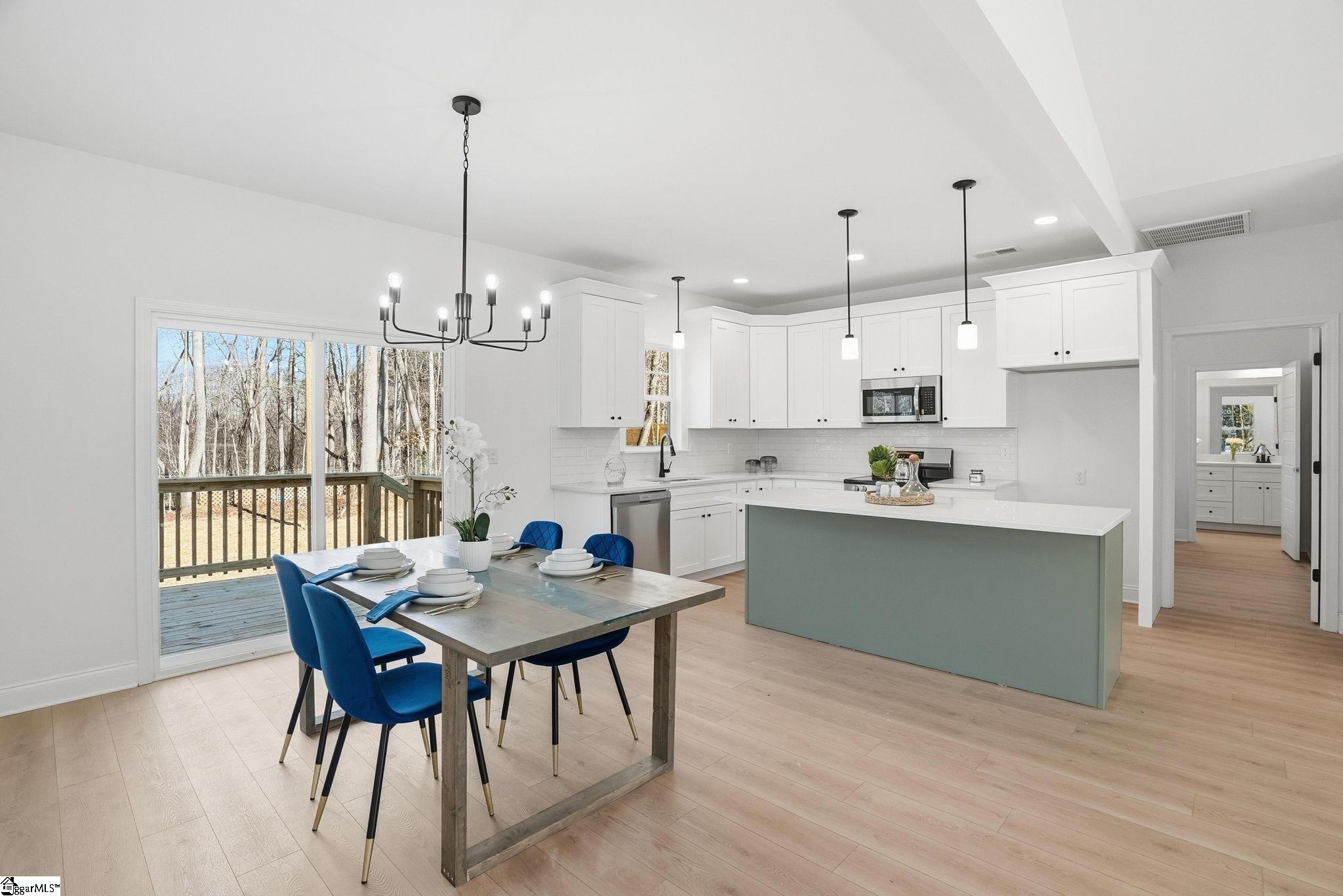Tucked into a peaceful, tree-lined setting, this beautifully crafted new construction home is where modern comfort meets everyday warmth, and where life slows down just enough to be enjoyed. As you step inside, natural light pours across luxury vinyl plank flooring that flows seamlessly throughout the home, setting the tone for elevated yet effortless living. The open-concept kitchen and dining space is the heart of the home, anchored by a 7-foot island topped with quartz and finished in a tone that thoughtfully mirrors the exterior, bringing the warmth of the outdoors right inside. With stainless steel appliances, high-end finishes, and clean modern lines, this is a space made for morning coffee, family dinners, and hosting with ease. The split floor plan offers both privacy and functionality. The primary suite feels like a true retreat with vaulted ceilings, a spa inspired en-suite bath featuring double vanities, a tiled walk-in shower, and a generous walk-in closet designed for real life. Two additional spacious bedrooms provide flexibility for family, guests, or a home office, each filled with sunlight and thoughtful design. Step outside to your large deck overlooking a private, tree-lined backyard, where evenings are quiet, mornings are peaceful, and nature becomes part of your daily routine. And then, there’s the freedom. No HOA. No extra rules. No limits. This is your home, your space, your vision. Location? Simply exceptional. You’re minutes from downtown Travelers Rest, with its charming shops, local restaurants, and small-town energy. The Swamp Rabbit Trail invites you outdoors for biking, walking, and fresh air, while the Blue Ridge Mountains are right there when adventure calls. Plus, you’re just 15 minutes from downtown Greenville and only moments from Wade Hampton Boulevard, keeping everything you need within easy reach. This home isn’t just new, it’s intentional. It’s warm. It’s inviting. And it’s ready for the right person to walk in, exhale, and say… this is home.