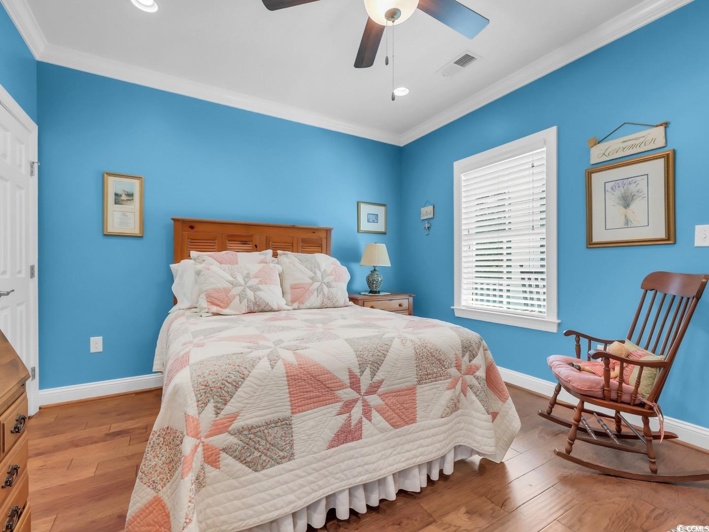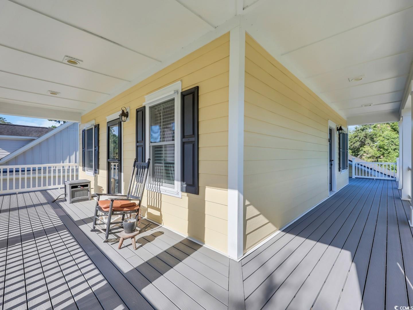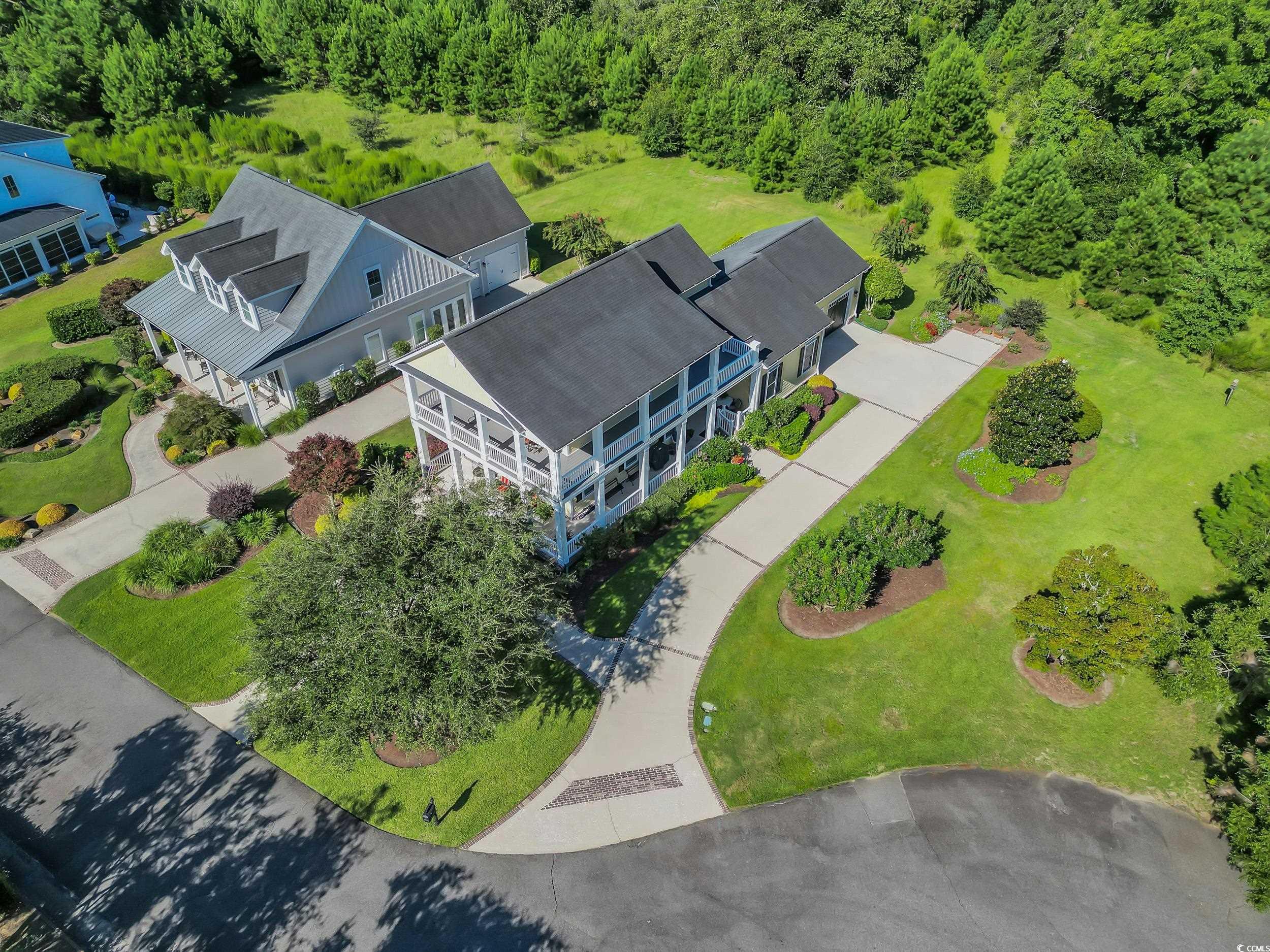 Welcome to Litchfield Plantation, a gated Lowcountry community where a brick and wrought-iron entrance opens onto a live oak-lined avenue. Tucked on a quiet cul-de-sac and surrounded by mature, garden-like landscaping, this home radiates timeless Southern charm. The main floor blends living, dining, and kitchen areas into a warm, open space anchored by a cozy fireplace and rich hardwood floors. From the kitchen, step onto a large wraparound porch with a sitting area, perfect for morning coffee, alfresco dining, or evenings enjoying coastal breezes. A serene primary suite with a spa-like bath, a half bath, large laundry, and an oversized two-car garage complete the main level. Upstairs, three bedrooms or two plus a flexible bonus room share a full bath with a large tile shower, and each bedroom opens to the wraparound porch, offering peaceful retreats. Residents enjoy a pool tucked among historic rice fields and a private Pawleys Island beach house, blending Lowcountry serenity with coastal living. Embrace Lowcountry living and make this beautiful home your own.