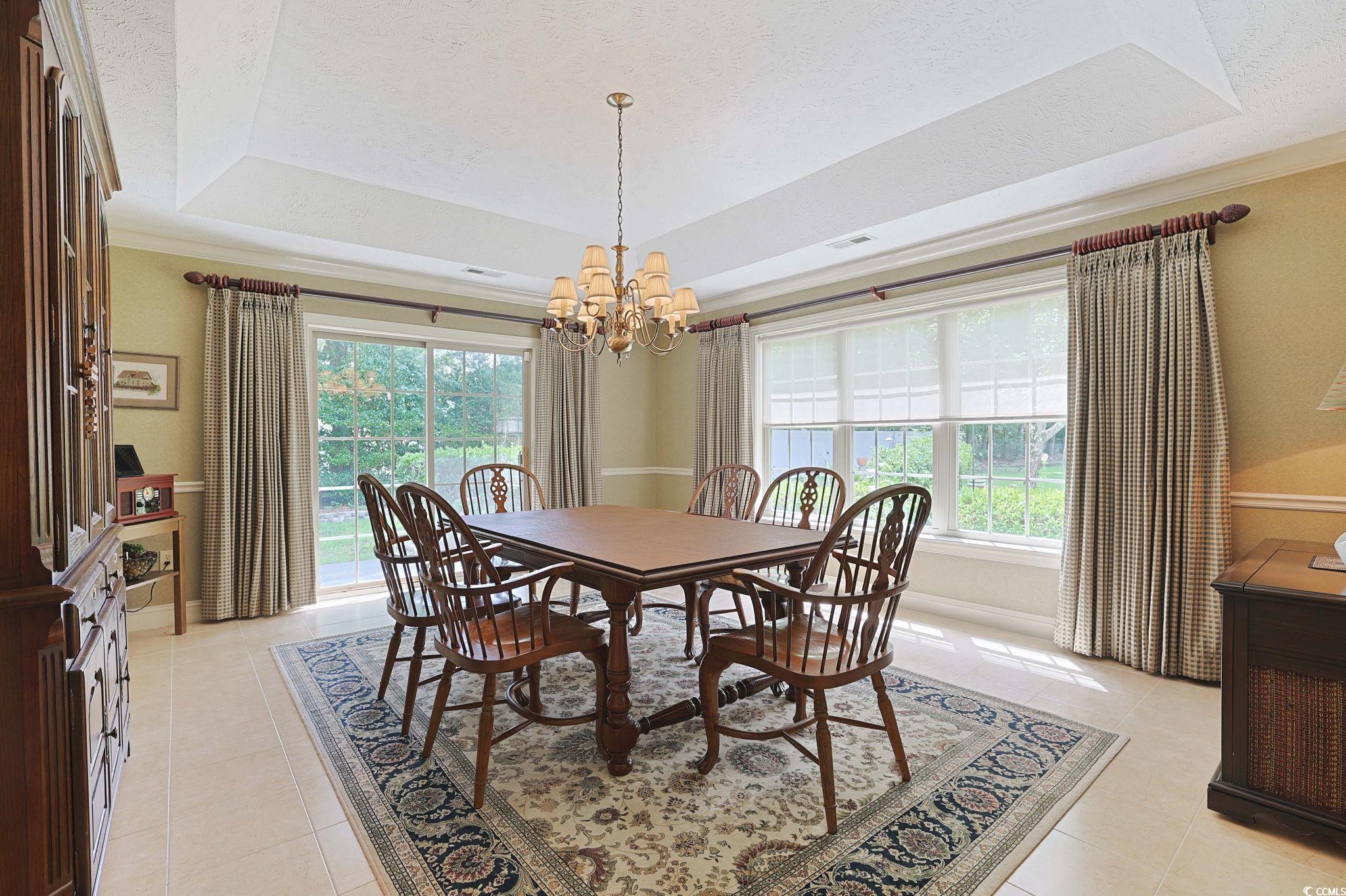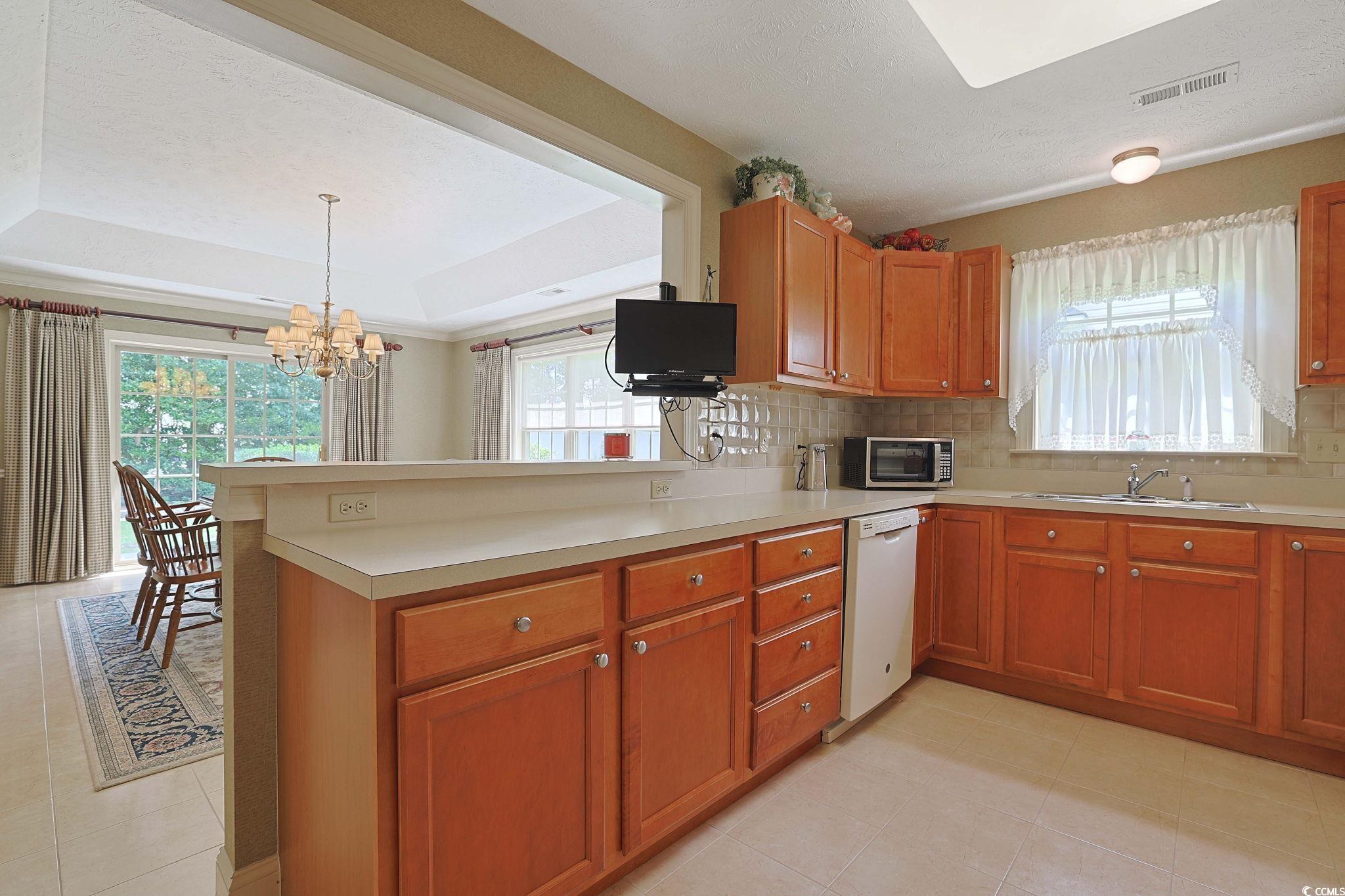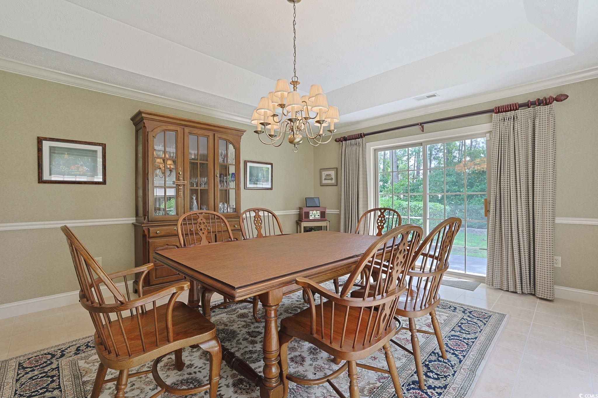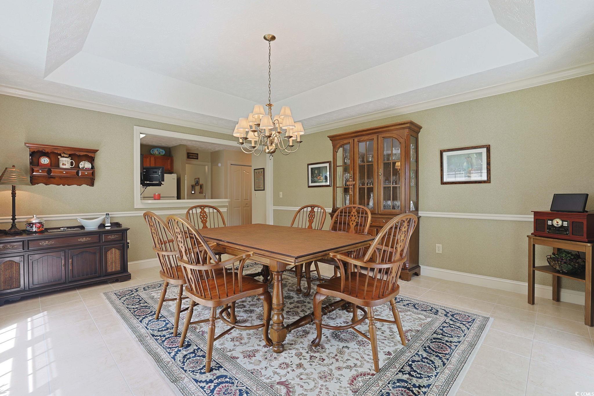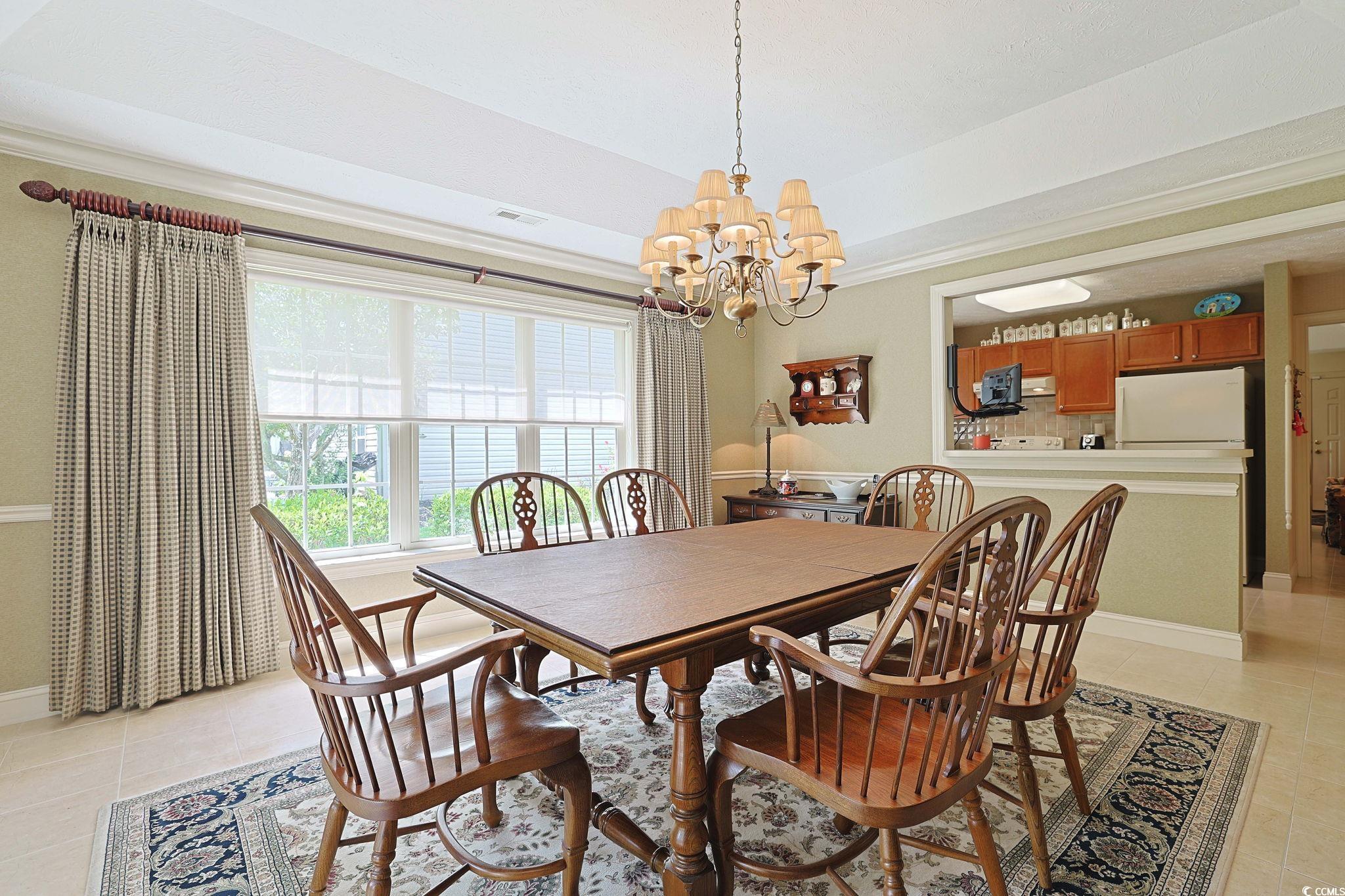 Introducing this vibrant 3 bedroom 2 bath home located in the inviting Silver Fox Landing community. This captivating home features tile & carpet flooring and a spacious living room that includes a tray ceiling with a fan along with elegant chair railing. The kitchen is equipped with a smooth flat top range, dishwasher, a refrigerator, breakfast bar, ample counter & cabinet spaces, a formal dining area with a tray ceiling that showcases a sliding glass door that opens up to the relaxing back patio. The primary suite offers a tray ceiling with a fan, private access to the master bath that host a vanity with dual sinks, comfort station, a classic tub/shower combo, and a walk-in closet. This peaceful home is completed with two additional bedrooms, full guest bath, a laundry closet, and a two car attached garage. This home affords you easy access to the beach and golfing along with all of the other activities and happenings in Myrtle Beach including fun eateries, award winning off-Broadway shows, public fishing piers, and intriguing shopping adventures along the Grand Strand. Conveniently located to your everyday needs, including grocery stores, banks, post offices, medical centers, doctors’ offices, and pharmacies. Check out our state of the art 3-D Virtual Tour.