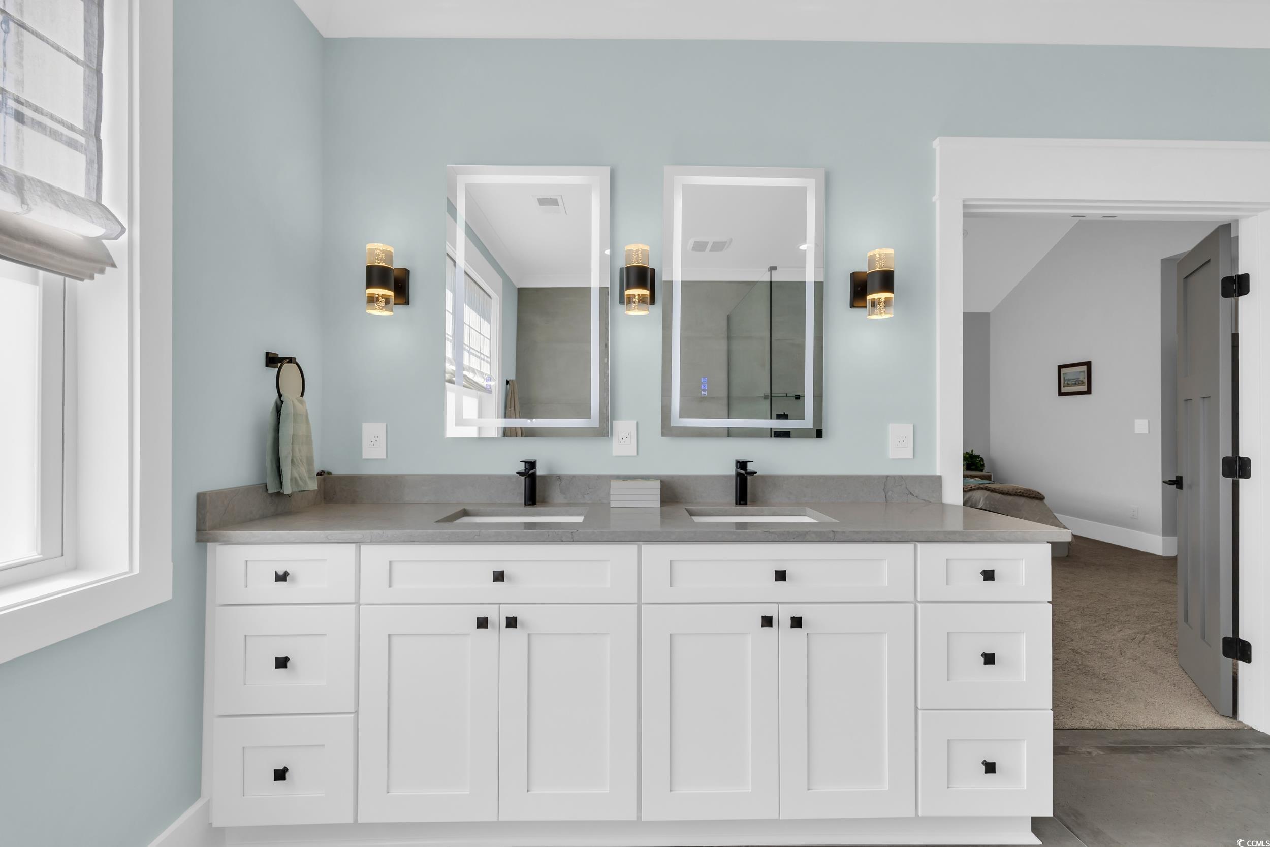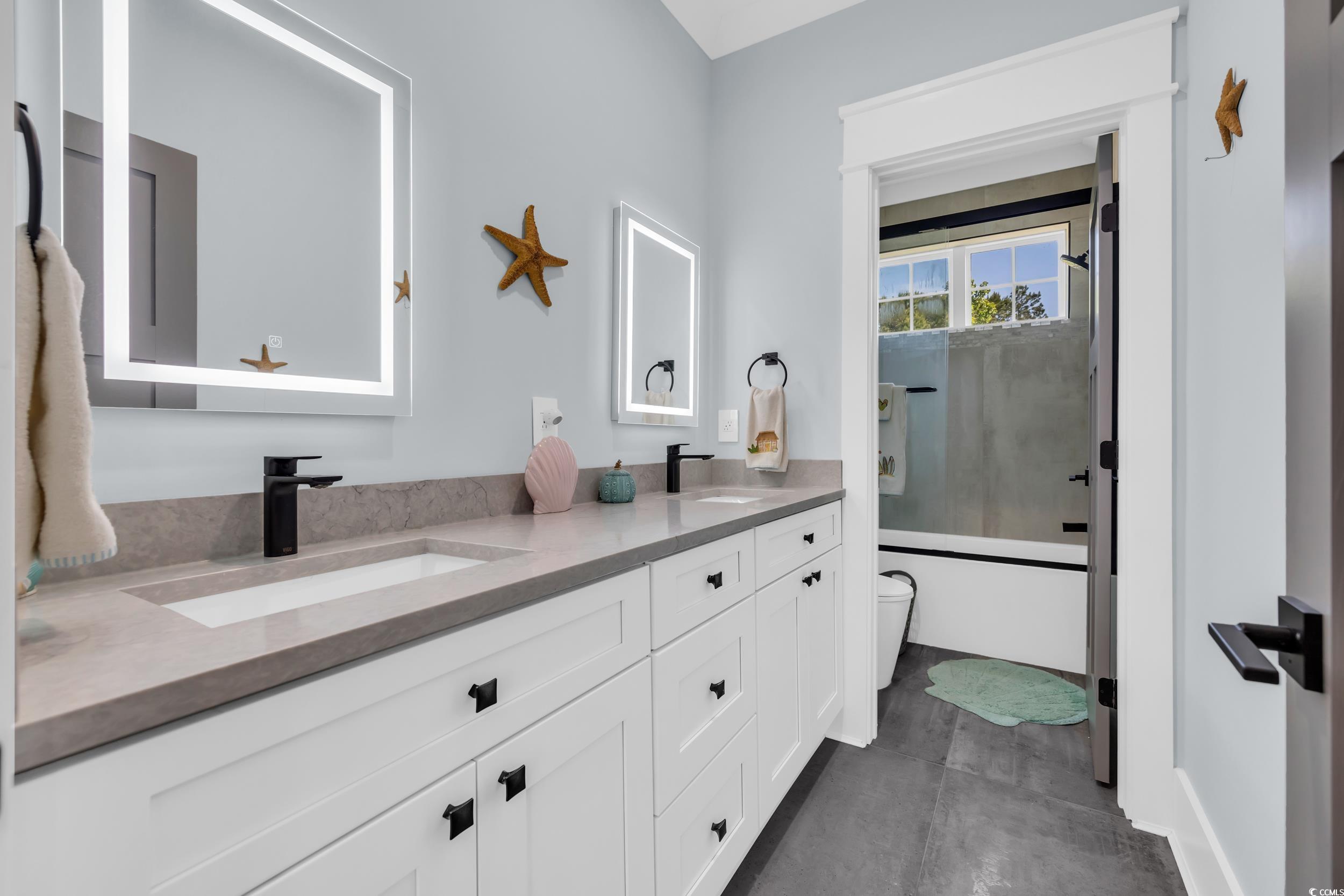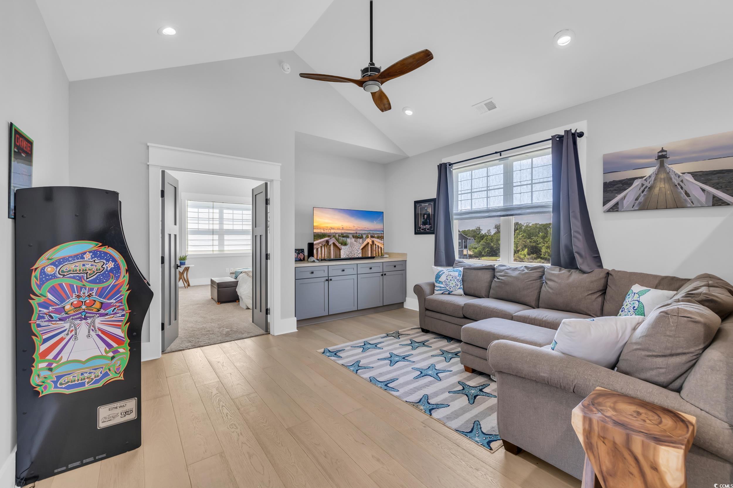 Custom Craftsmanship Meets Coastal Luxury in This North Myrtle Beach Beauty Step into refined coastal living with this custom-built 5-bedroom, 3-bath masterpiece located in the sought-after Intracoastal Waterway community of Palmetto Harbor. From the moment you arrive, it's clear, this isn't just a home, it's a work of art. Designed with intention and built to impress, this residence is packed with thoughtful upgrades and modern design elements that elevate everyday living. Inside, you'll find 10-foot ceilings, oak engineered hardwood floors, oversized trim, and tile in all the right places. The open-concept layout flows seamlessly from the foyer to the living space, anchored by a statement fireplace and a mounted TV ready for movie nights or game day. The kitchen is a showstopper, featuring Thermador appliances, solid surface counters, a large island with seating, white shaker cabinetry, decorative range hood, striking backsplash, and a custom walk-in pantry built for both form and function. Downstairs also includes a bedroom and full bath, perfect for guests or a home office, along with a spacious two-car garage and a screened-in porch overlooking the large, fenced backyard, ideal for relaxing or entertaining. Upstairs, discover a second living area and well-appointed bedrooms, each with custom closets, 9' ceilings, and designer fans. The primary suite is a private retreat, complete with its own fireplace, a spa-like bathroom featuring heated tile floors, a glass-enclosed tile shower, comfort-height vanities, and premium finishes throughout. Additional upgrades include motorized retractable window blinds, a Clean Effects integrated HVAC air purifying system, smart doorbell with video/audio, and elegant plated glass interior railings that add a touch of modern sophistication. Outside, the home is wrapped in Hardie plank siding including the soffits and fascia for durability and curb appeal that lasts. While the Palmetto Harbor community offers ICW views, it's the home itself that truly steals the spotlight. Schedule your private tour today, this home is a rare blend of quality, style, and location that simply can't be replicated.