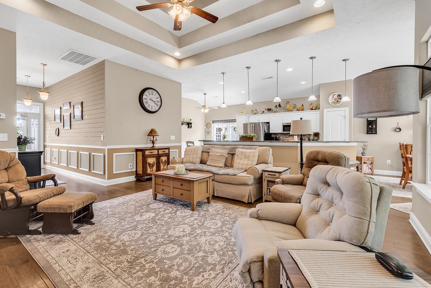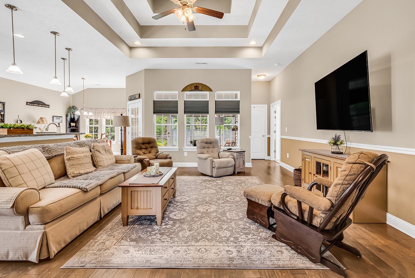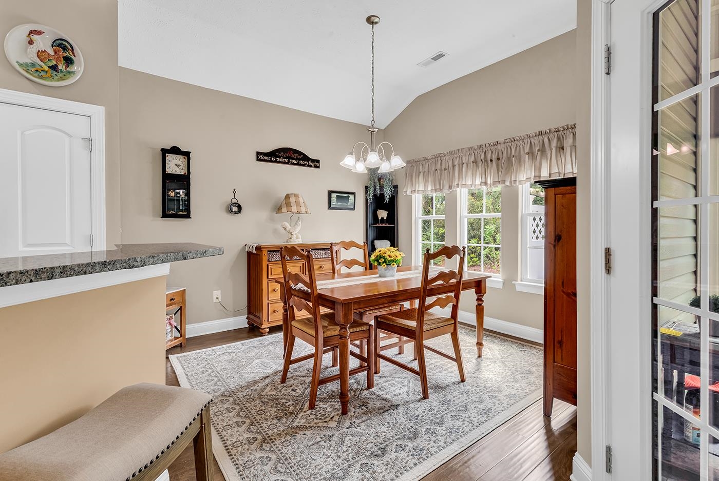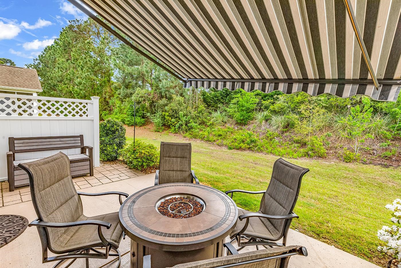 Welcome to this beautifully appointed 3-bedroom, 2-bathroom home located in the peaceful and sought-after community of Turning Pines. Designed with both comfort and style in mind, this residence features a blend of hardwood, tile, and all new carpet flooring, along with impressive vaulted ceilings that enhance the sense of space throughout. Step inside to find a formal dining area perfect for hosting gatherings, while the spacious living room is filled with natural light, creating a warm and inviting ambiance. The thoughtfully designed kitchen is a standout, offering newer stainless steel appliances, granite countertops, and crown-molded cabinetry for a touch of timeless elegance. A bright breakfast nook provides the perfect spot to start your day, and a conveniently located laundry room adds everyday practicality. One of the home’s most appealing features is the newly built 14' x 10' sunroom with new windows recently installed—an ideal space for relaxing, entertaining, or enjoying quiet moments. The primary suite serves as a private retreat, complete with vaulted ceilings, a ceiling fan, a generous walk-in closet, and an ensuite bath. The bathroom includes a single-sink vanity, linen storage, a comfort station, and a spacious step-in shower for a spa-like experience. Two additional bedrooms offer flexibility for guests, a home office, or hobbies, and a full guest bathroom ensures convenience for all. This home also feature four walk in closets because you can never have enough storage space. Additional highlights include a three-car attached garage, providing ample storage and parking. Outdoors you'll really appreciate the 20' retractable awning, large patio and warm firepit for the cool nights. Situated just a short drive from Myrtle Beach, this home offers easy access to beautiful beaches, top-rated golf courses, dining, entertainment, shopping along the Grand Strand, and everyday essentials such as grocery stores, medical facilities, and more. This exceptional property blends comfort, elegance, and location—making it a perfect place to call home.