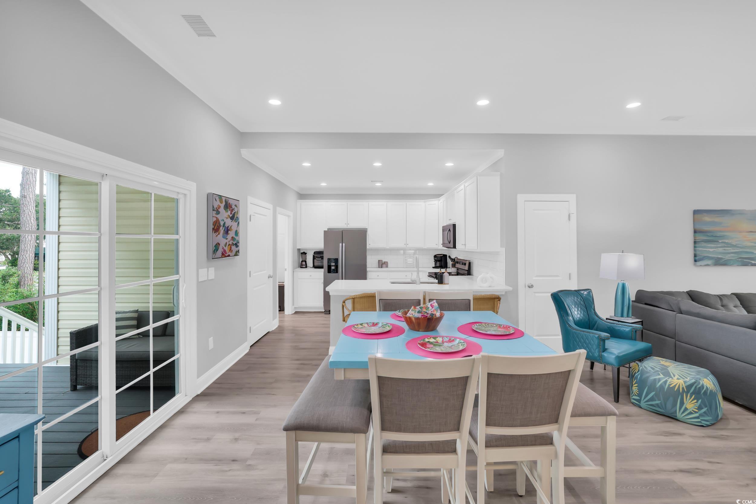 Welcome to your slice of paradise in North Myrtle Beach, where the ocean is just a short stroll away. This raised beach home, built in 2022, was designed with comfort, style, and easy coastal living in mind. With 4 bedrooms and 3 bathrooms, there’s plenty of room for family, friends, or guests to gather and make memories by the shore. Inside, you’ll find an open and inviting layout with luxury vinyl plank flooring that’s both durable and beautiful. The kitchen is a true centerpiece, featuring quartz countertops, stainless steel appliances, and a walk-in pantry that keeps everything within reach. A bright master suite offers a peaceful retreat, complete with a tiled walk-in shower, while each of the bathrooms continues the modern coastal style with quartz finishes. After a day on the beach, come home to your own private heated saltwater pool or rinse off the sand in the outdoor shower. Wide front and back porches give you the perfect spot to sip your morning coffee or enjoy a quiet evening breeze. The ground level offers plenty of storage for surfboards, chairs, and bikes, along with covered parking that doubles as an outdoor entertaining space. Palm trees, low-maintenance landscaping, and in-ground irrigation keep the property looking fresh with little effort, leaving you more time to enjoy everything North Myrtle Beach has to offer. From Barefoot Landing’s shops and restaurants to championship golf courses and live music, your days can be as laid-back or as lively as you want. Whether you’re searching for a forever home, a family retreat, or a vacation rental with strong income potential, this coastal gem brings it all together. Buyers' responsibility to verify all measurements, not guaranteed.
