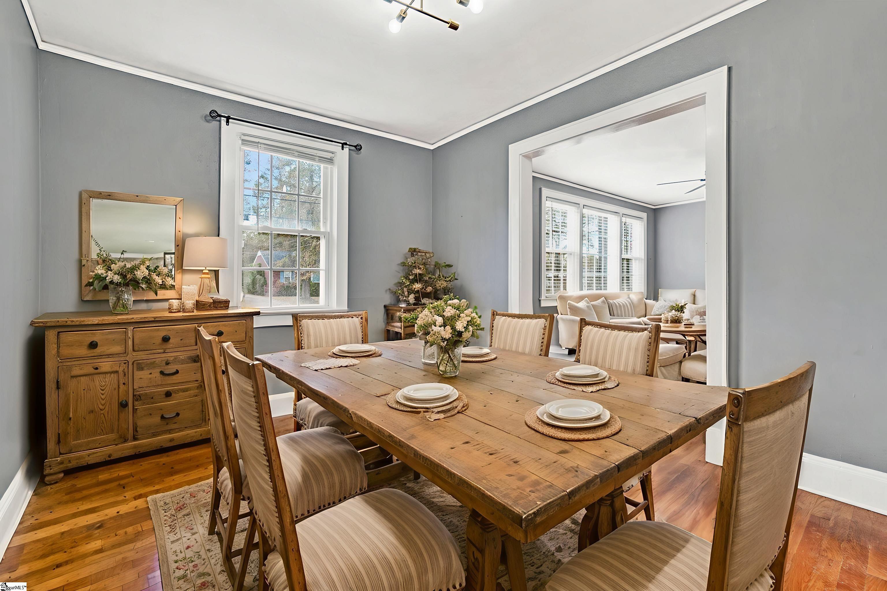 The first time I turned onto this street, something about it felt instantly familiar, almost like stepping into a place you have known for years. The wide road, the tidy homes, and the tall trees that stretch overhead create a setting that feels peaceful in every season. With Christmas approaching, it is easy to imagine twinkling lights wrapped around porch railings, wreaths on every door, and the soft glow of the holidays settling over the whole neighborhood. This brick bungalow fits right into that scene. She brings a charming collected style with touches of grand millennial influence, the kind that blends classic details, warm textures, and timeless character with the fresh updates people love right now. There is history in her bones, but so much has been cared for and refreshed, including a brand new HVAC system just installed by the sellers. It adds comfort and peace of mind as you move into the next chapter of her story. Inside, the character only grows. The rooms are bright and cheerful with a sense of personality that never feels forced. The dining room is large enough for family gatherings, holiday dinners, or evenings when friends stay long after dessert is gone. The living areas invite you to settle in, the kind of spaces that feel perfect for a Christmas tree in the corner and stockings hung nearby. The kitchen works beautifully with its gas stove and thoughtful layout. It is the kind of kitchen where someone can bake cookies while others sneak a taste of the dough. All three bedrooms are comfortably sized and give you a cozy place to unwind at the end of the day. Two full baths make mornings easier, even when everyone is getting ready at once. The backyard is the part that truly stayed with me. It is wide and level, peaceful and private, a place where pets can run, children can build snowmen if we are lucky enough to see a bit of snow, and grownups can sit on the patio with blankets and cocoa. The landscaping has matured beautifully, giving the entire yard a timeless and welcoming feel. And when you want to get out for a bit, downtown Anderson is only moments away. Local restaurants, coffee shops, holiday markets, and twinkling lights make the whole area feel cheerful this time of year. Whether you drop in for brunch, wander through boutiques, or enjoy a Friday evening event, everything you need is conveniently close. This home sits right in the heart of a street that feels like it belongs in a Christmas story. Loved, thoughtfully updated, full of charm, and touched with that classic style so many people adore, she is ready for her next chapter. I think you might fall for her just as quickly as I did.