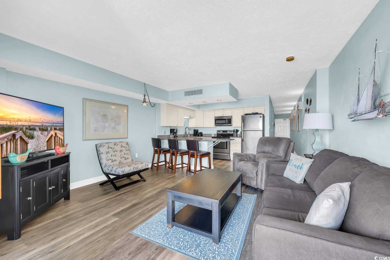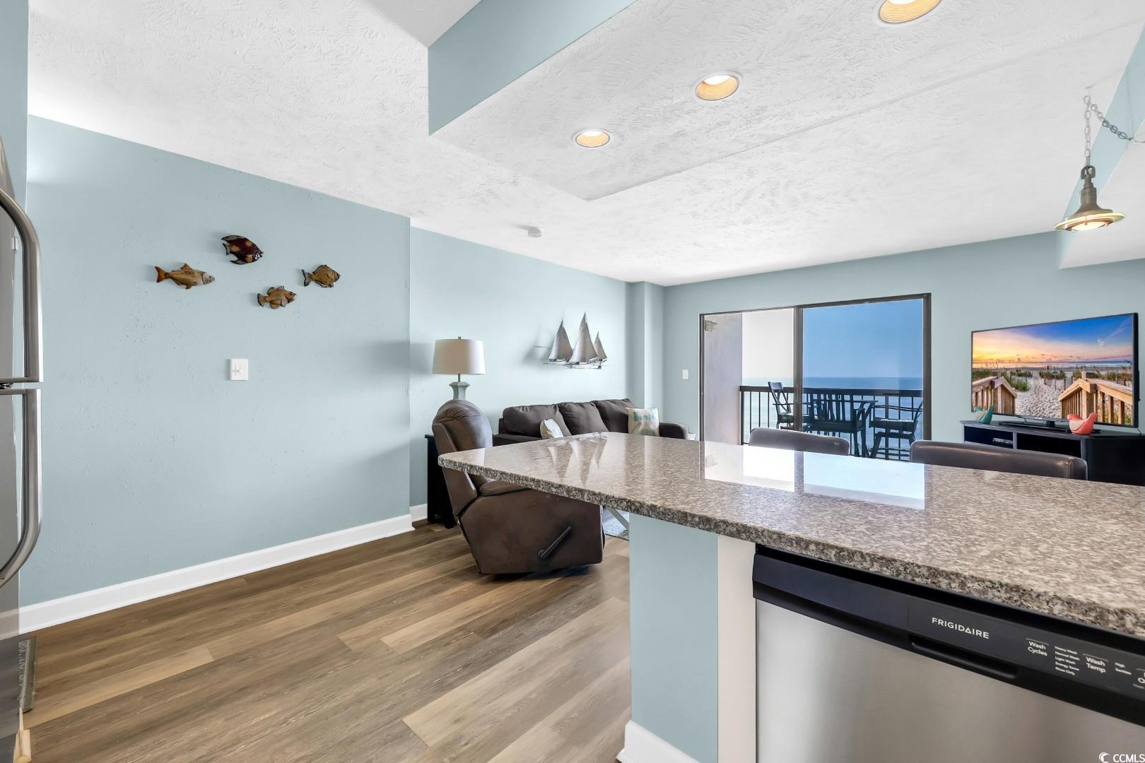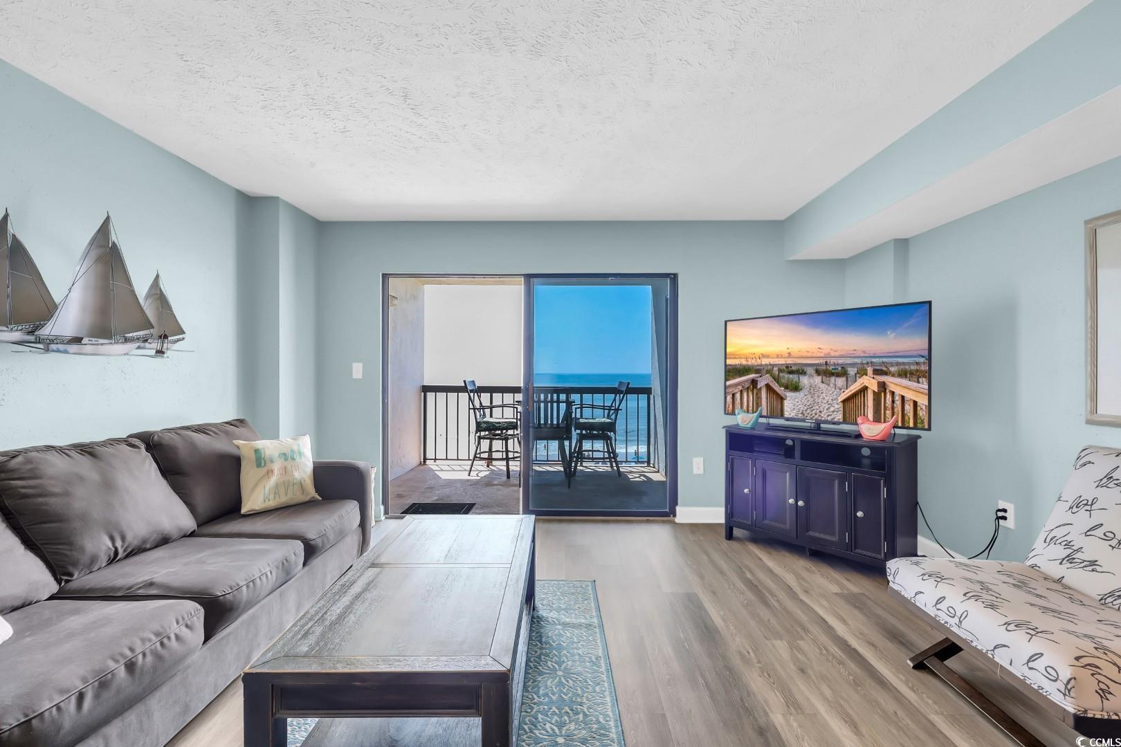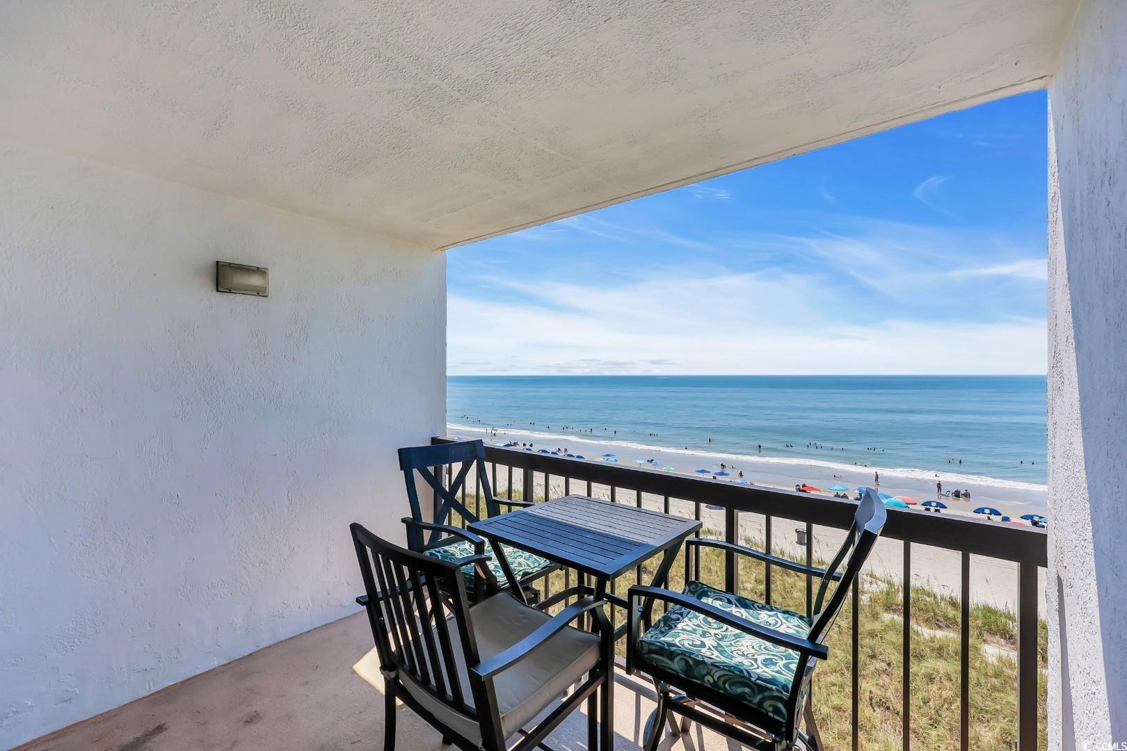 Come see for yourself this beautifully furnished 4th-floor condo, where breathtaking ocean views greet you from nearly every room. Designed with anopen living concept, the space is flooded with natural light, creating a bright and airy atmosphere .The generously sized bedroom offers apeaceful retreat, complemented by two full bathrooms for your comfort and convenience. Enjoy the serenity of waves crashing from your private patio, perfect for sipping your morning coffee or unwinding in the evening. With direct beach access, you can easily enjoy the sand and surf, while being just minutes away from a variety of dining, shopping, and entertainment options. Whether you're looking for a relaxing getaway or a permanent beachside residence, this condo offers everything you need and more. Don't miss out on this coastal gem....schedule your tour today! Square footage is approximate and not guaranteed. Buyer is responsible for verification.