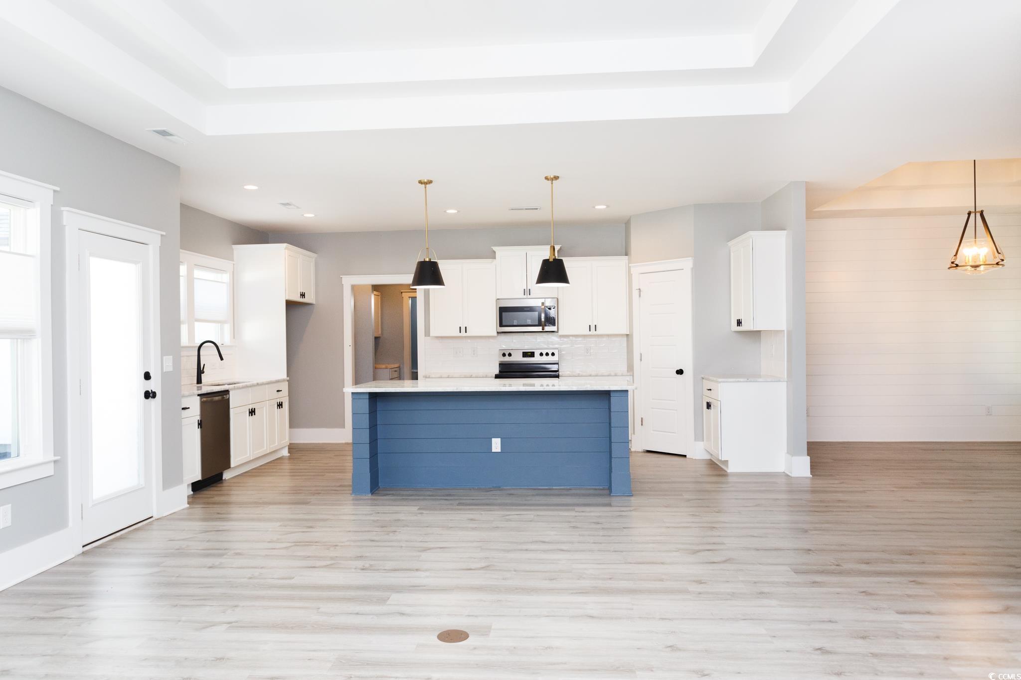 Beautiful home in gated community with upgrades galore. Open split bedroom floorplan with 4 bedrooms and 2.5 baths. Luxury vinyl plank flooring through the living areas. Large living room with a tray ceiling. Oversized baseboards and trim. Dining area/breakfast nook on right with a shiplap accent wall. One bedroom with painted barn doors and wainscoting on the walls. Kitchen features quartz countertops, an island with shiplap accent, whit subway tile backslash, lots of counter and cabinet space and stainless-steel appliances. Good sized bedrooms and a bathroom off of the living room. Also, a half bath on the main level. Large laundry room. Master suite with his/her walk-in closets and a large walk-in shower. Fully fenced back yard, patio perfect for grilling. 3-car garage and extended driveway. Home is wired for a generator and has hurricane shutters. Community features a pool. Owner would like to close by 12/31/25. See this beauty today!!