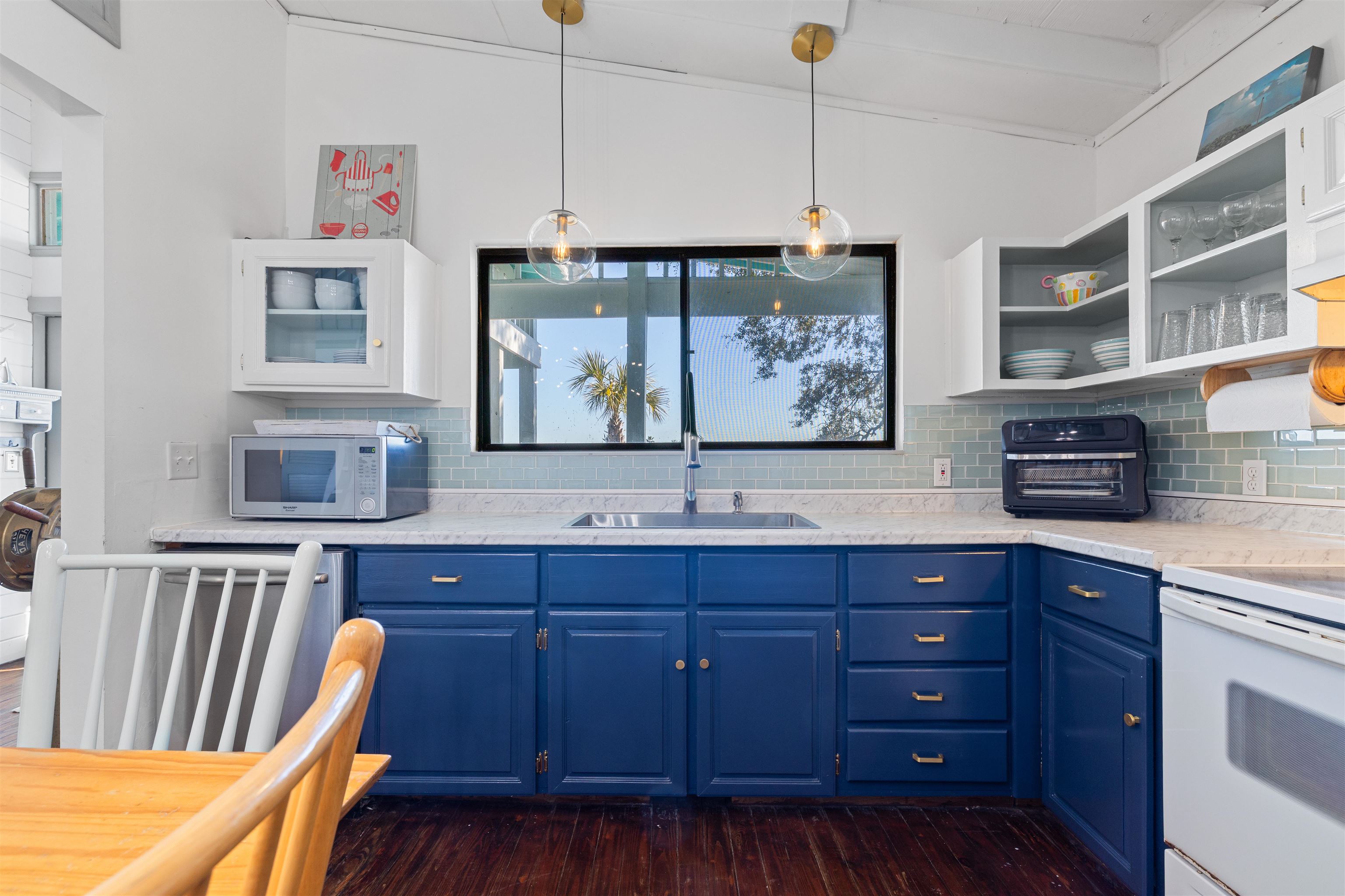 Welcome to coastal living at its finest at 2619 Buccaneer Road, ideally positioned along the ICW on Goat Island. This elevated waterfront coastal home offers panoramic water views, timeless Lowcountry charm, and a thoughtfully designed open concept floor plan perfect for both everyday living and entertaining. The main living area features expansive windows that flood the home with natural light and frame stunning waterway views. The seamless flow between the living, kitchen, and outdoor spaces creates an inviting atmosphere with plenty of room to gather. Generously sized bedrooms provide comfort and privacy, while the versatile loft bedroom offers additional retreat. Step outside to experience multiple porches and decks designed to maximize the breathtaking surroundings. Enjoy morning coffee overlooking the water on the covered dock, unwind with evening sunsets, or host gatherings with the coastal breeze as your backdrop. A private dock and walkway enhance the waterfront lifestyle, providing direct access for boating, fishing, or simply enjoying life on the water. Surrounded by mature palms and native coastal landscaping, this Goat Island home delivers privacy, charm, and exceptional ICW views; all within a serene island setting. A wonderful opportunity to own a true waterfront escape.