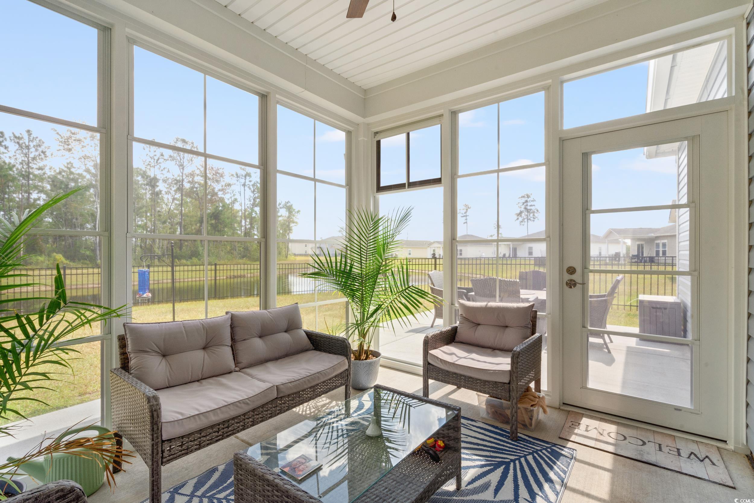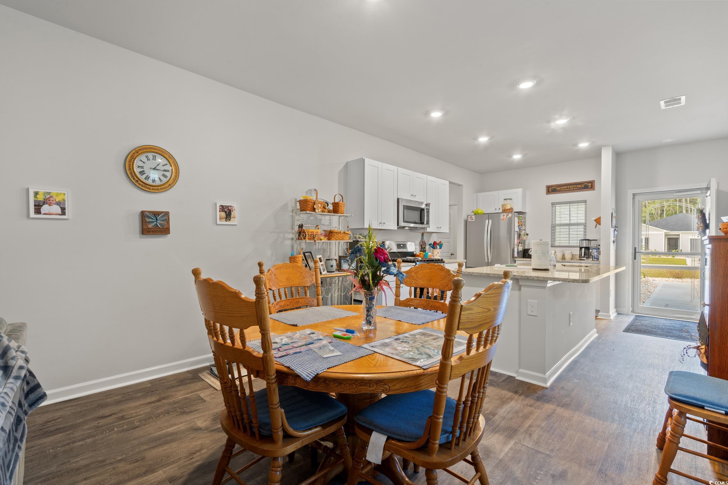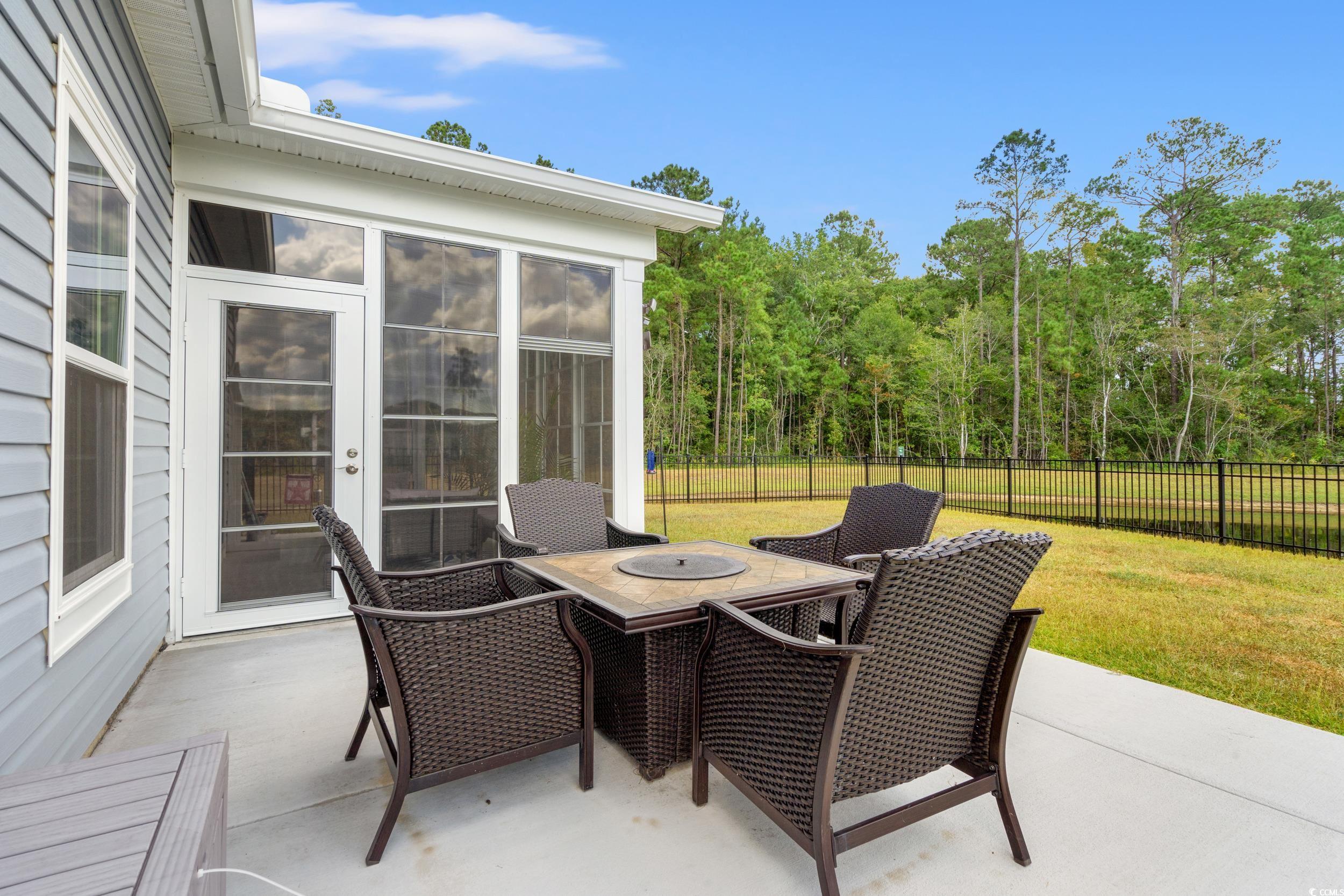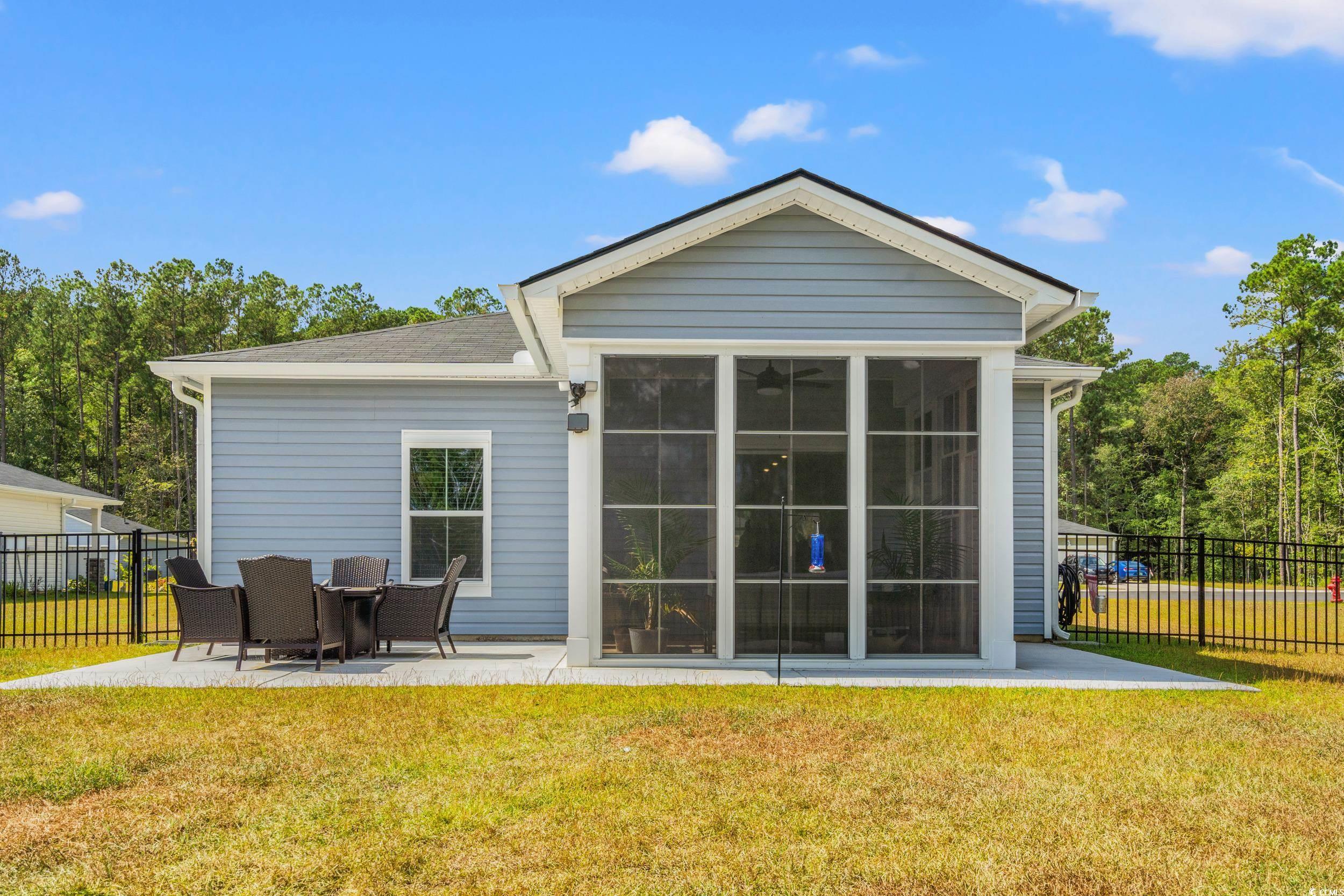 Welcome to your future home in the “City of Halloween” (Conway is known as Halloween, SC each October). This near-new 3-bedroom, 2-bath home in Saddle Ridge sits on a quiet cul-de-sac and backs to a peaceful pond—an ideal blend of privacy and neighborhood charm with minimum traffic. Fully fenced in backyard. Open floor plan with light-filled living and dining areas, granite counters, and ample cabinetry. It is a gas community so gas range in kitchen (with a broiler in the bottom) and TANKLESS hot water heater. Split bedroom floor plan, primary with ensuite bath with walk-in shower at the back of the house with pond view from the primary bedroom. Two additional bedrooms share a full bathroom with shower/tub combo at the front of the house. LVP throughout the house. Backyard overlooks a tranquil pond and original patio was enclosed as an all season room, ideal for morning coffee or evening sunsets. Additional concrete was poured to create a new grill and outdoor patio area. Neighborhood swimming pool with covered eating area and restrooms, playground, and picnic tables just a short walk or drive from the house. Minutes from grocery stores, retail, dining, and schools. Only 6 miles to downtown Conway for shopping, entertainment, and community events. Not only does the City of Conway transform into “City of Halloween” each October, but they also have decorations downtown for every season/Holiday throughout the year.
