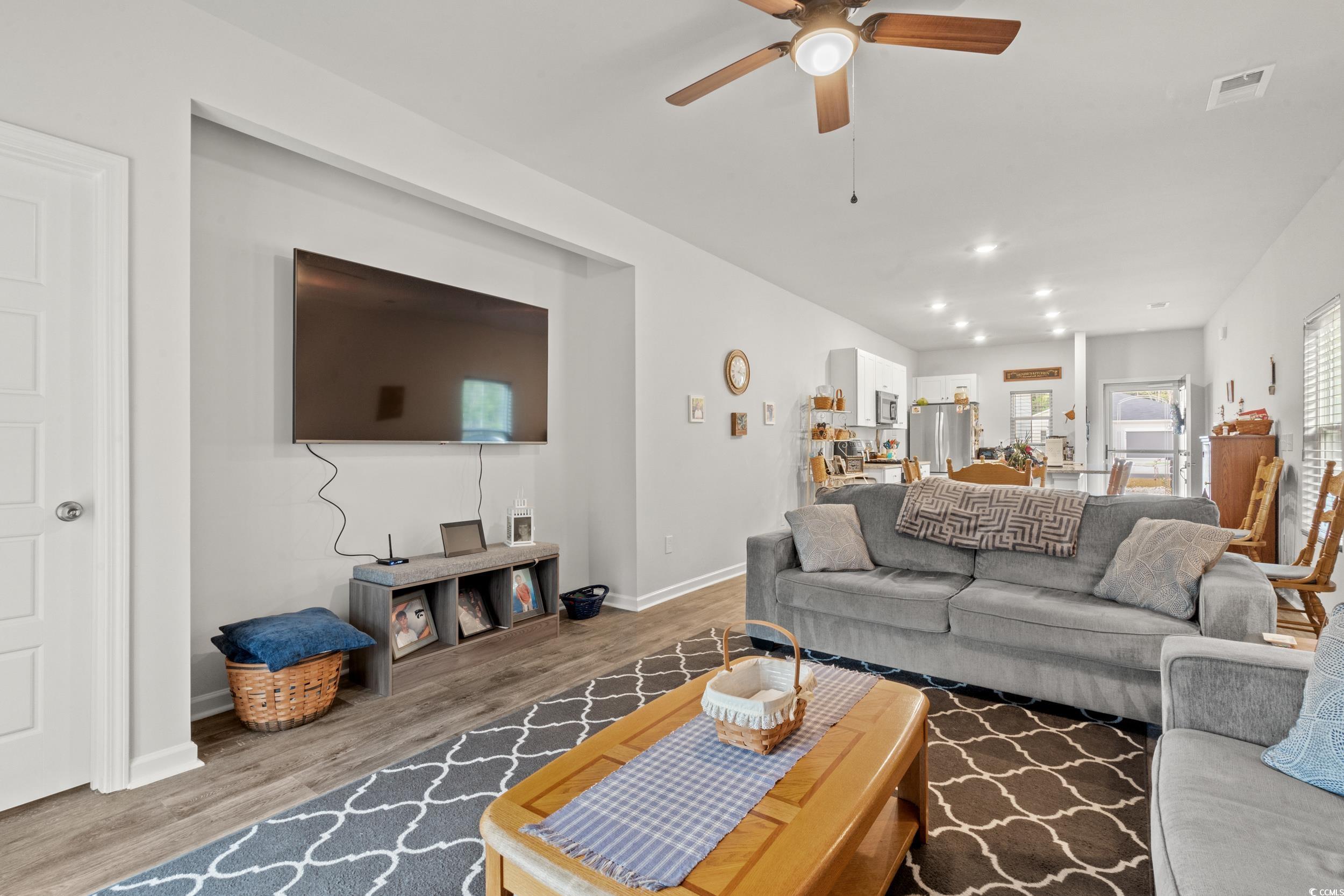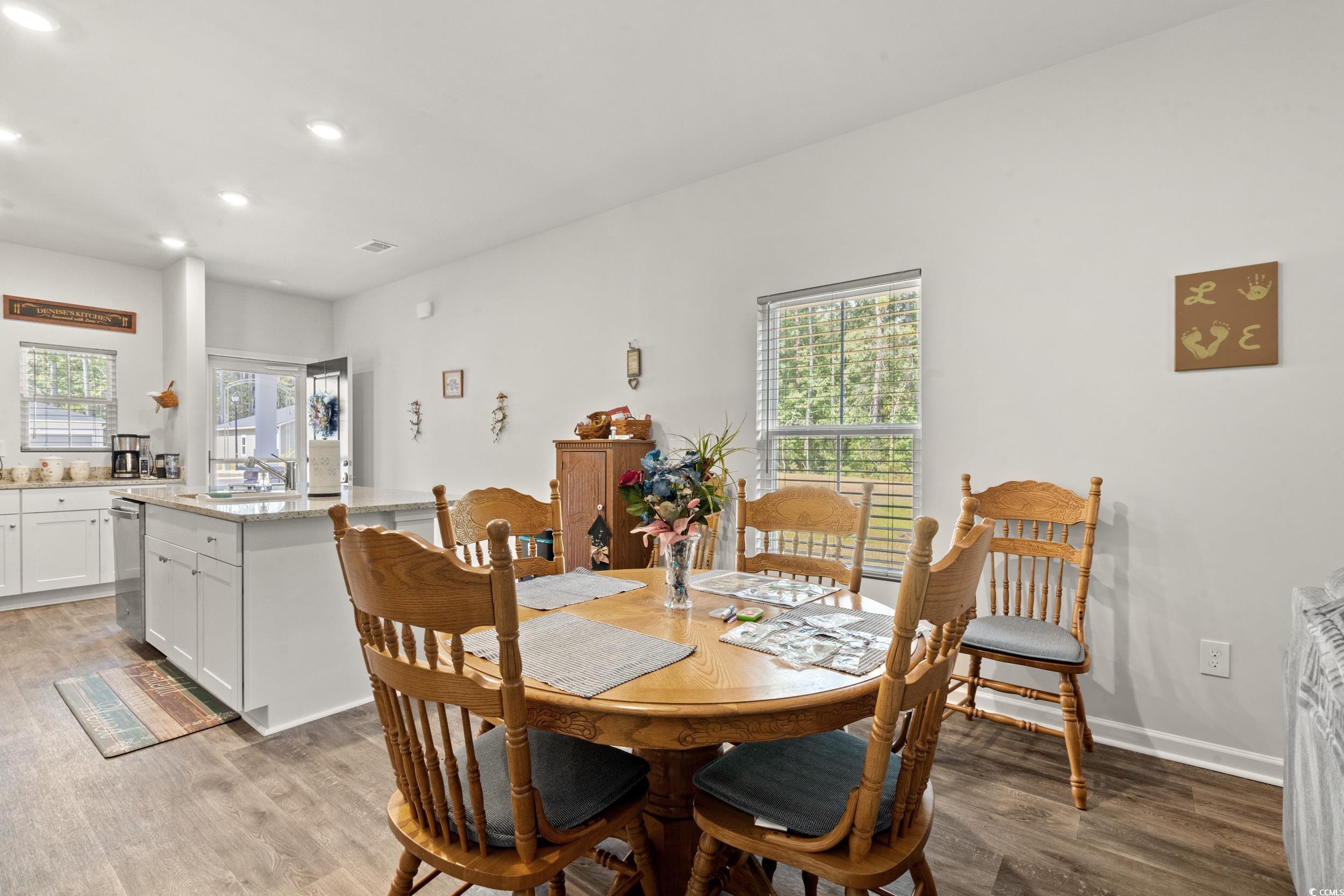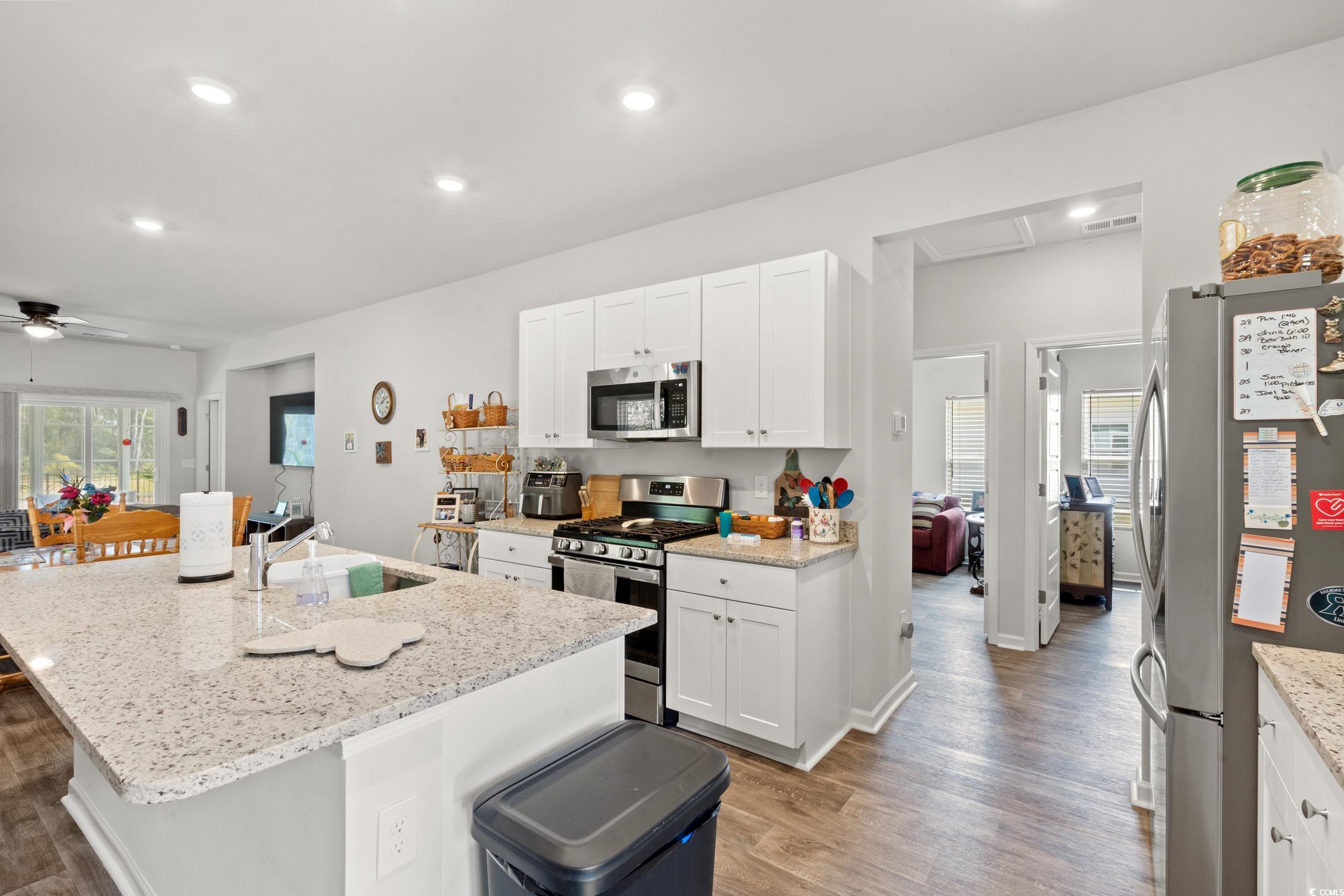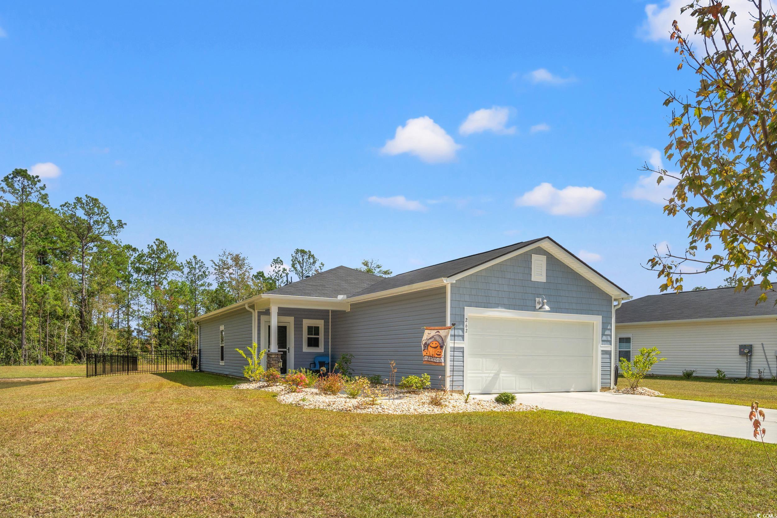 Welcome to your future home in the “City of Halloween” (Conway is known as Halloween, SC each October). This near-new 3-bedroom, 2-bath home in Saddle Ridge sits on a quiet cul-de-sac and backs to a peaceful pond—an ideal blend of privacy and neighborhood charm with minimum traffic. Fully fenced in backyard. Open floor plan with light-filled living and dining areas, granite counters, and ample cabinetry. It is a gas community so gas range in kitchen (with a broiler in the bottom) and TANKLESS hot water heater. Split bedroom floor plan, primary with ensuite bath with walk-in shower at the back of the house with pond view from the primary bedroom. Two additional bedrooms share a full bathroom with shower/tub combo at the front of the house. LVP throughout the house. Backyard overlooks a tranquil pond and original patio was enclosed as an all season room, ideal for morning coffee or evening sunsets. Additional concrete was poured to create a new grill and outdoor patio area. Neighborhood swimming pool with covered eating area and restrooms, playground, and picnic tables just a short walk or drive from the house. Minutes from grocery stores, retail, dining, and schools. Only 6 miles to downtown Conway for shopping, entertainment, and community events. Not only does the City of Conway transform into “City of Halloween” each October, but they also have decorations downtown for every season/Holiday throughout the year.